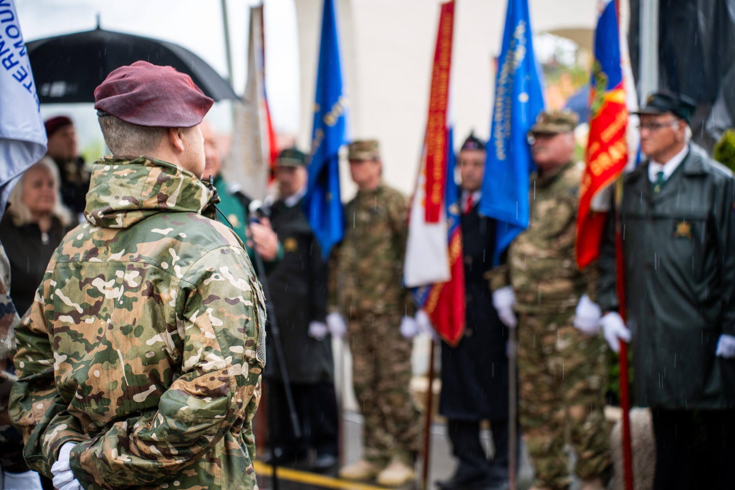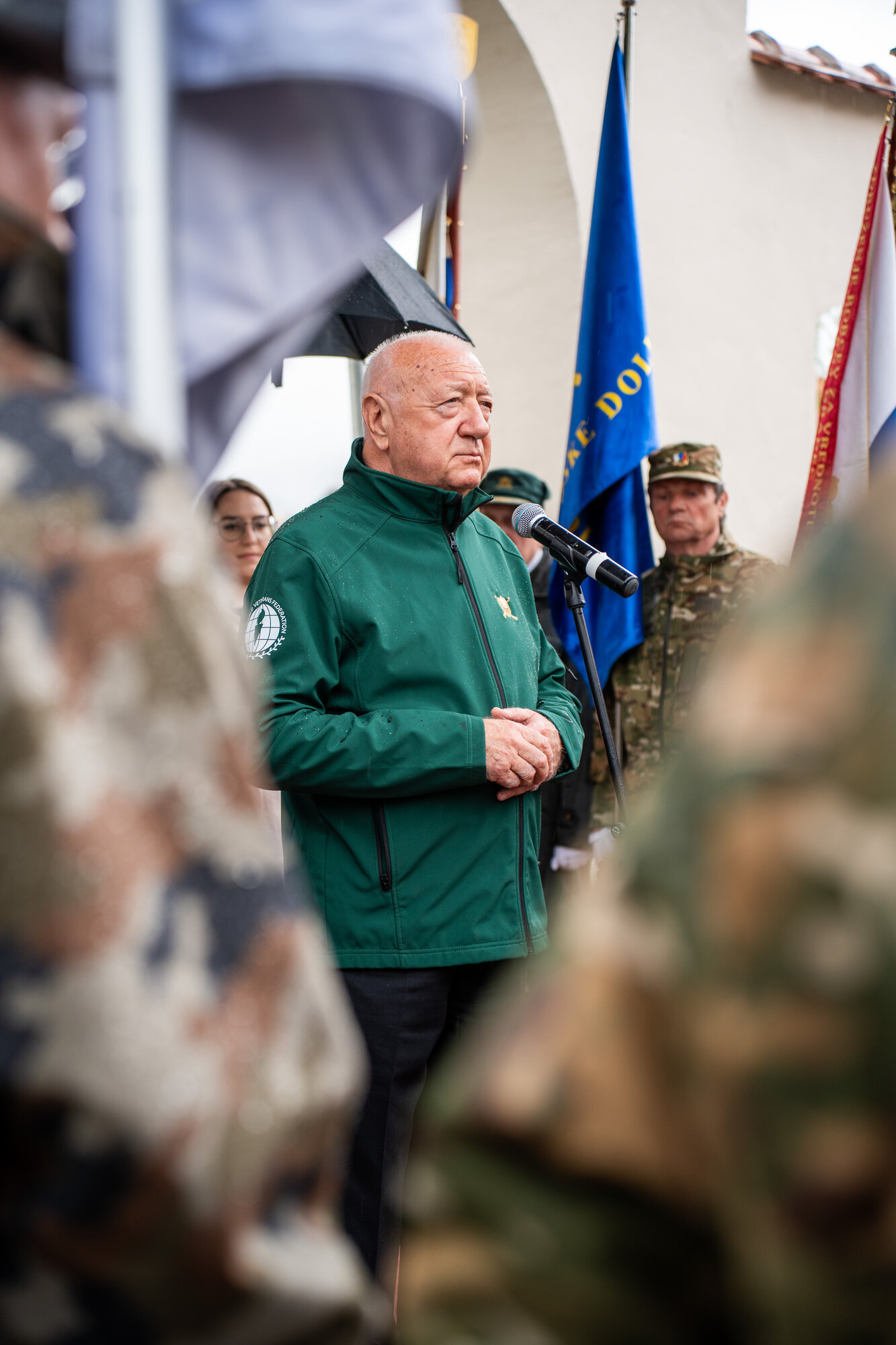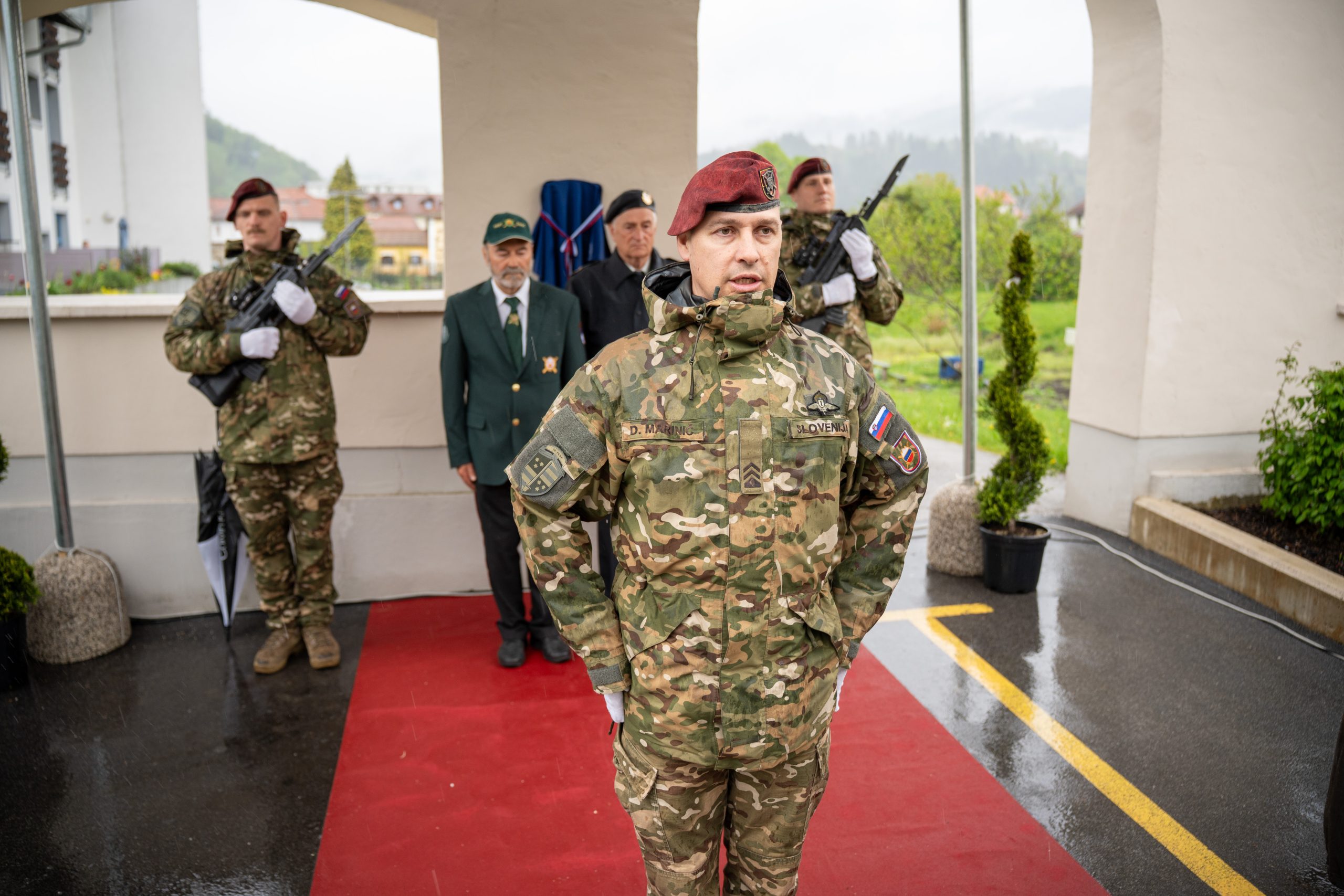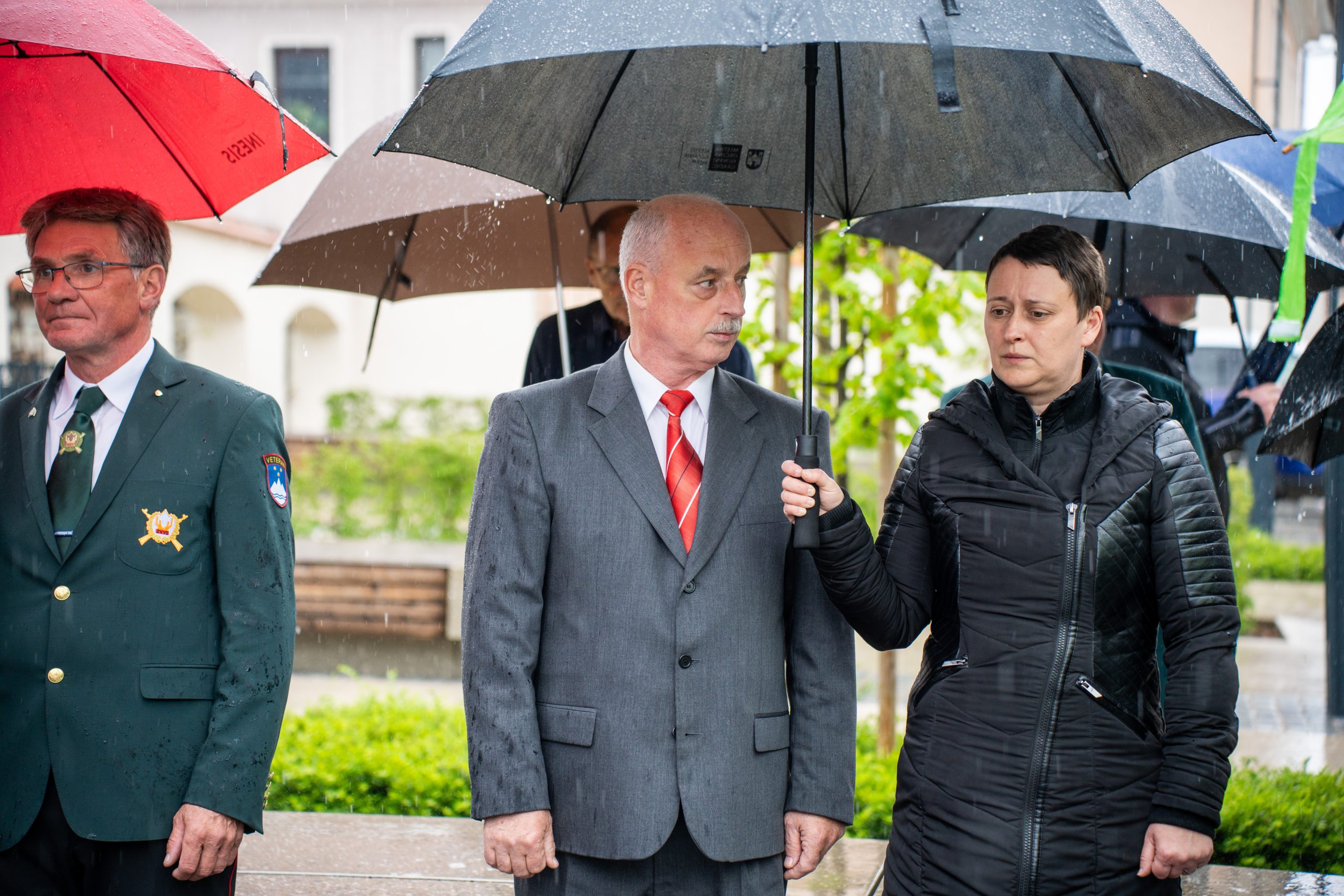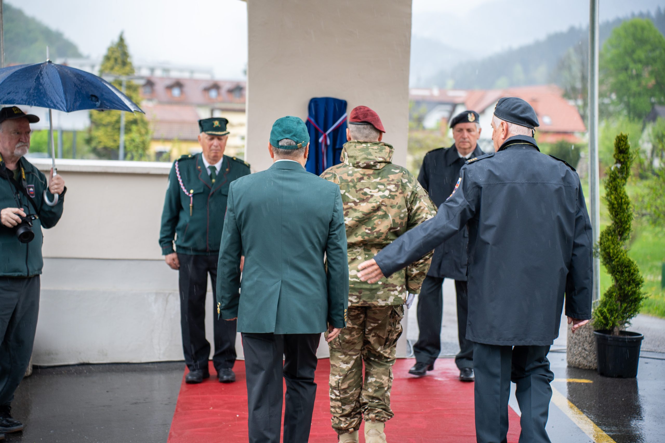 Veteranke in veterani, pripadniki domoljubnih organizacij in drugi obiskovalci so se kljub slabemu vremenu zbrali pred graščino Rotenturn.
