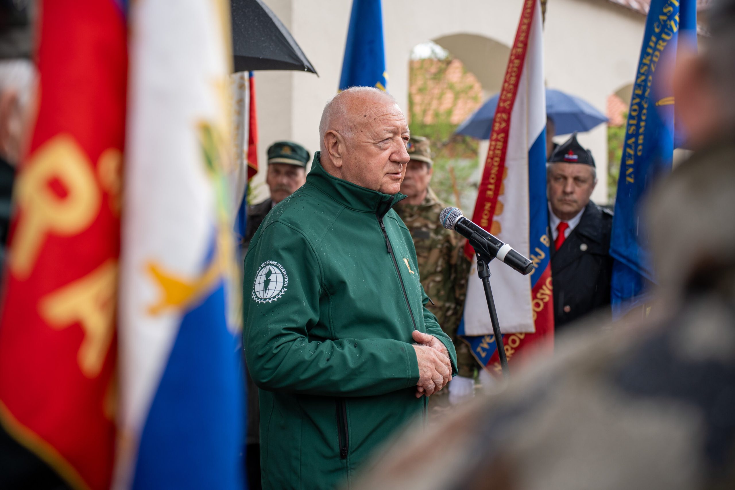 Veteranke in veterani, pripadniki domoljubnih organizacij in drugi obiskovalci so se kljub slabemu vremenu zbrali pred graščino Rotenturn.