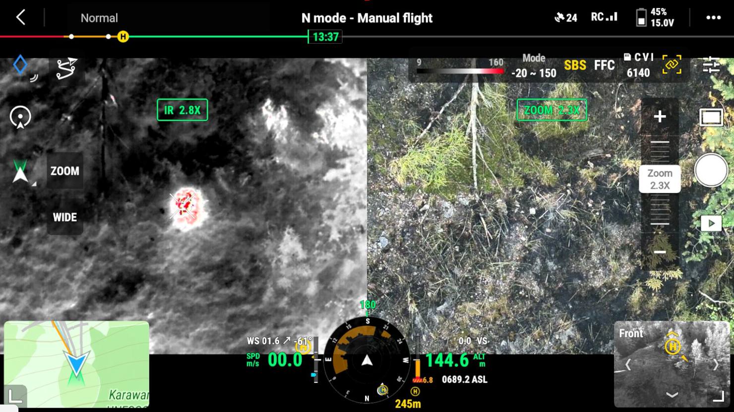Gasilci Prostovoljnega gasilskega društva Črna na Koroškem so teren nad Žerjavom že pregledali s termo kamero. Kot pravijo, so našli nekaj žarišč, ki jih bodo tekom dneva morali budno spremljati.