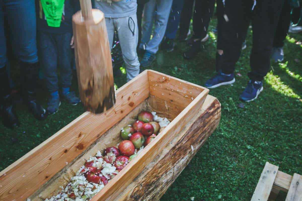 Delavnico prešanja so tudi letos izvedli člani Sadjarskega društva Mežiške doline in obiskovalcem pokazali stari način pridobivanja mošta s predhodnim točenjem jabolk ter stiskanjem soka na leseni preši. Pri tem jesenskem opravilu so se jim pridružili in jim pomagali še učenci iz POŠ Kotlje in OŠ Koroški jeklarji in skupina študentov Erasmus+ iz Slovenije, Srbije, Grčije, Latvije in Portugalske.