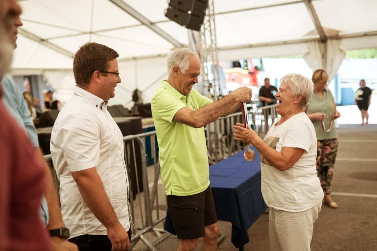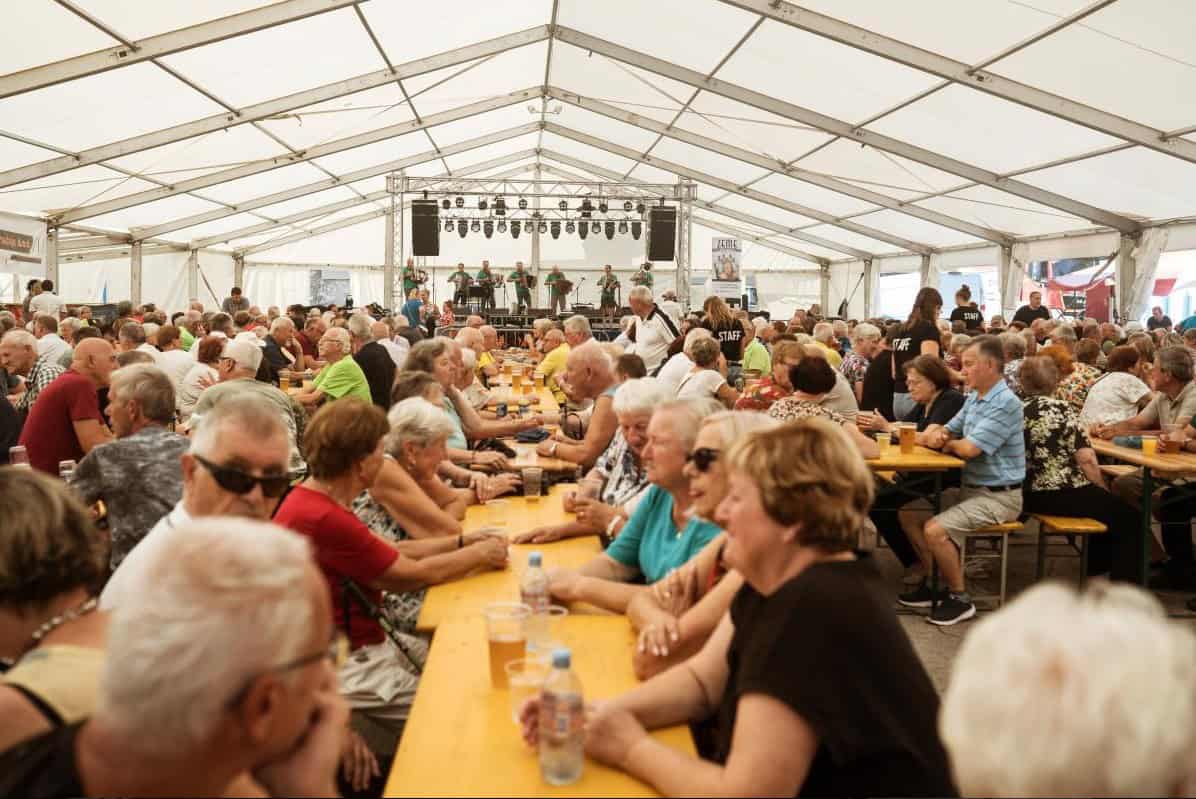 Prostor (šotor pri Mestnem bazenu), kjer so se konec tedna odvijale prireditve, je bil zadnji dan namenjen dolgoletnemu tradicionalnemu srečanju ravenskega župana dr. Tomaža Rožena z upokojenkami in upokojenci. Letošnje srečanje, že dvaindvajseto zapovrstjo, je privabilo nekoliko več kot petsto upokojenk in upokojencev, ki so se zbrali na tradicionalnem srečanju. Nagovoril jih je župan dr. Tomaž Rožen ter jim zaželel prijetno nedeljsko druženje, zahvalil za jim je tudi za številčno udeležbo. Župan je med svojim nagovorom zbrane seznanil tudi o projektih in delih, ki potekajo v občini Ravne na Koroškem.