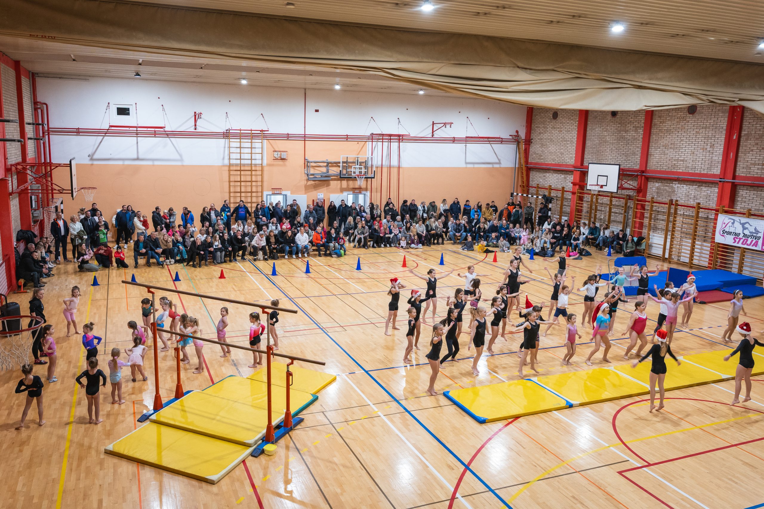 Na prireditvi so se predstavile vse gimnastičarke ŠD Stoja: od najmlajših iz vrtca, preko rekreacijske skupine, pa vse do izkušene tekmovalne ekipe. Vsaka skupina je pripravila svoje točke, prežete z božičnim duhom, bleščečimi nasmehi in nalezljivo energijo. Stoje, prevale, premete, salte in še mnogo drugih točk so gledalci nagradili z bučnimi aplavzi.