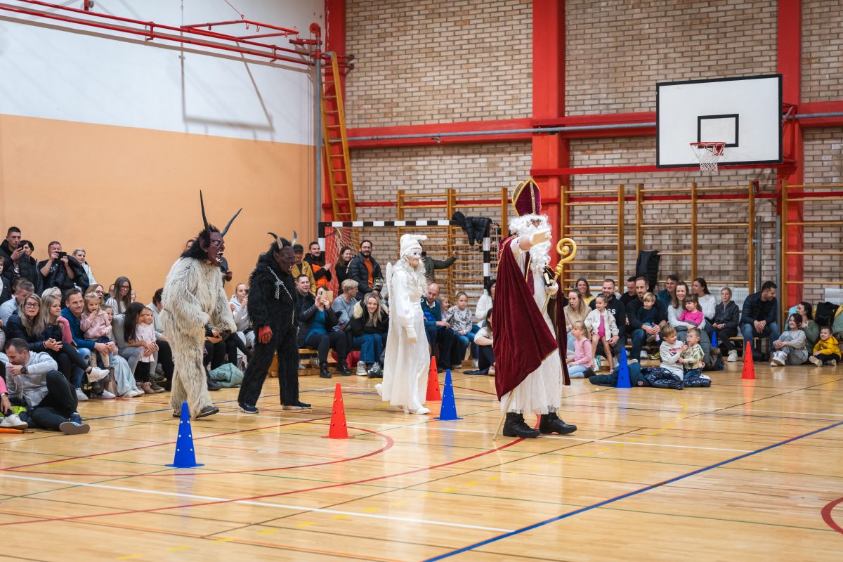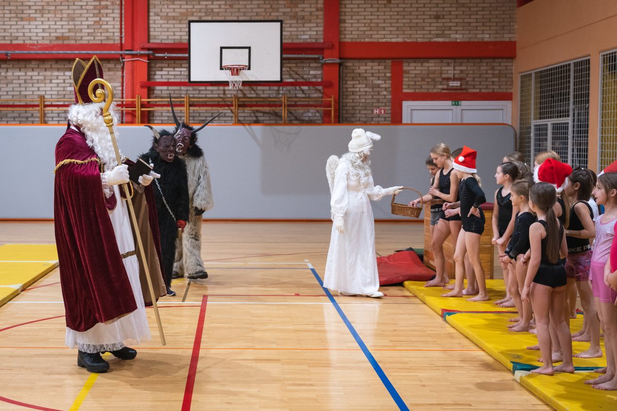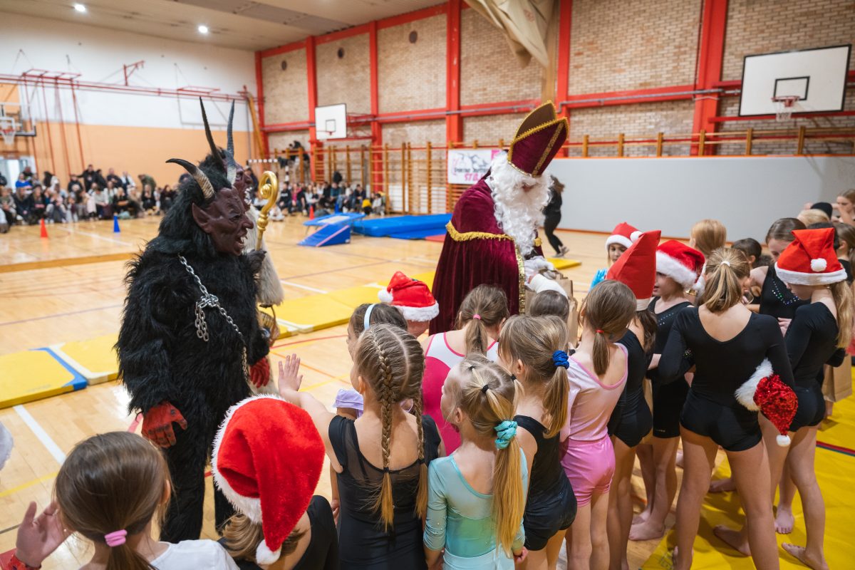 Vrhunec večera pa je bil nedvomno obisk Miklavža, ki je skupaj s svojimi nagajivimi parklji razveselil otroke. Vsaka gimnastičarka je prejela majhno darilce kot nagrado za celoletno delo in trud.