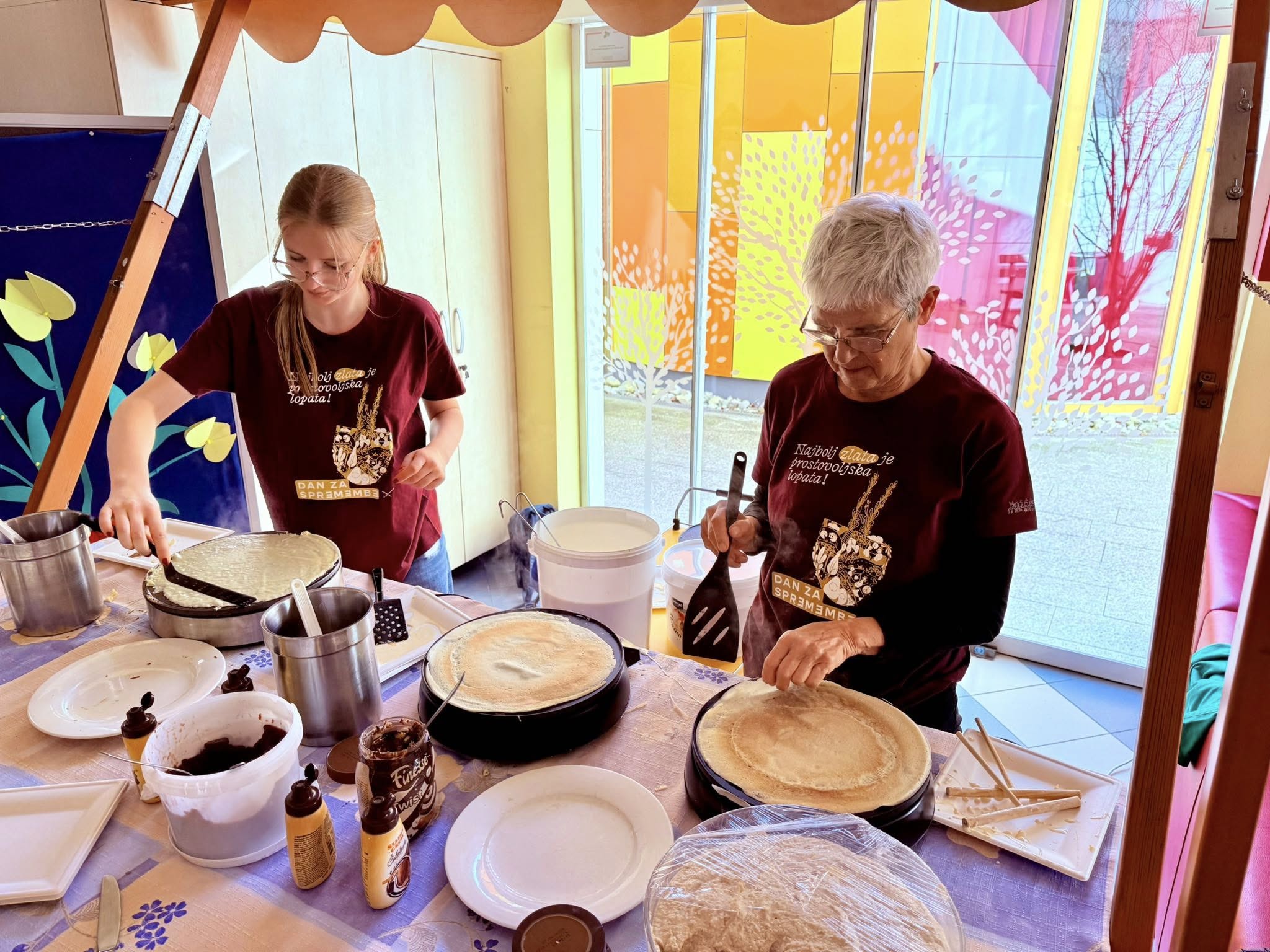 Več kot 40 prostovoljcev je bilo in z našo voljo so spreminjali »naše vesolje« in sicer okolico Doma in poskrbeli za čudovito preživljanje dopoldneva v druženju s stanovalci. Stanovalci so se udeležili kviza, aktivirali svoje znanje in izkušnje, njihovo prisotnost in odzivnost pa so nagradili s simboličnimi nagradami. Dopoldanske aktivnosti so potekale ob spremljavi mladih glasbenikov-ravenskih gimnazijcev, vse skupaj pa so s sladkimi dobrotami začinili še trije peki palačink. Da pa niso ostali lačni, so jim domski kuharji in njihovi pomočniki pripravili čudovito kosilo.