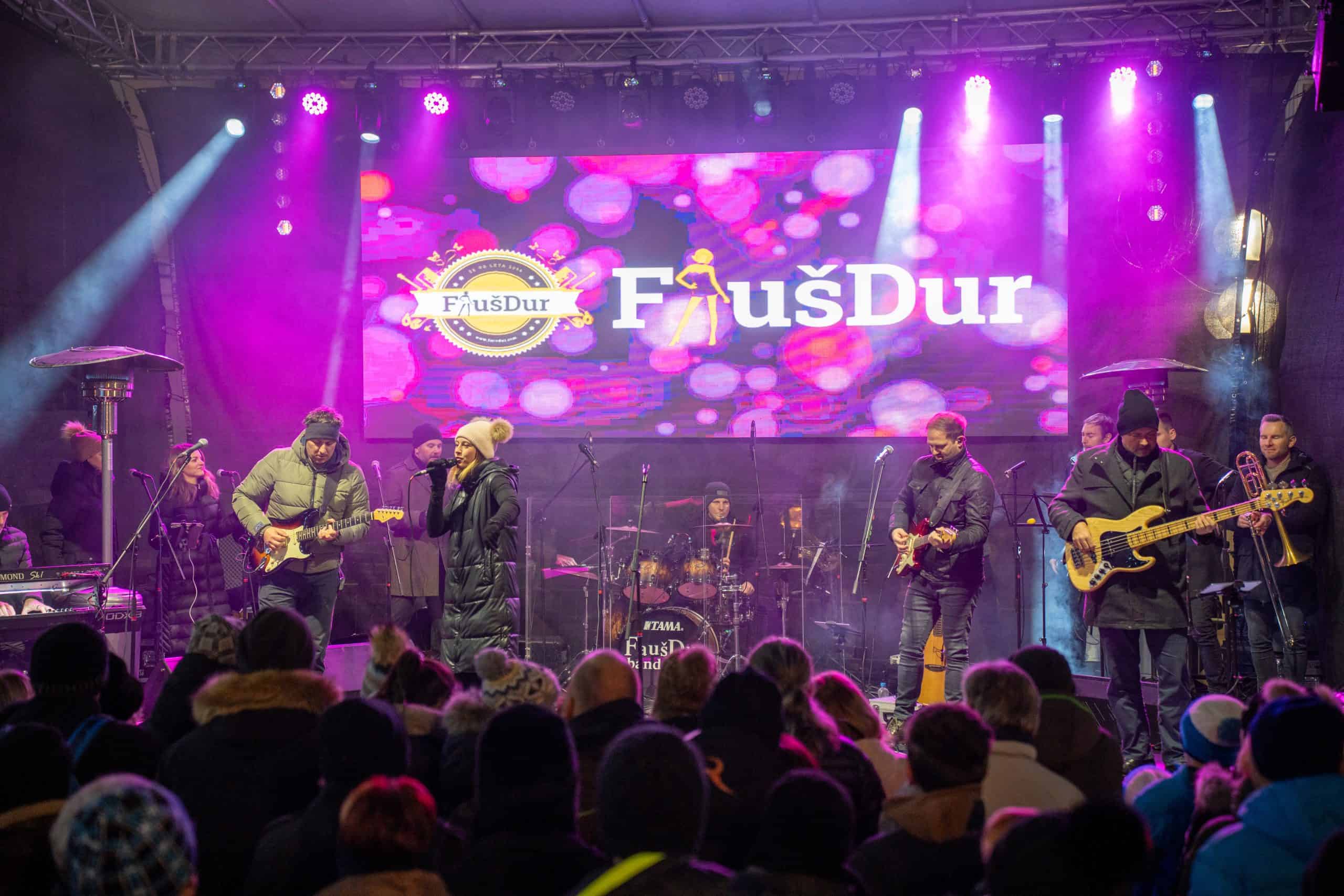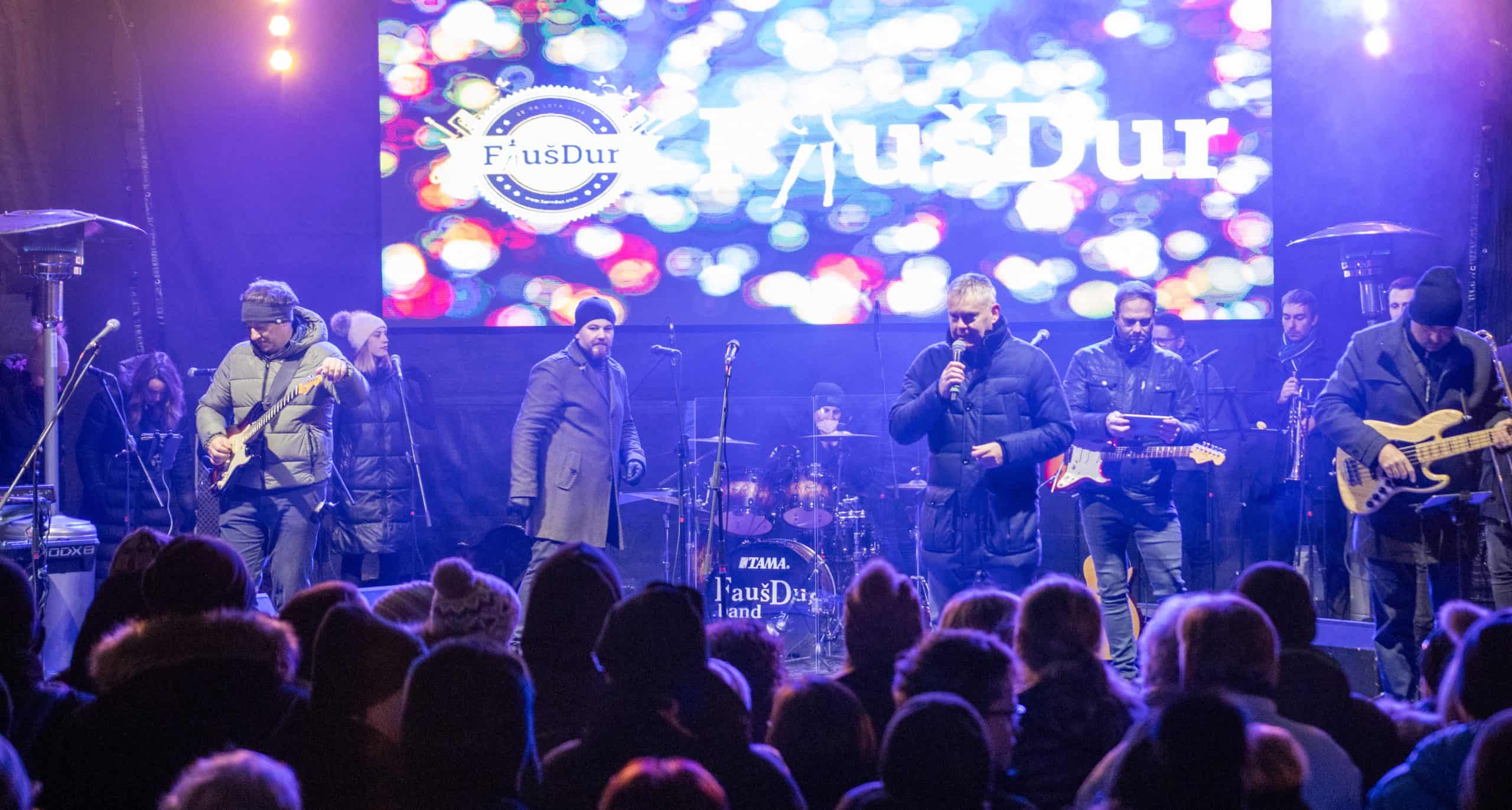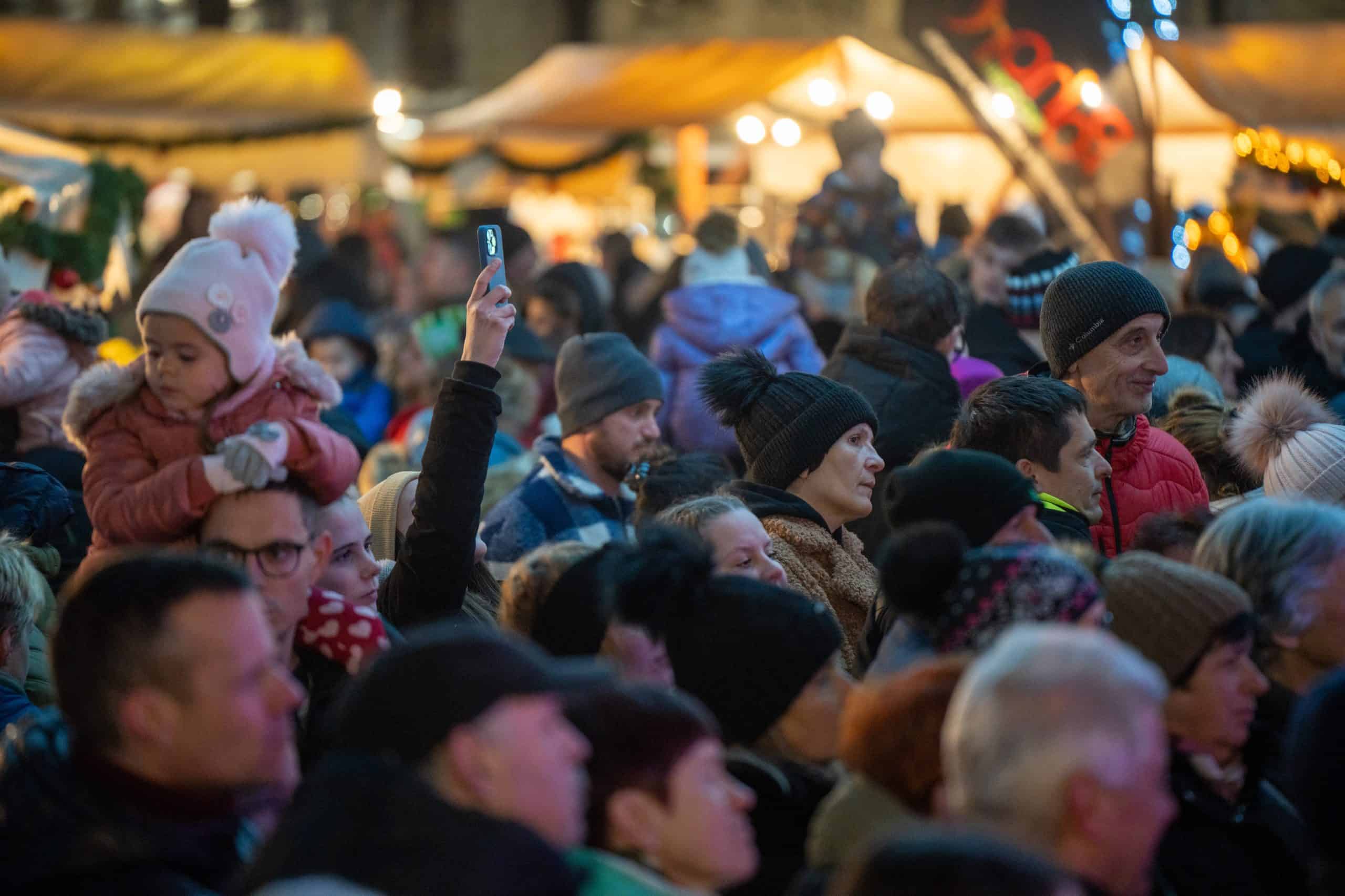 Na Glavnem trgu zbrala velika množica ljudi, vse obiskovalce pa so s svojim glasbenim programom navdušili člani glasbene skupine FaušDur, v družbi katerih je župan Mestne občine Slovenj Gradec Tilen Klugler prižgal praznično razsvetljavo ter Dj Ney.