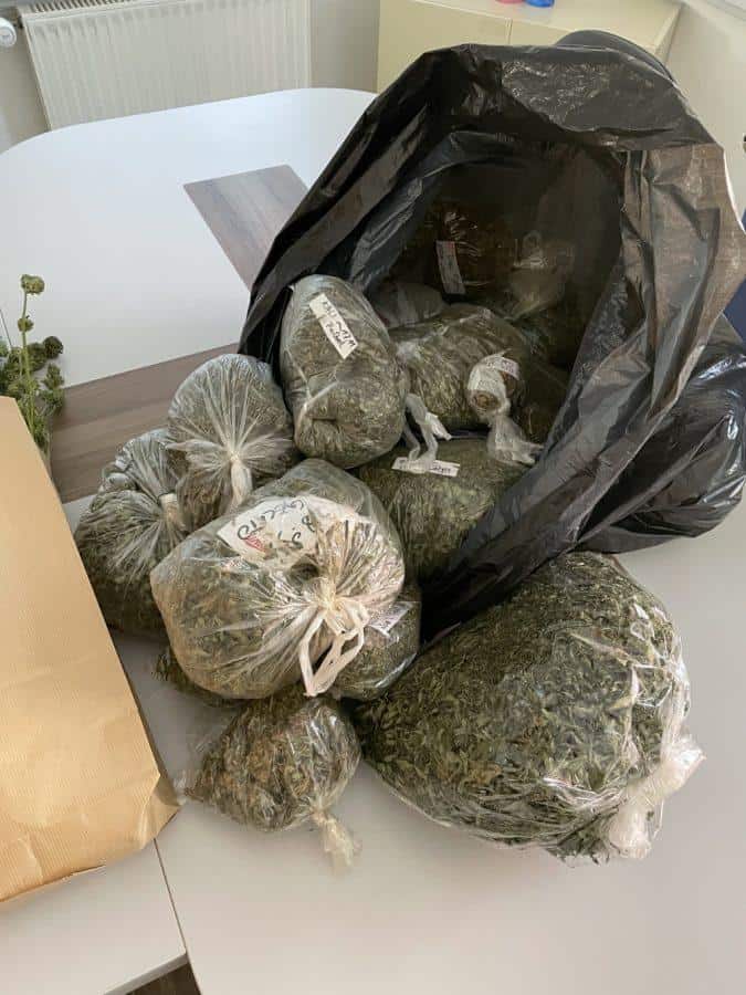 Našli in zasegli so več rastlin konoplje, visoke od pol do dobrih dveh metrov. Prav tako so zasegli več kot štirideset kozarčkov zmlete konoplje pripravljene za prodajo ter več kot dvajset vrečk posušenih vršičkov konoplje.