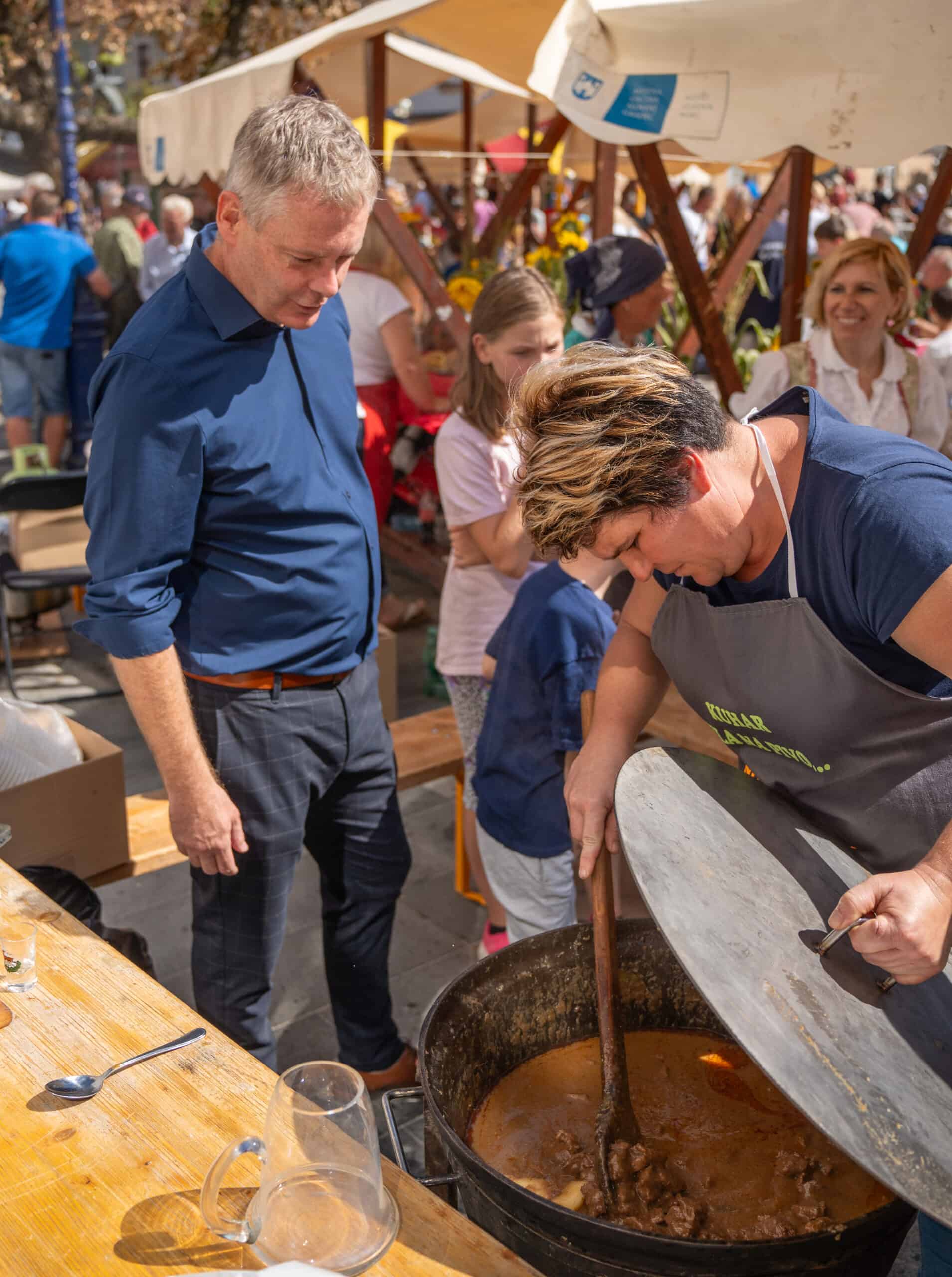 Vse prisotne je nagovoril seveda tudi župan MO Slovenj Gradec Tilen Klugler, ki je med drugim dejal: "Kuha se najboljši golaž v mestu. Prepustil se bom kulinaričnemu razvajanju kuharskih mojstrov iz Vaških skupnosti in Mestnih četrti Mestne občine Slovenj Gradec."