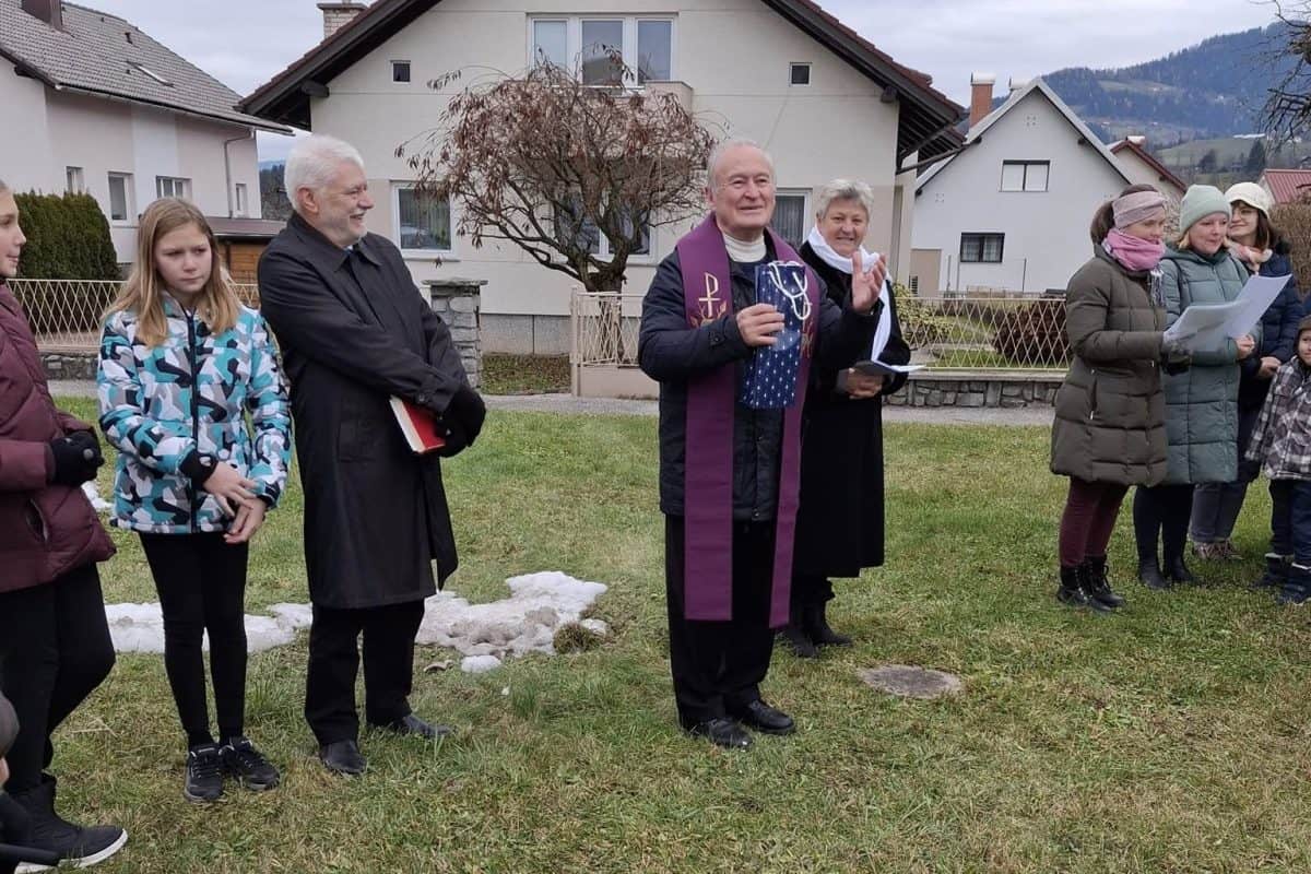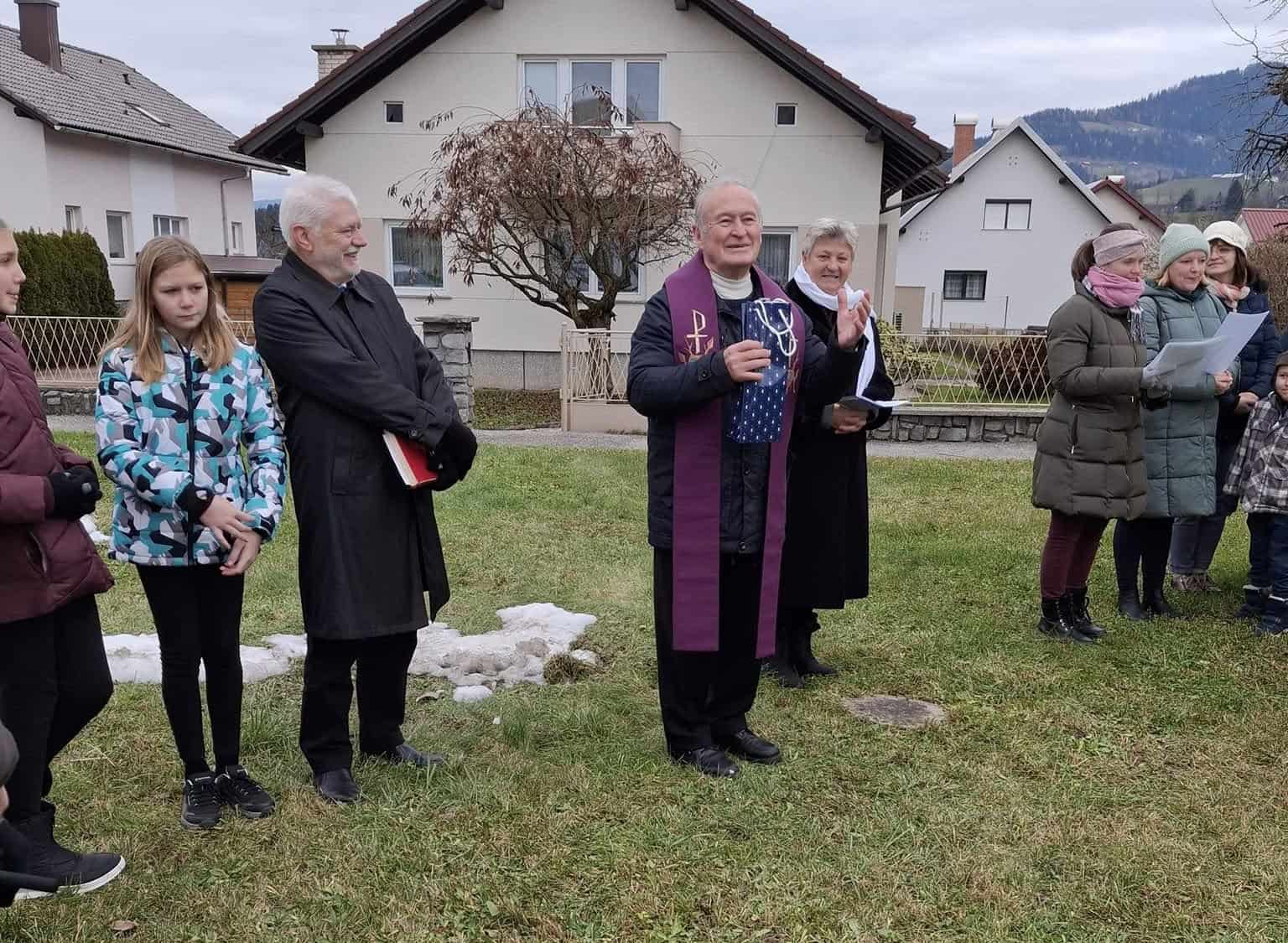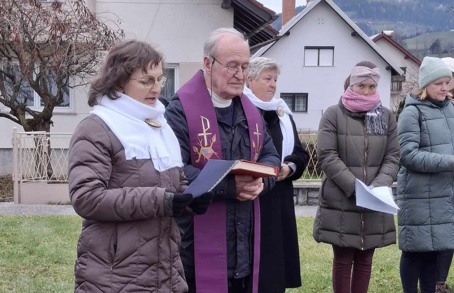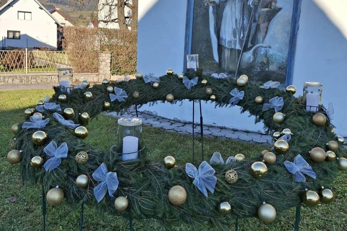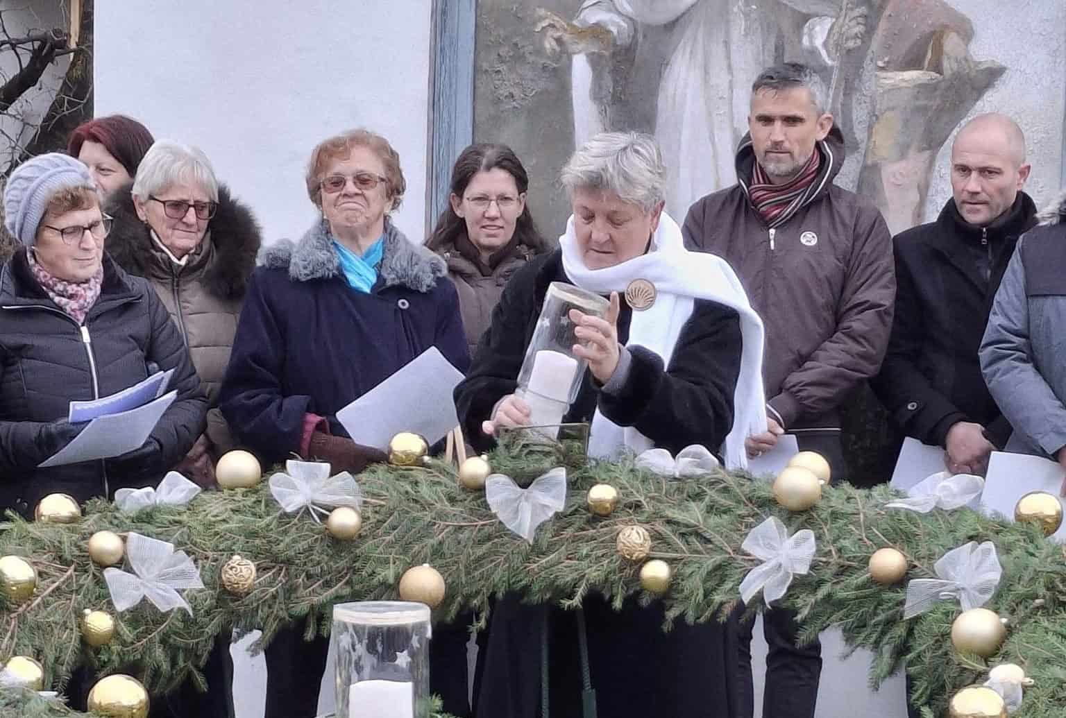 Po blagoslovu so ob zvenu pesmi cerkvenega pevskega zbora in prisotnosti mnogih obiskovalev prižgali prvo adventno svečo na venčku, ki krasi njihovo vas.