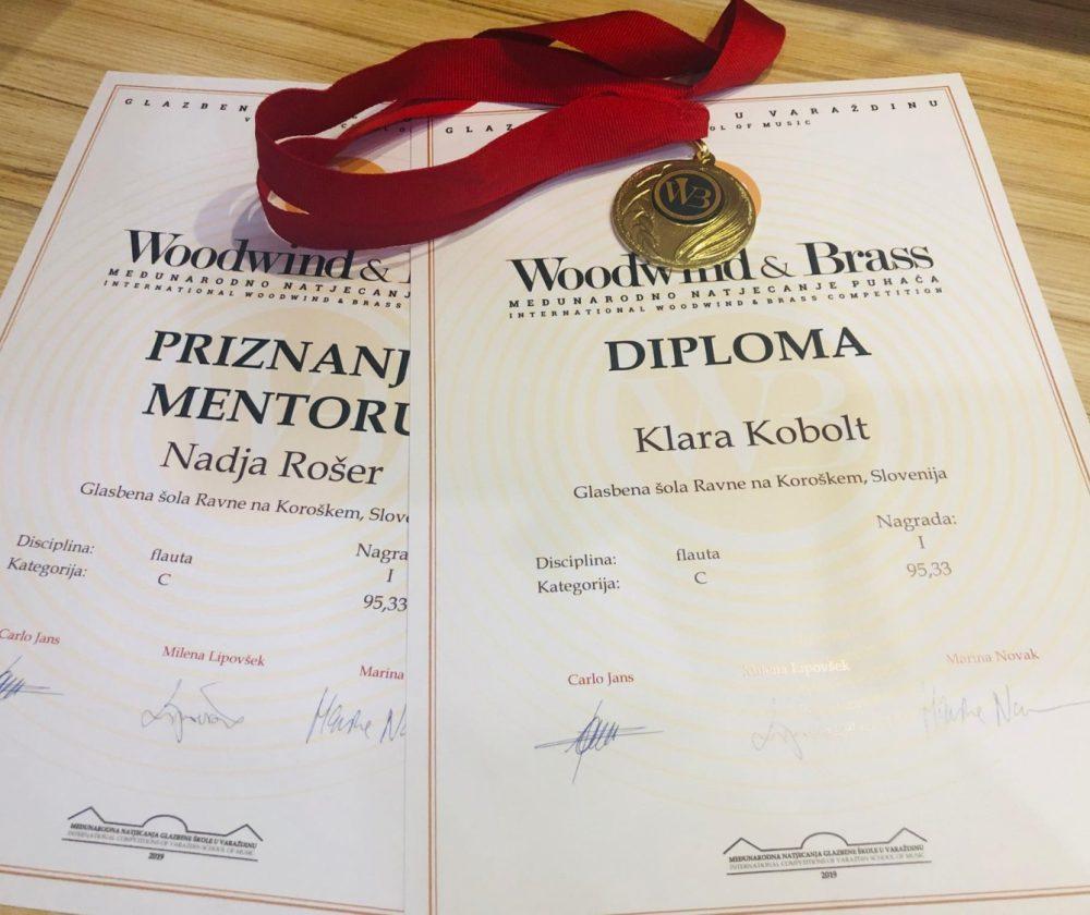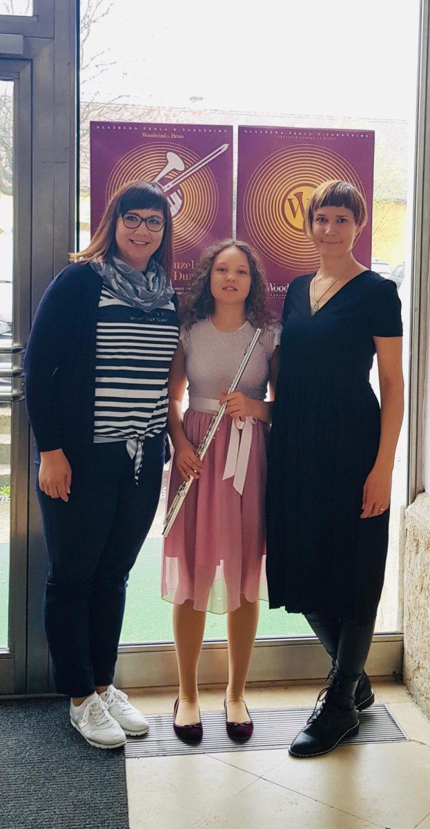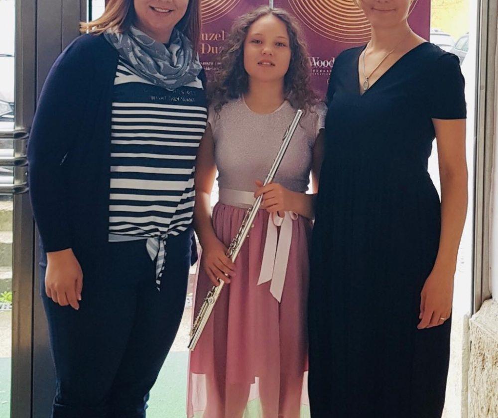 Flavtistka KLARA KOBOLT iz Mežice je z mentorico Nadjo Rošer in korepetitorko Heleno Buhvald Gorenšek v njeni starostni kategoriji, kategoriji C, osvojila 95,33 točk in I. nagrado oziroma zlato priznanje.