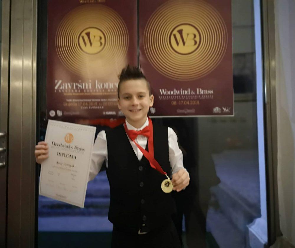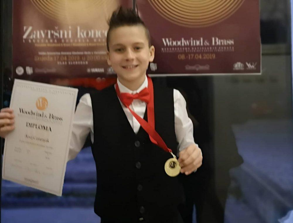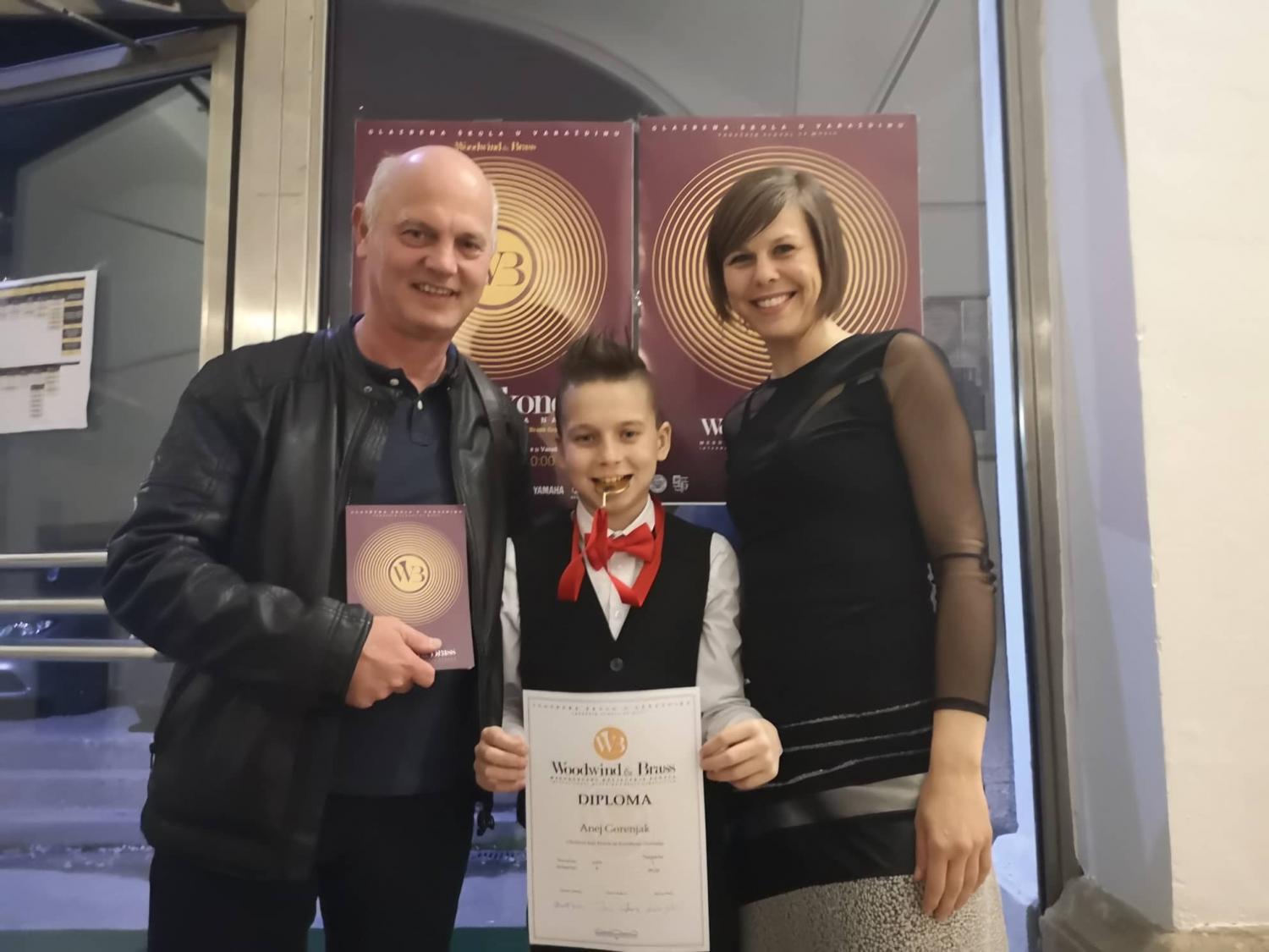 Trobentač ANEJ GORENJAK je z mentorjem Janezom Miklavžino in korepetitorko Petro Delopst v njegovi starostni skupini, v kategoriji 1. B, dosegel 99,5 točk in osvojil prvo nagrado oziroma zlato priznanje ter postal absolutni zmagovalec skupine..