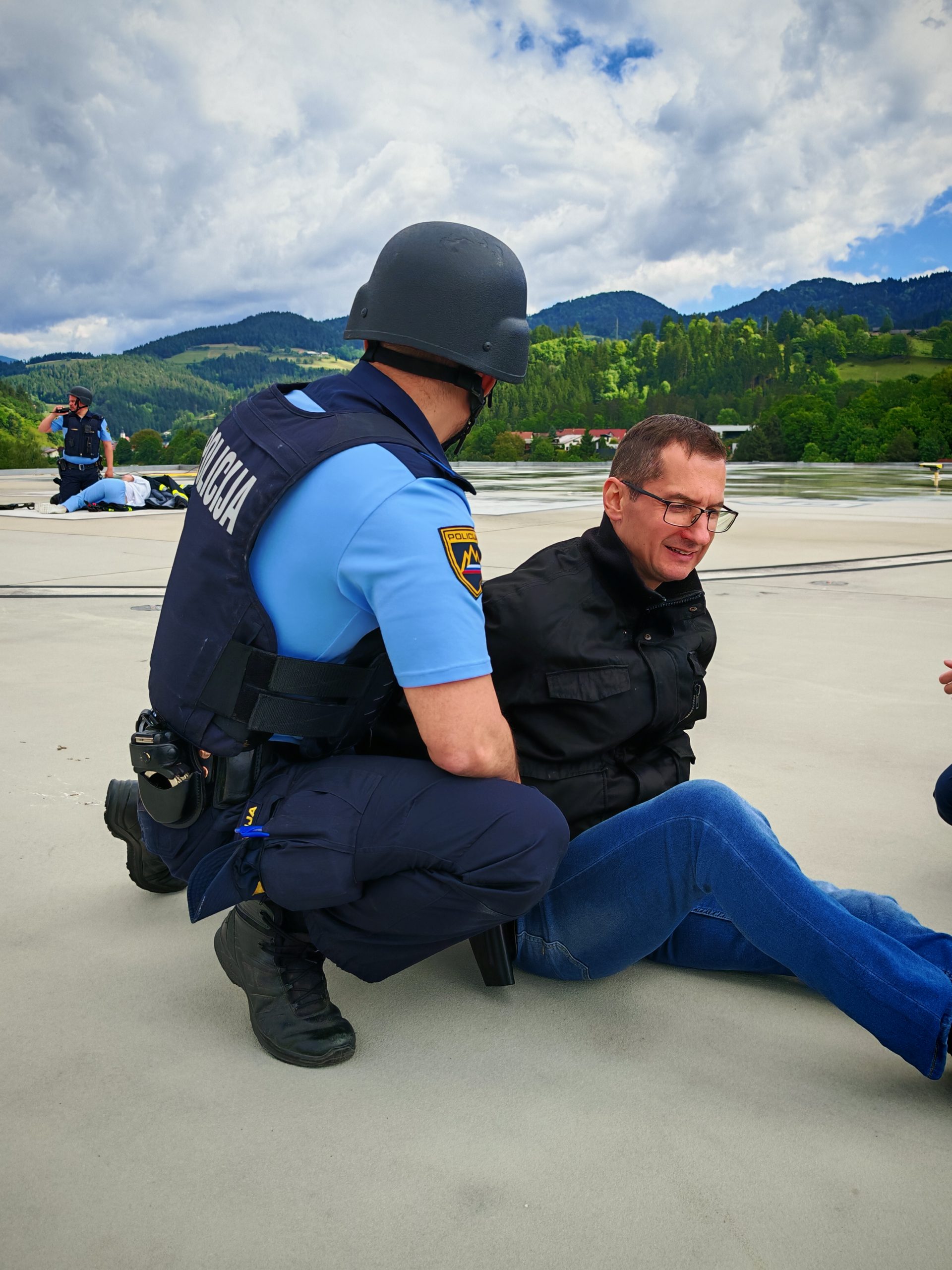 "Pomembno je skupno delo in komunikacija vseh interventnih služb, ter pravilna izvedba potrebnih postopkov, da se poskrbi najprej za storilce in potem za vse druge nevarnosti, ki bi lahko pretile na druge udeležence in premoženje," je o policijskem delu vaje povedal Hriberšek.