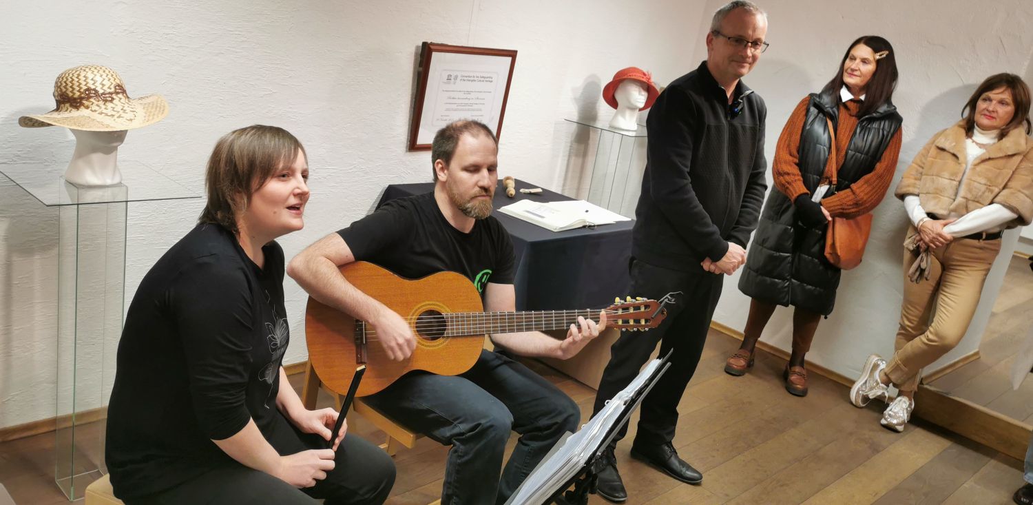 Poseben kotiček na letošnji razstavi je namenjen Milki Stergar, ki obeležuje 20 let klekljanja. Za glasbeni program sta poskrbela Mojca Preglau in Klemen Krnc.