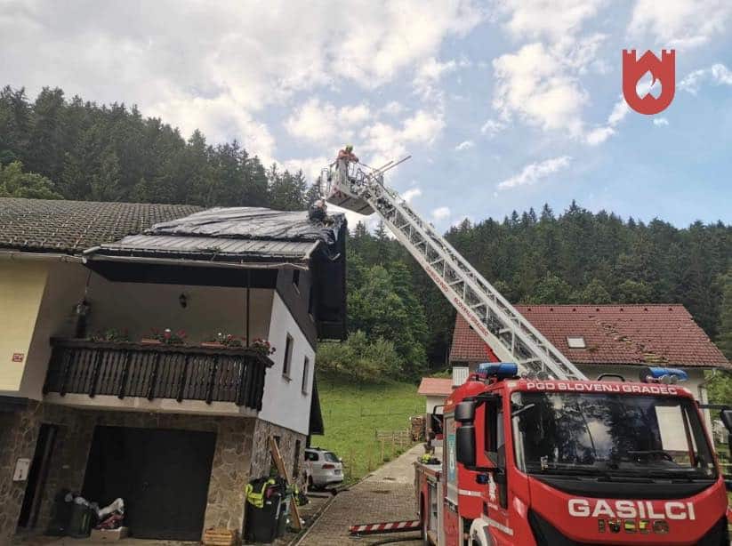 Na območju Prevalj: Zaradi odkritih streh na treh lokacijah so aktivirali gasilce PGD Prevalje.