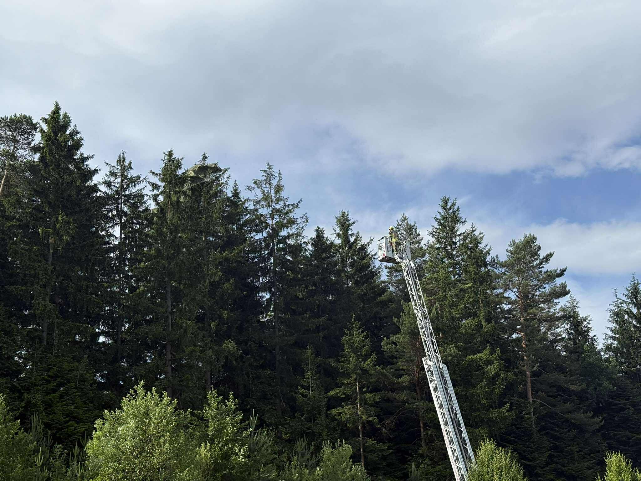 Na kraj dogodka so hitro posredovali gasilci, ki so s pomočjo lestve varno rešili padalca iz višine.