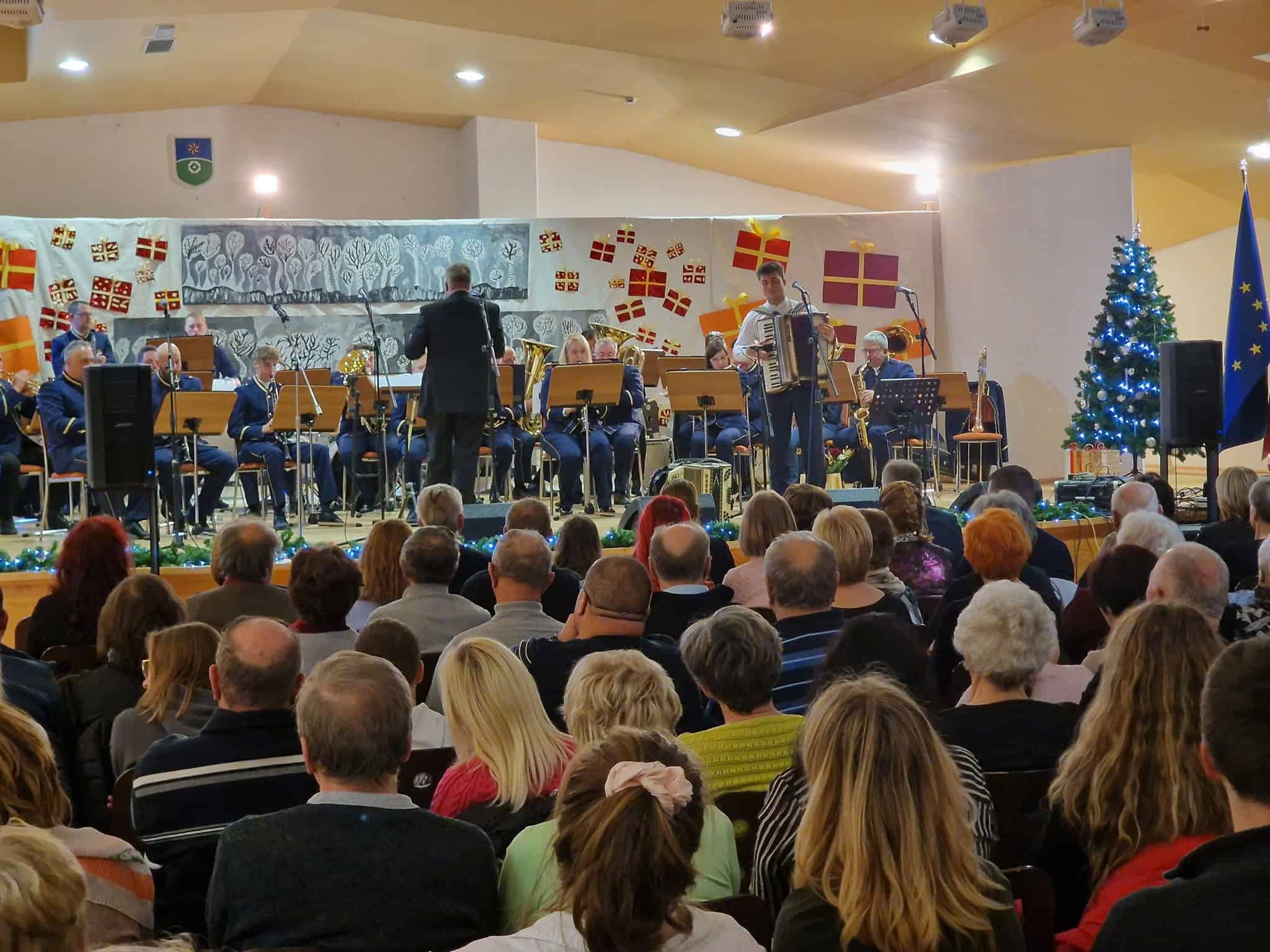 Kulturno društvo Mislinja je včeraj, 28. decembra 2024, priredilo izjemen Božično-novoletni koncert Babnikove godbe 1906, ki je v dvorano Lopan privabil množico ljubiteljev glasbe. Na odru so se glasbenikom pridružili gostje večera, priljubljeni Ansambel Spev, ki so s svojimi pesmimi poskrbeli za pravo praznično vzdušje.