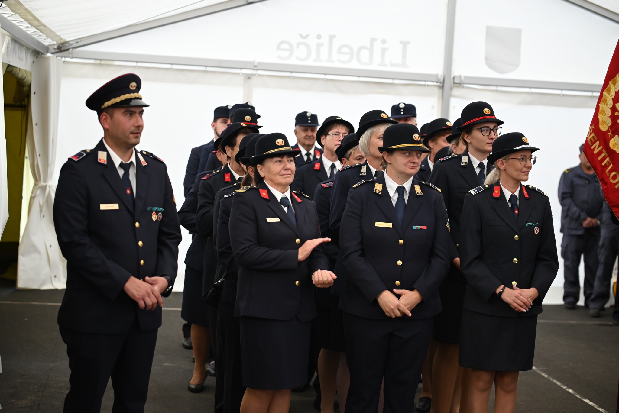 Prevzema so se udeležila društva iz Gasilske zveze Dravograd ter prijateljska društva. Kot se spodobi so se slovesnosti udeležili mnogi predstavniki: namestnica predsednika Gasilske zveze Slovenije dr. Janja Kramer Stajnko, član upravnega odbora Gasilske zveze Slovenije in predsednik koroške regije Jože Kašnik, predsednica GZ Dravograd, Marjetka Sevčnikar, namestnik poveljnika Gasilske zveze Dravograd Darko Kavnik, podžupan Robert Plimon, predsednik Krajevne skupnosti Libeliče Rok Plešivčnik, župnik župnije Franček Kraner ter krajani in podporniki društva.