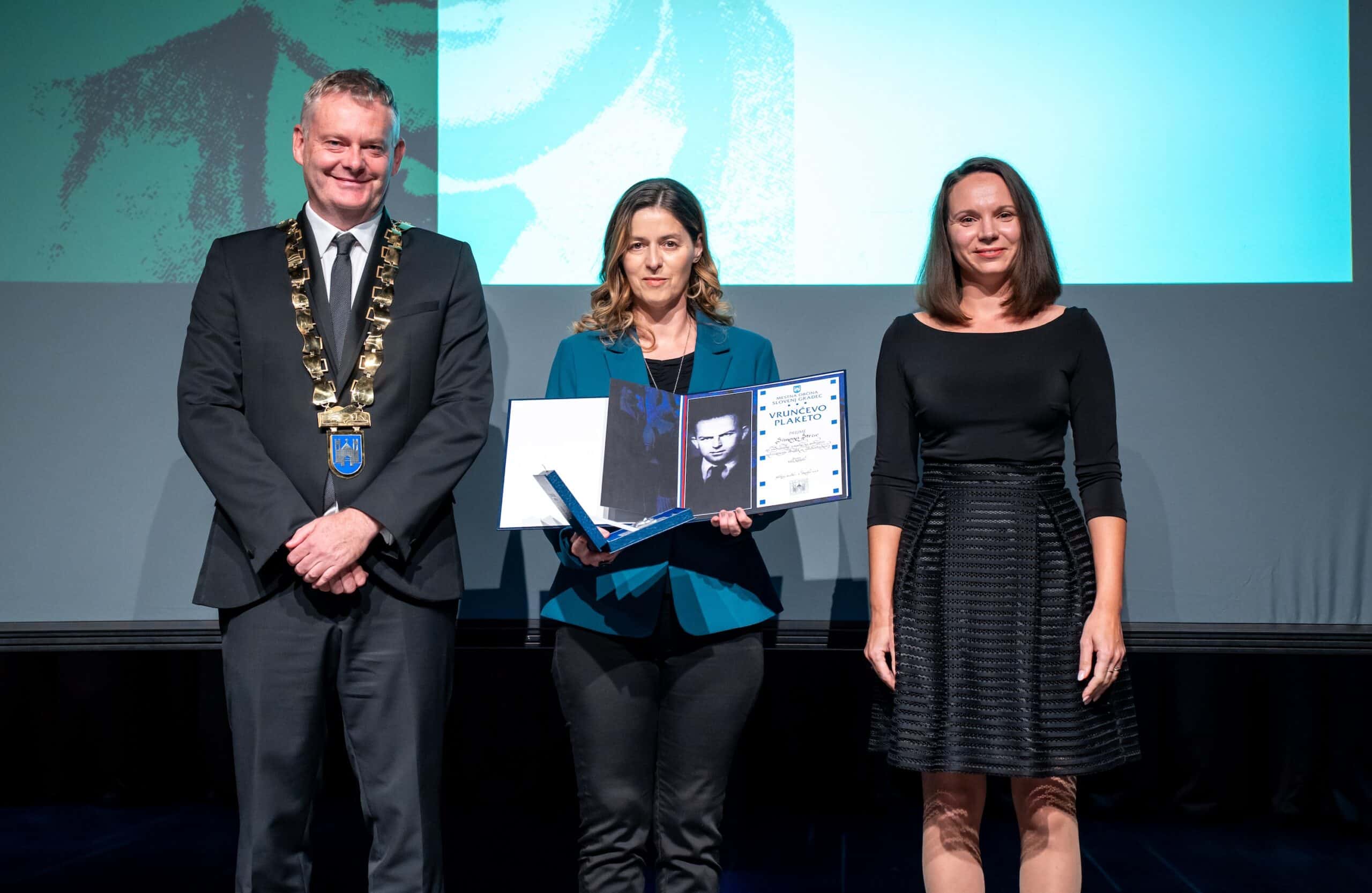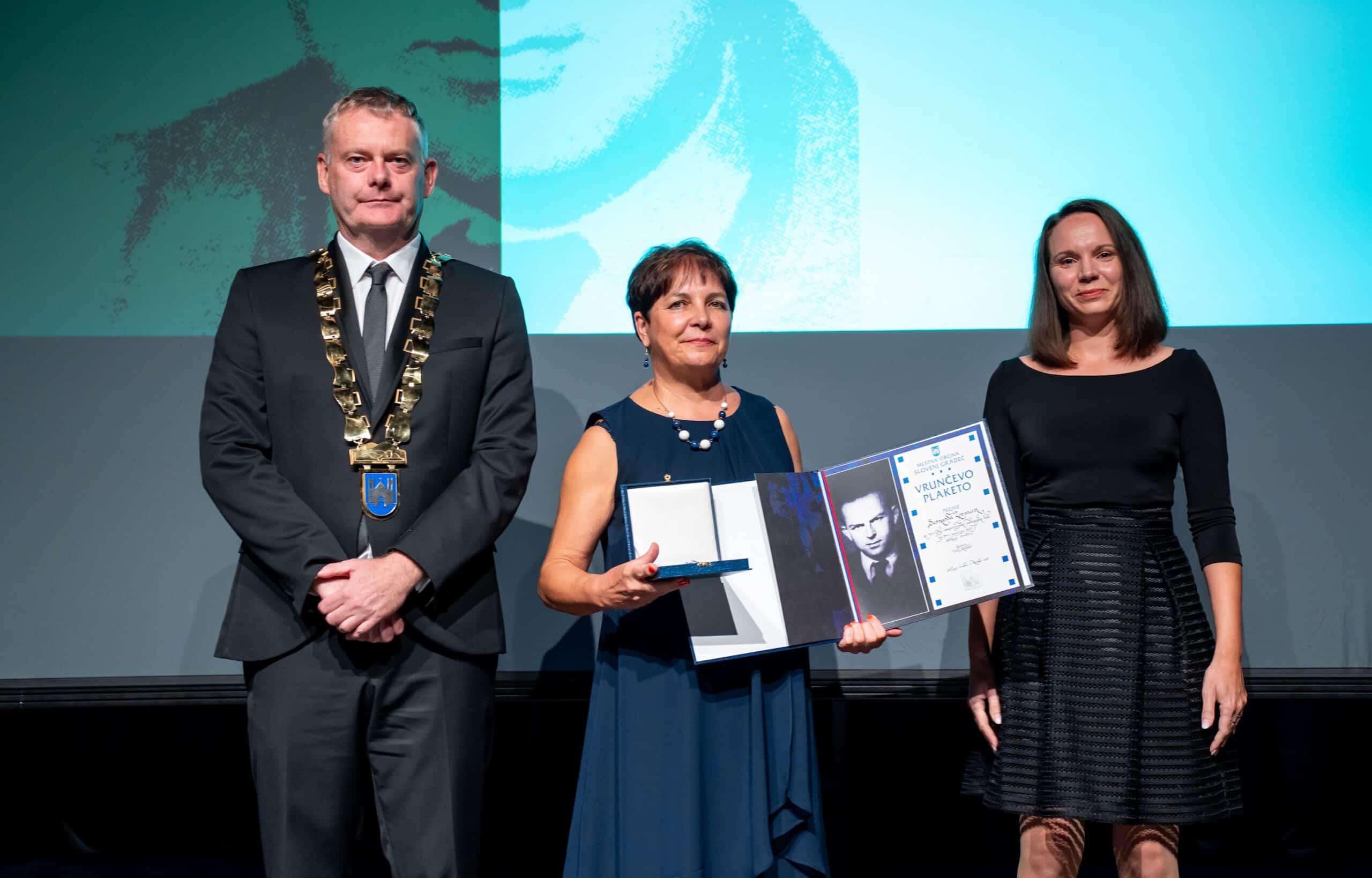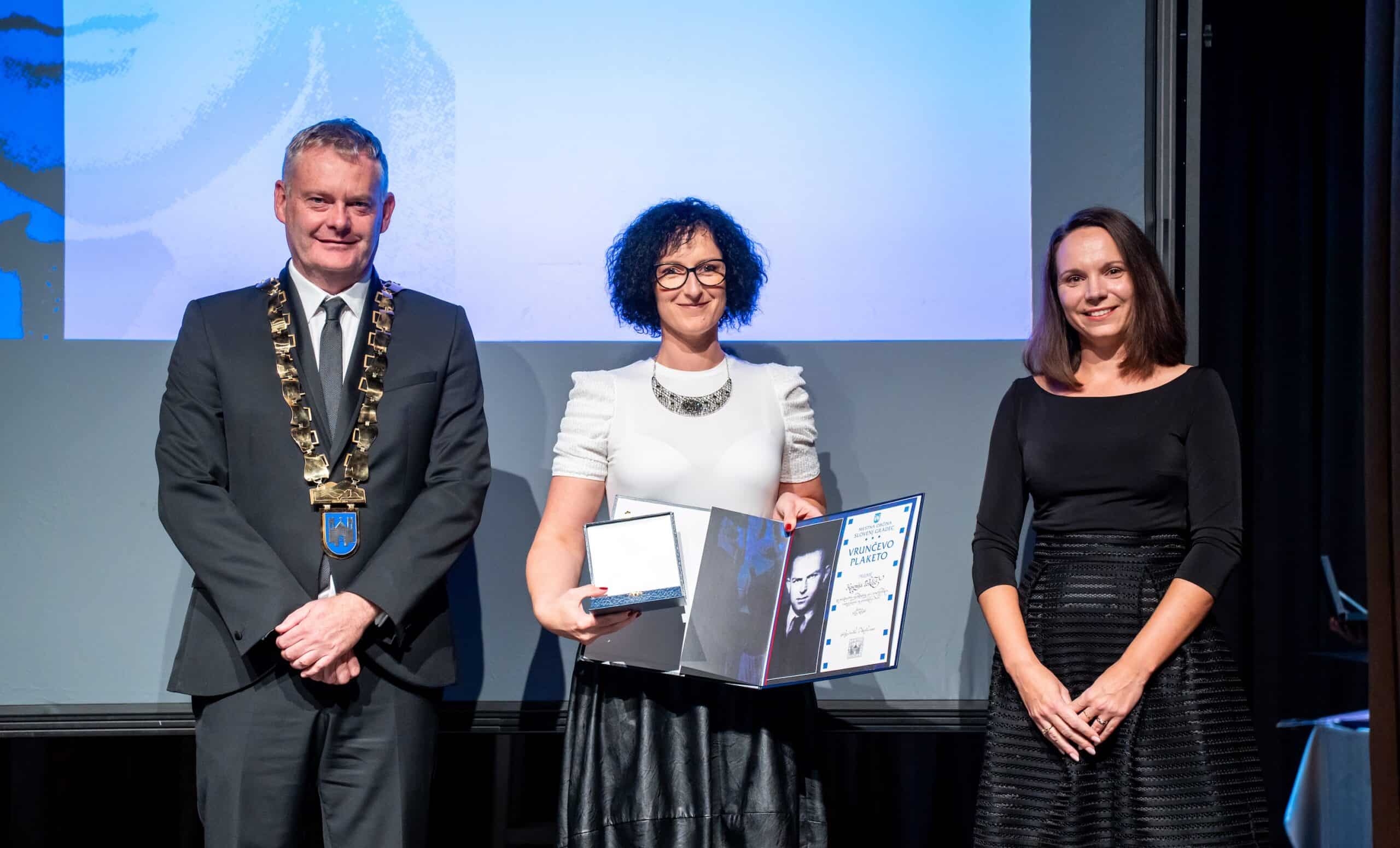 Dobitnice Vrunčevih plaket so: Ksenija Poklič za mentorstvo najmlajšim pri umetniškem ustvarjanju in projektno delo, Simona Štruc za pedagoške uspehe na področju izobraževanja odraslih in mladostnikov in Bernarda Zorman za 40-letno vsestransko pedagoško delo na Prvi osnovni šoli v Slovenj Gradcu.