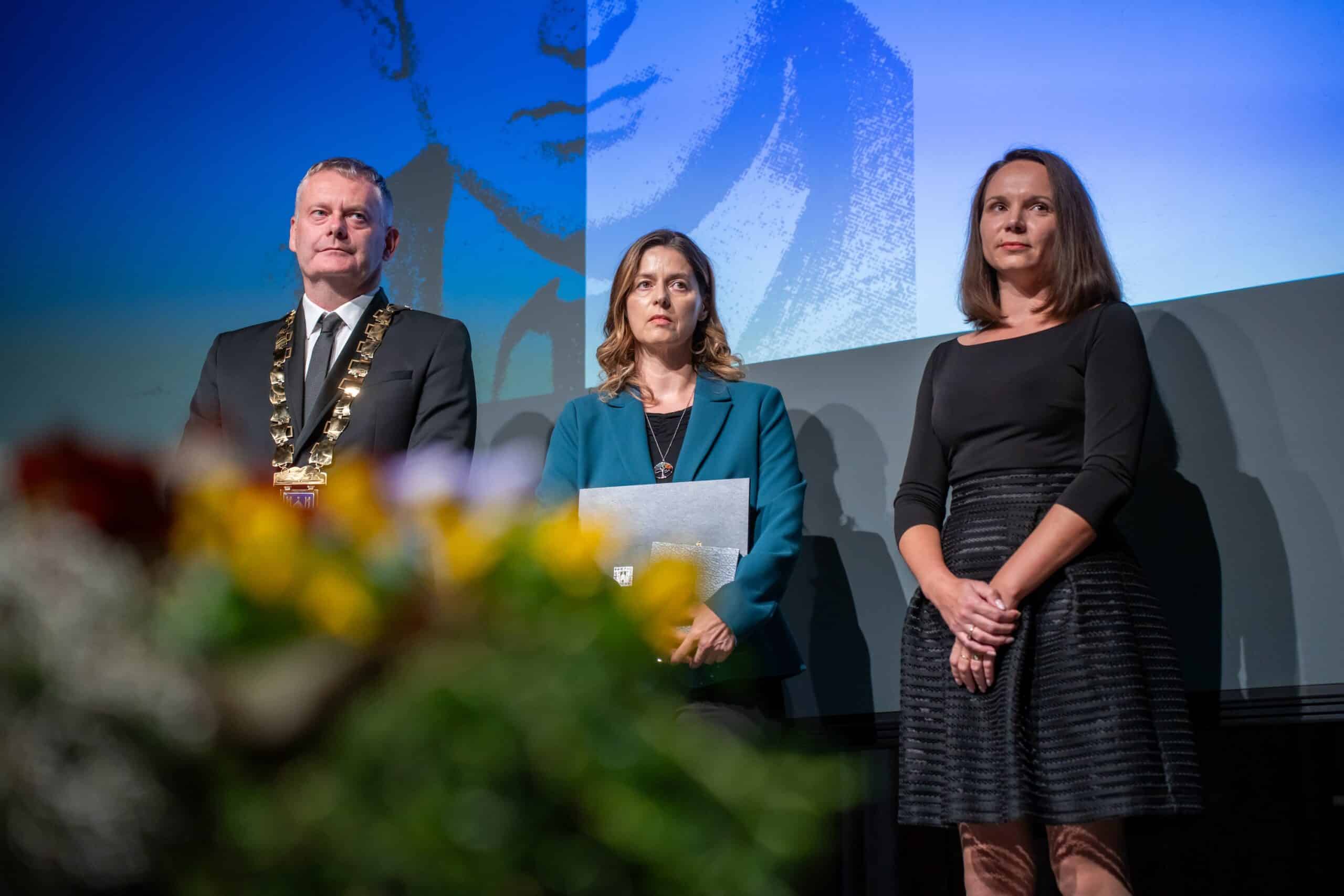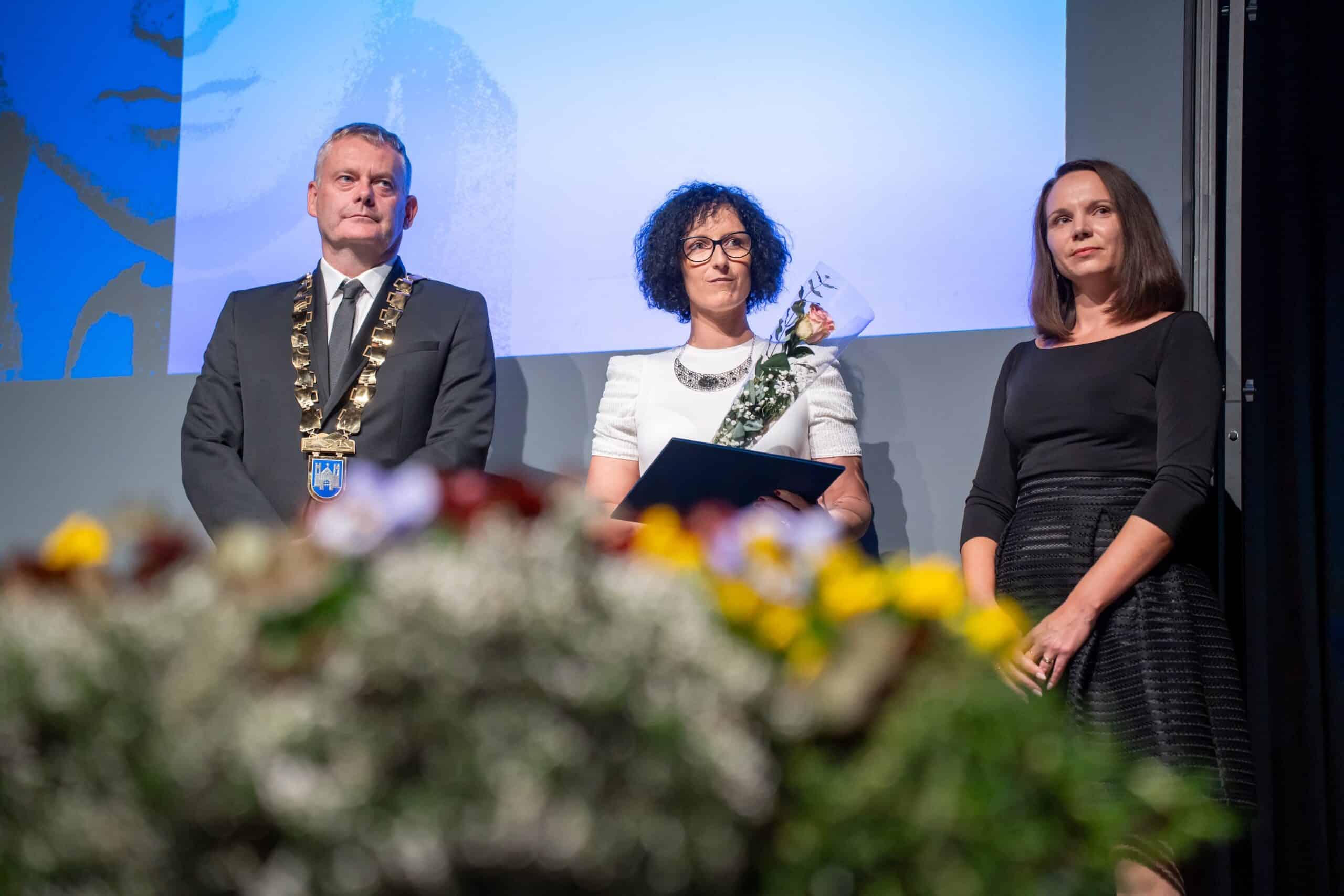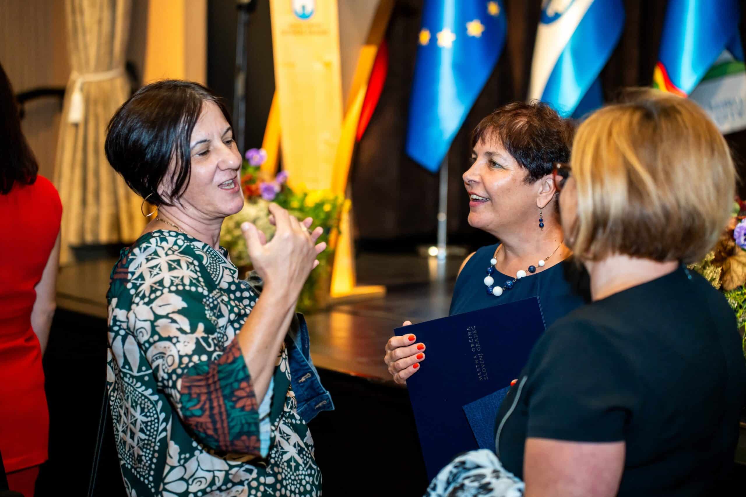 Dobitnice Vrunčevih plaket so: Ksenija Poklič za mentorstvo najmlajšim pri umetniškem ustvarjanju in projektno delo, Simona Štruc za pedagoške uspehe na področju izobraževanja odraslih in mladostnikov in Bernarda Zorman za 40-letno vsestransko pedagoško delo na Prvi osnovni šoli v Slovenj Gradcu.