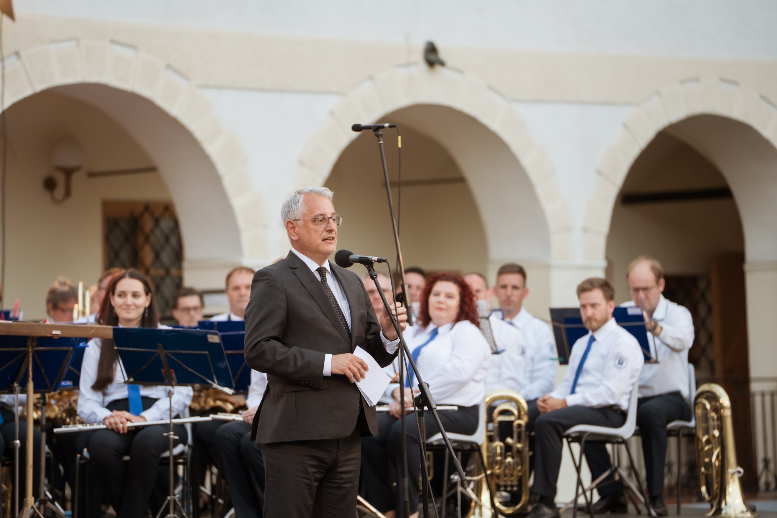 V atriju graščine Rotenturn so se včeraj poklonili dnevu državnosti, prazniku, ki nas spominja na dan, ko je Slovenija postala formalno postala neodvisna in smo si kot narod izborili pravico do lastne države. Zbrane je nagovoril minister za gospodarstvo, turizem in šport Matjaž Han, ki je v mestu, ki že desetletja nosi naziv glasnik miru, spregovoril prav o miru – temeljni vrednoti, ki tudi danes še zdaleč ni samoumevna, o čemer vedno znova pričajo nestabilne razmere in dogajanje po svetu. Mir je vsakodnevna izbira, je poudaril v nagovoru. “Mir je velikokrat res politična odločitev. A mir je tudi vsakodnevni napor. Včasih celo pogum, da tudi v nemiru ostaneš človek.”