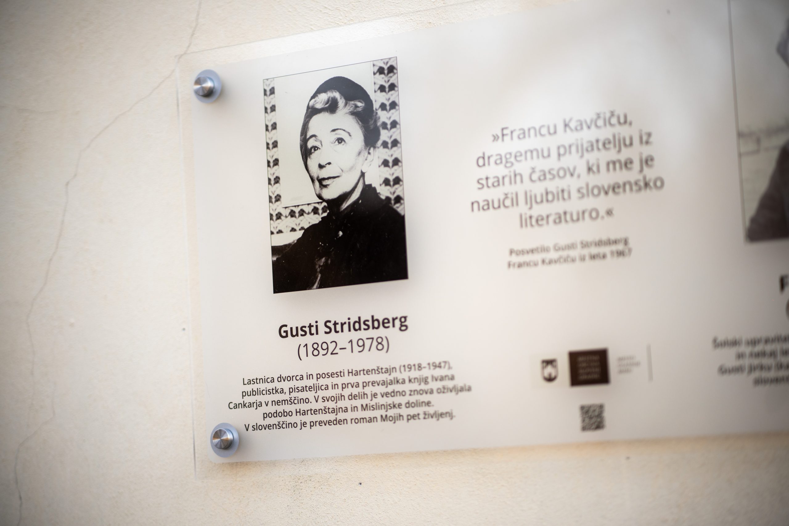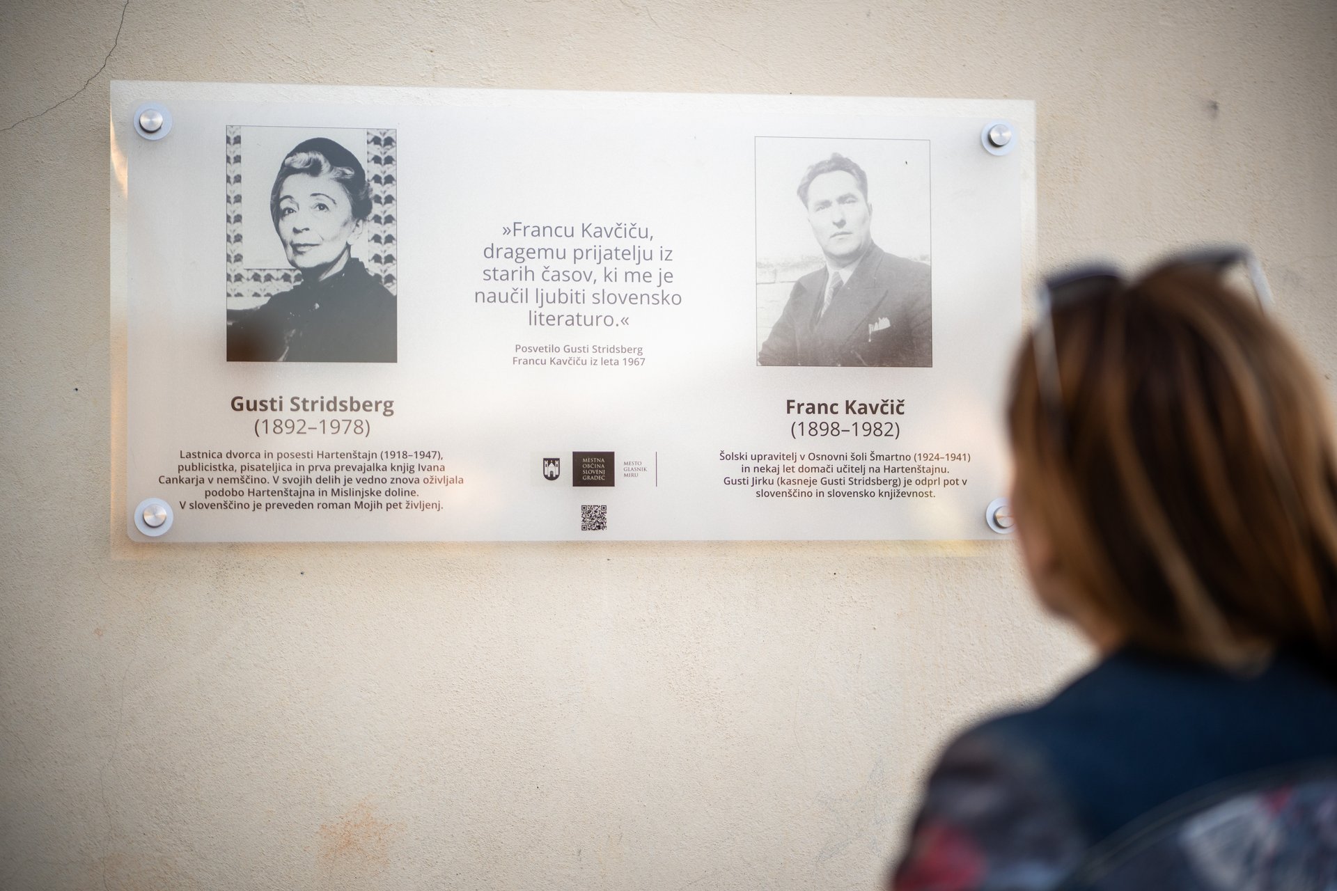 Pred Osnovno šolo Šmartno pri Slovenj Gradcu so v četrtek, 6. novembra, slovesno odkrili spominski plošči, posvečeni Gusti Stridsberg, nekdanji lastnici posesti Hartenštajn ter publicistki, pisateljici in prevajalki, ter Francu Kavčiču, dolgoletnemu upravitelju šole, ki ji je pomembno odprl pot v slovenski jezik in književnost.