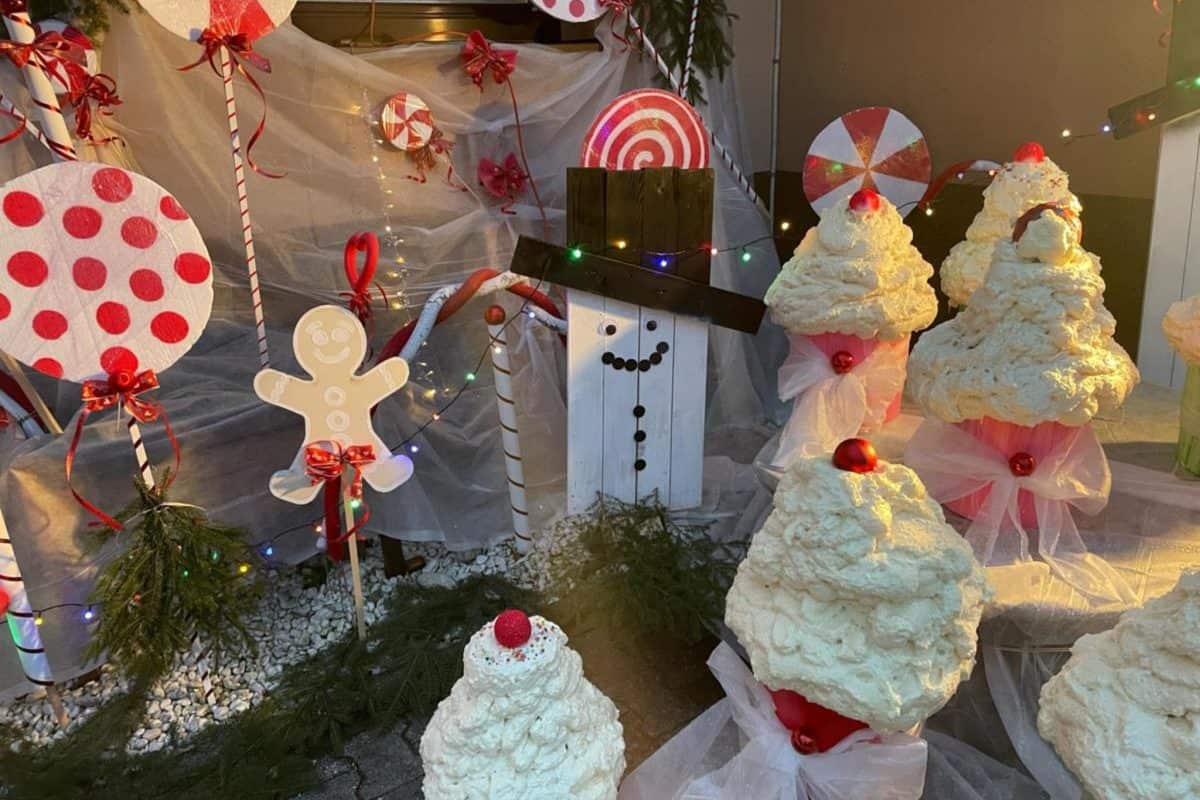 Zbranim in tudi ostalim mimoidočim posebno pozornost pritegne izjemna praznična dekoracija, ki je postavljena pred njihovo šolo. Vse od svetlečih lučk, zvezdic in druge praznične dekoracije kot so velike sladke božične lizanke in bonbončki. Skupaj tvorijo čudovito pravljično podobo, ki navdušuje vse.