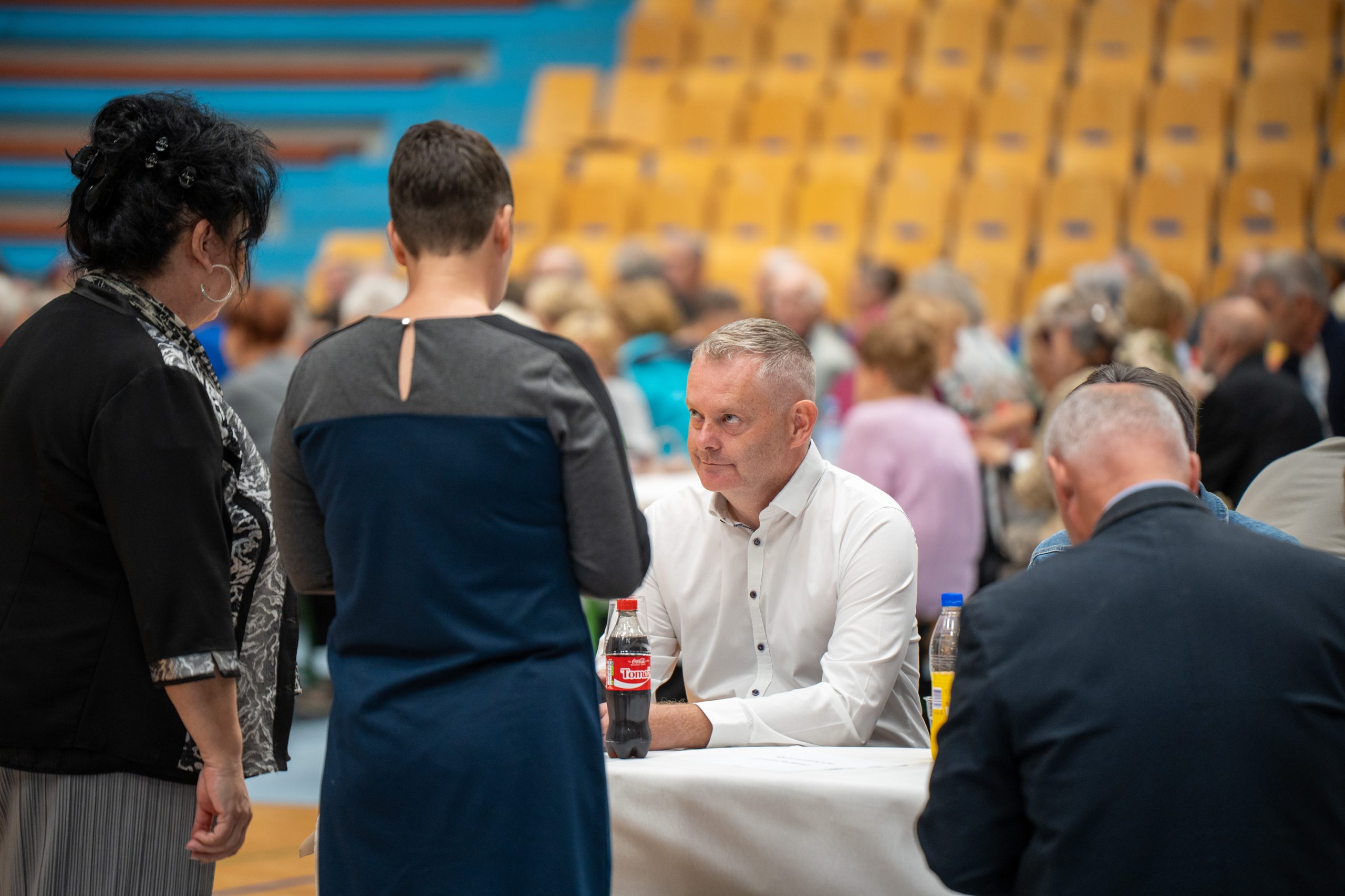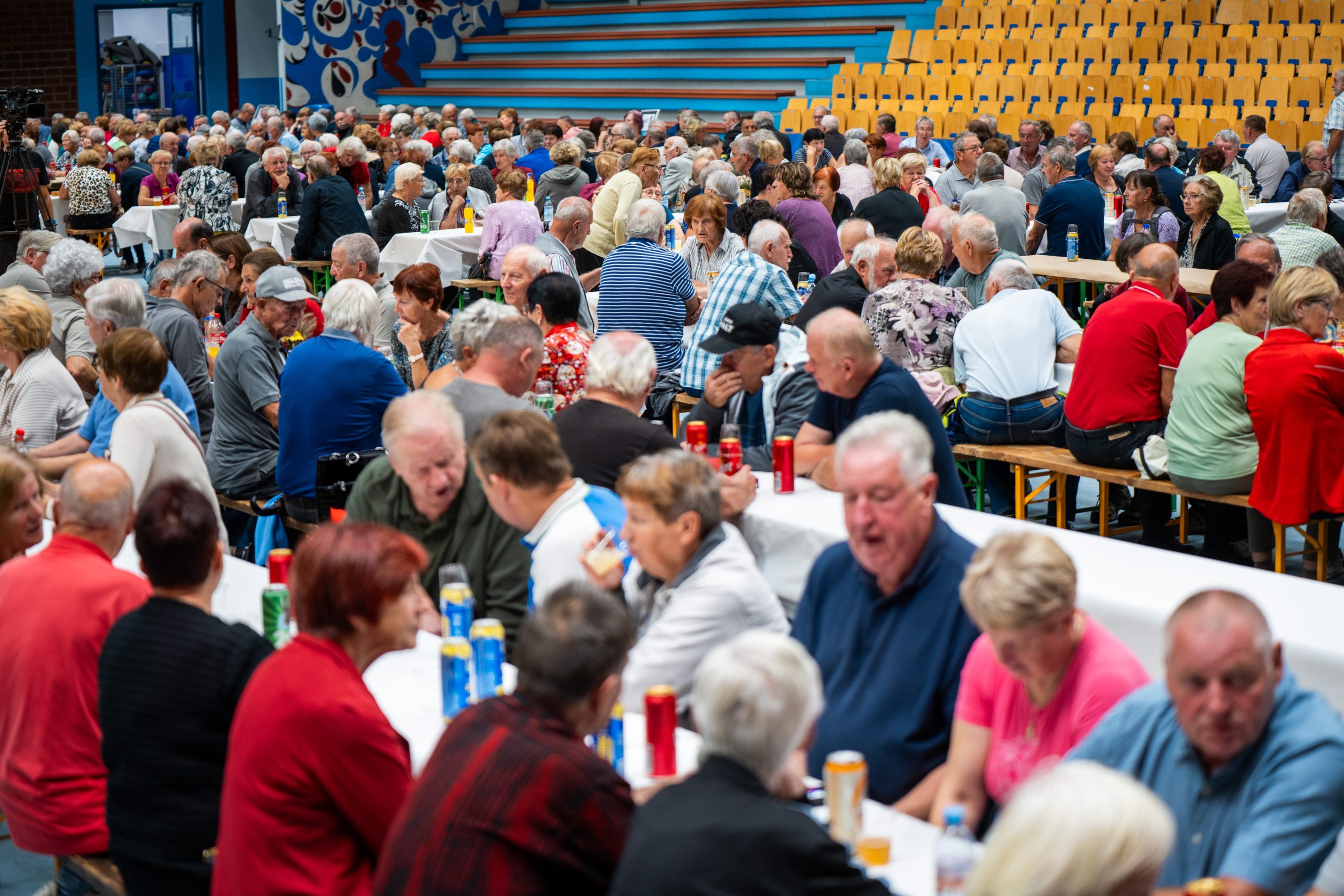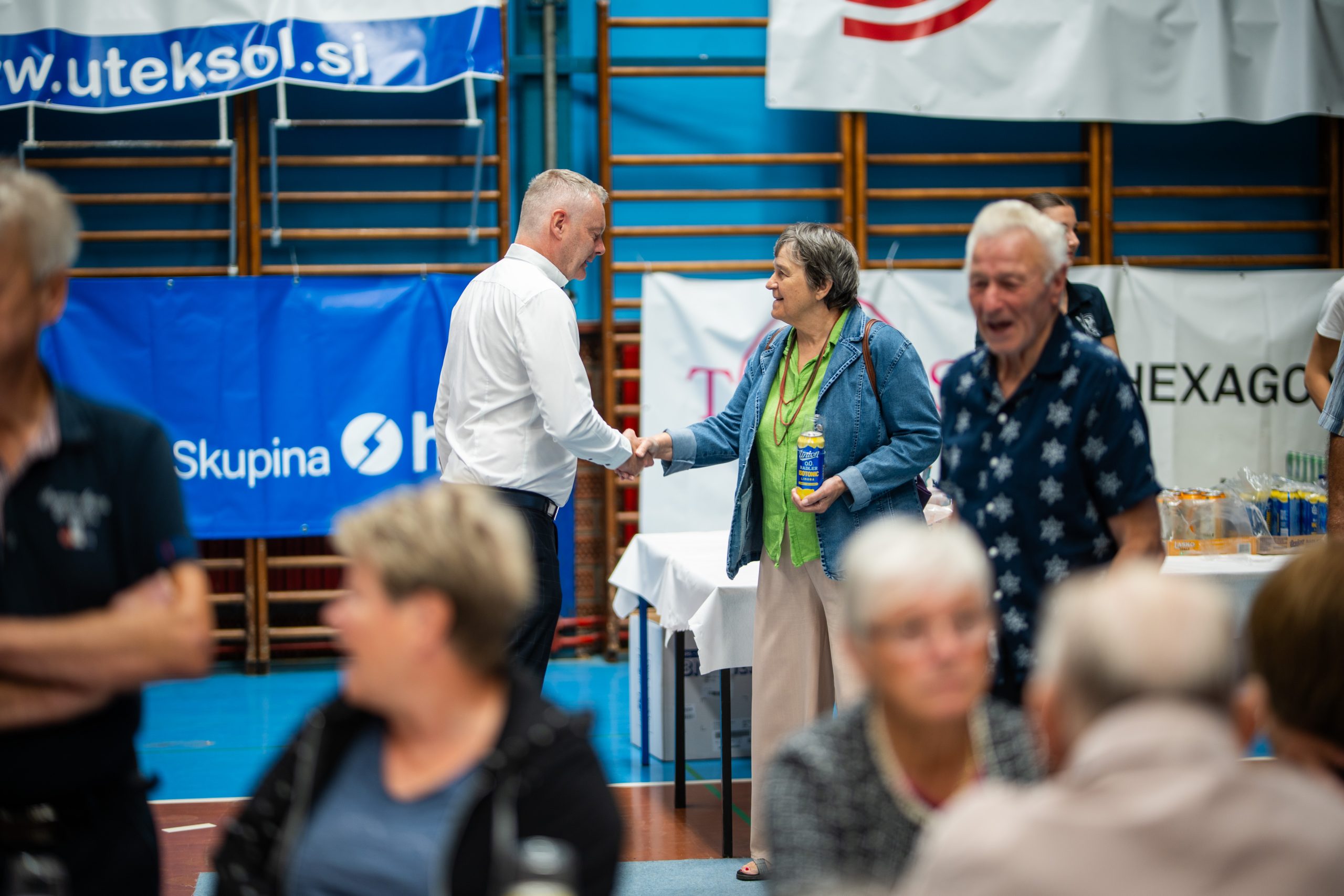 Župan Mestne občine Slovenj Gradec se je danes v športni dvorani Vinka Cajnka družil s približno 800 upokojenkami in upokojenci. Srečanja so se udeležili tudi predsednica Društva invalidov Slovenj Gradec, Ivica Vaukan, podžupanja Martina Šisernik in podžupan dr. Peter Pungartnik.