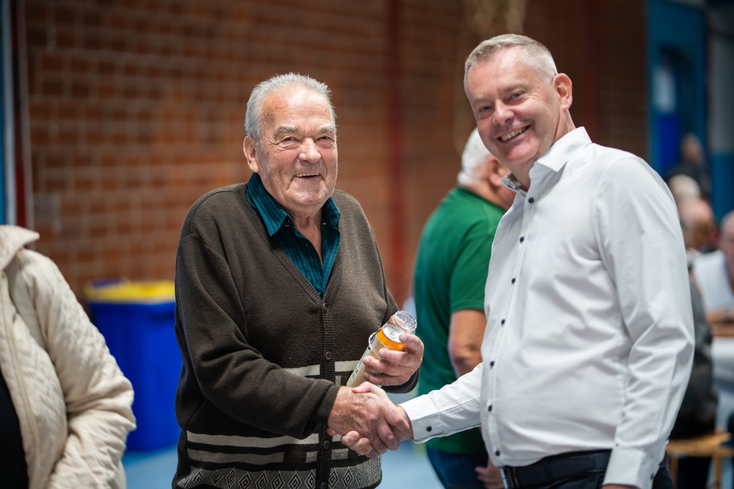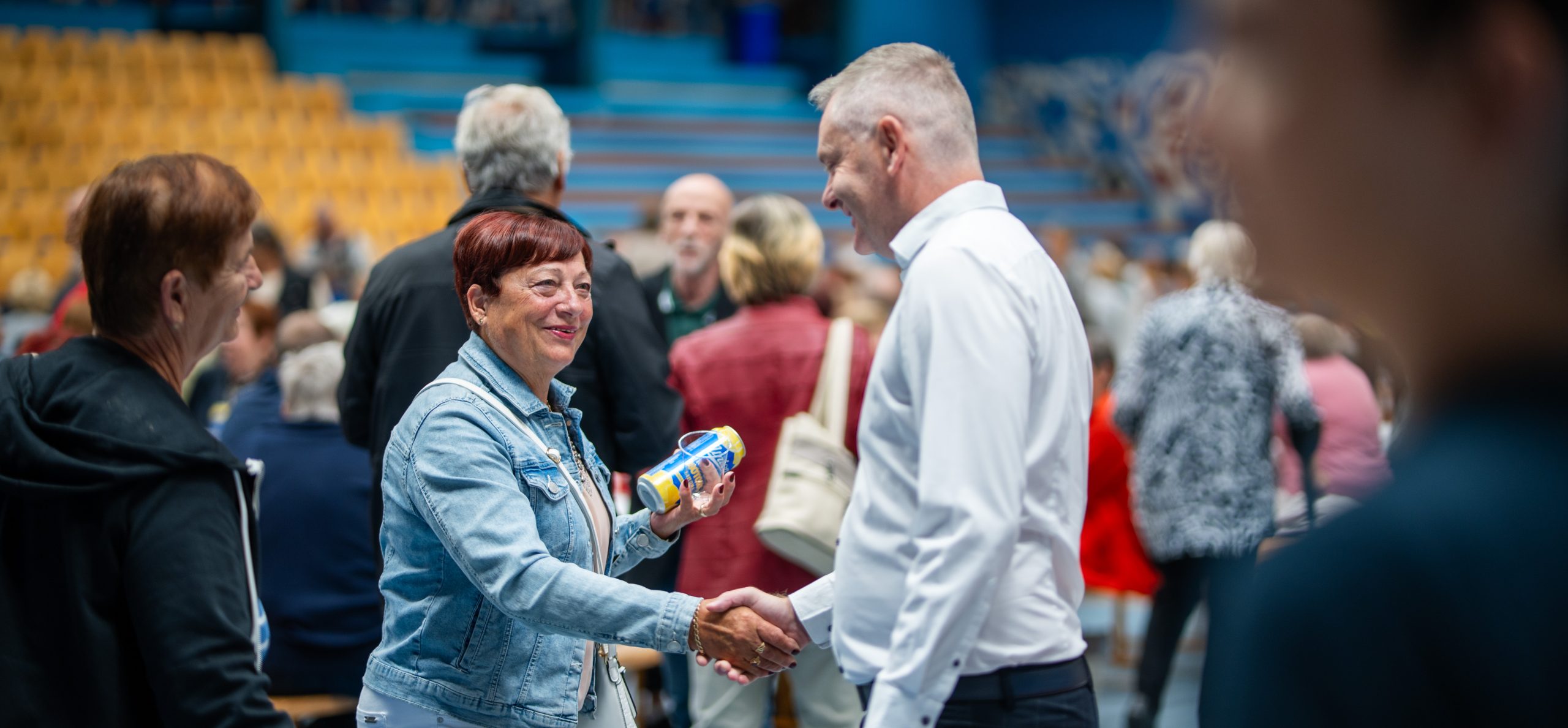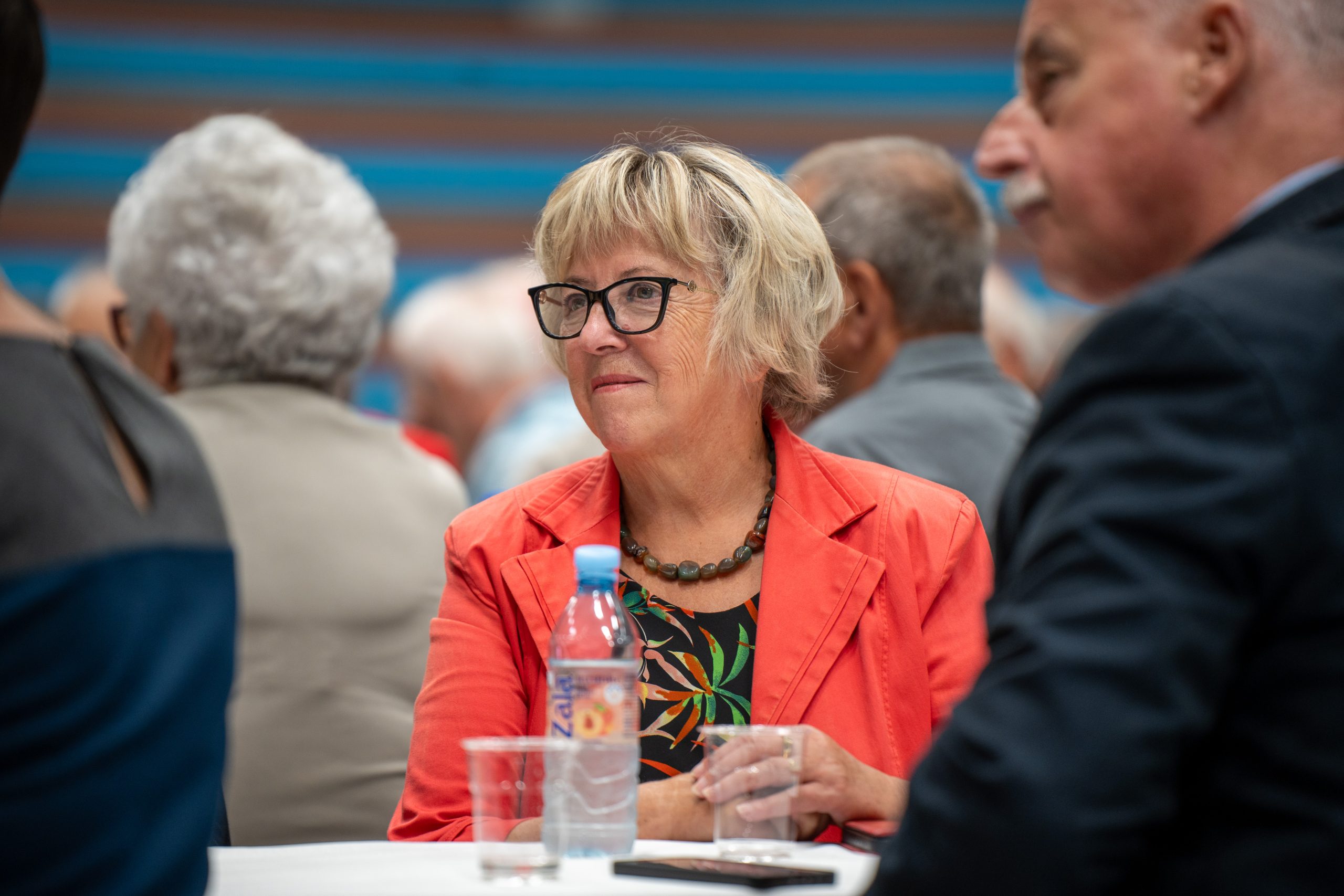 Župan Mestne občine Slovenj Gradec se je danes v športni dvorani Vinka Cajnka družil s približno 800 upokojenkami in upokojenci. Srečanja so se udeležili tudi predsednica Društva invalidov Slovenj Gradec, Ivica Vaukan, podžupanja Martina Šisernik in podžupan dr. Peter Pungartnik.