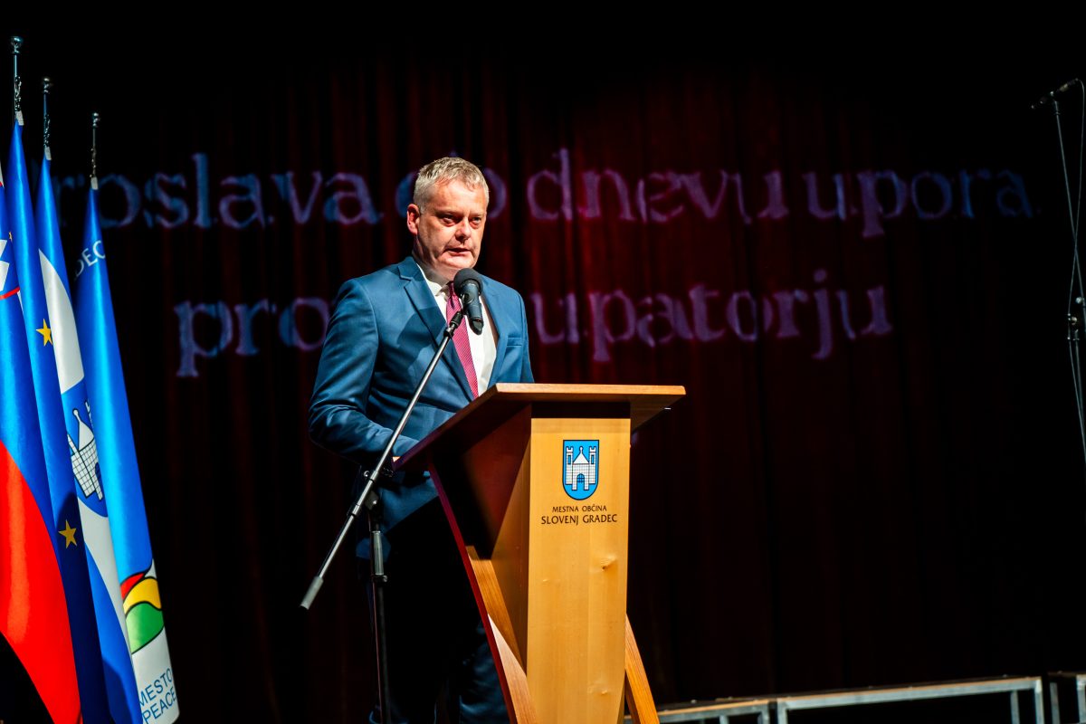 Po uvodnem pozdravu vseh prisotnih je poudaril, da imajo več razlogov za praznovanje. "Sam praznik Dan upora proti okupatorju in nato še spomin na konec druge svetovne vojne pred 80 leti. Ta dva praznika krasi tudi spomin na temeljne vrednote, kot so svoboda, pogum, tovarištvo, žrtvovanje, jezik in seveda tudi kultura," je povedal Lipič.