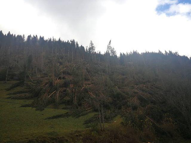 O vetrolomu v Koprivni, na območju Občine Črna na Koroškem, smo že poročali. Zdaj pa smo prejeli tudi nekaj fotografij, ki prikazujejo, kakšno opustošenje je za seboj pustil močan veter.