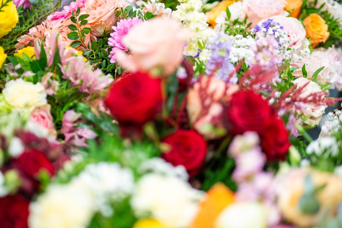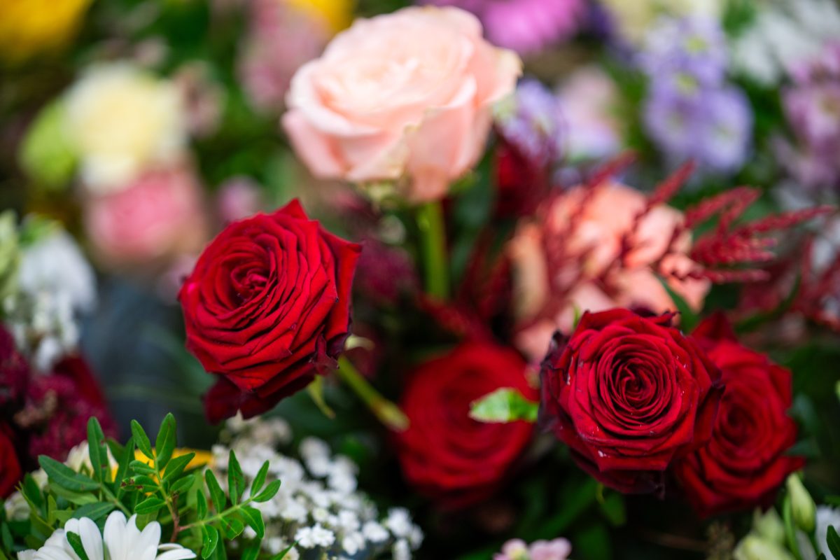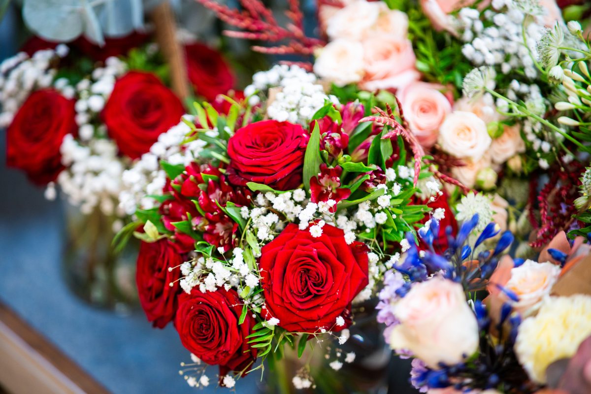 Za izdelavo šopkov si je 26-letni Žan Žolger pripravil kakšnih tisoč stebel cvetja in zelenja, prevladujejo vrtnice v različnih roza odtenkih, nekaj je tudi rdečih, pripravljene pa ima tudi druge vrste cvetja.