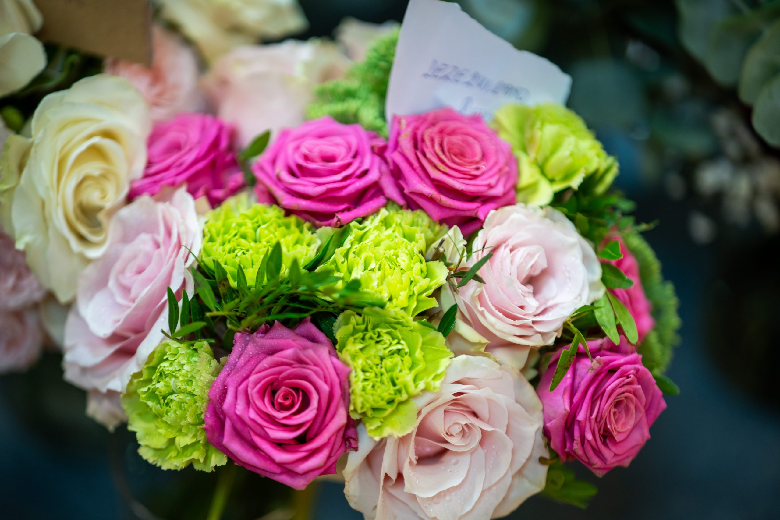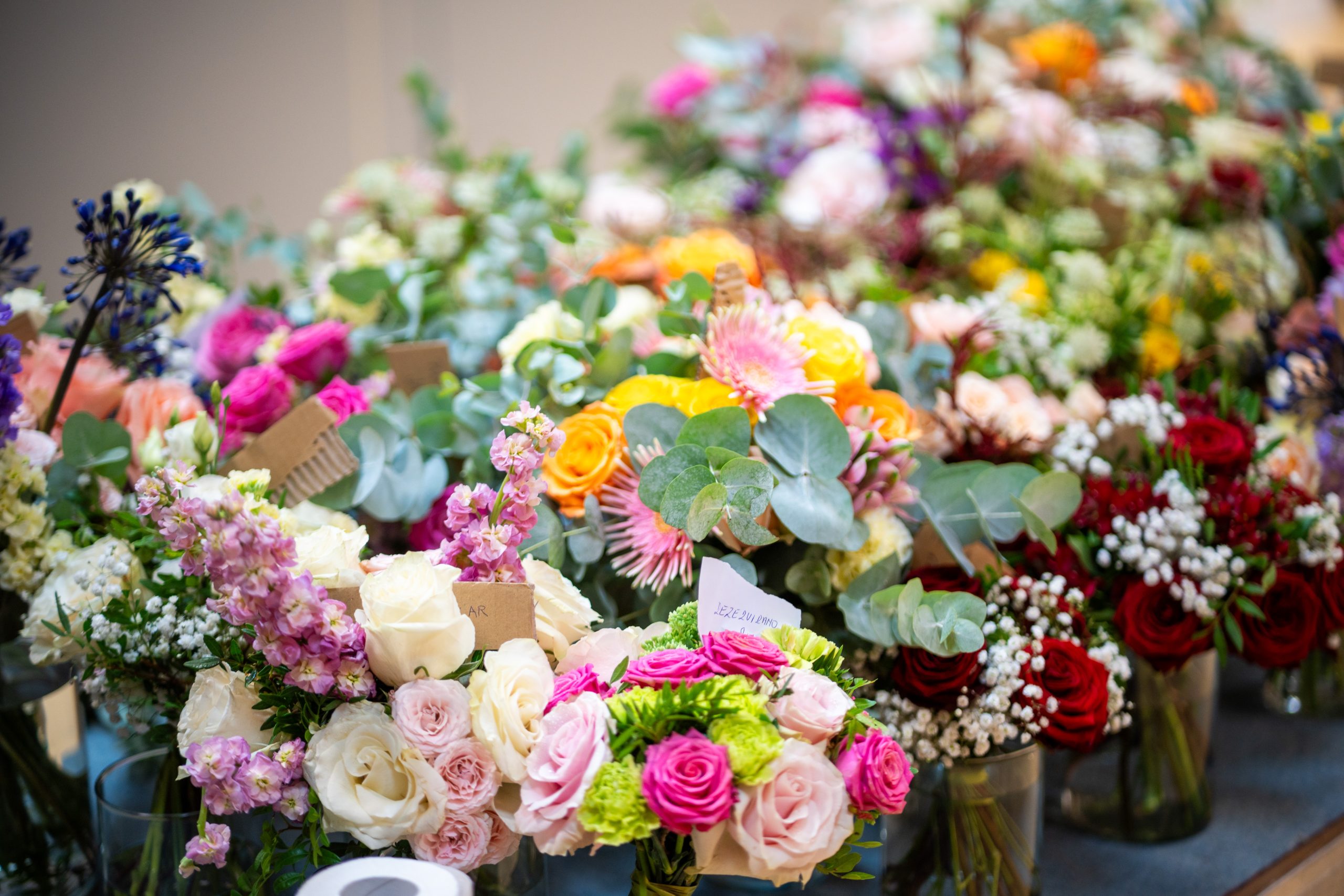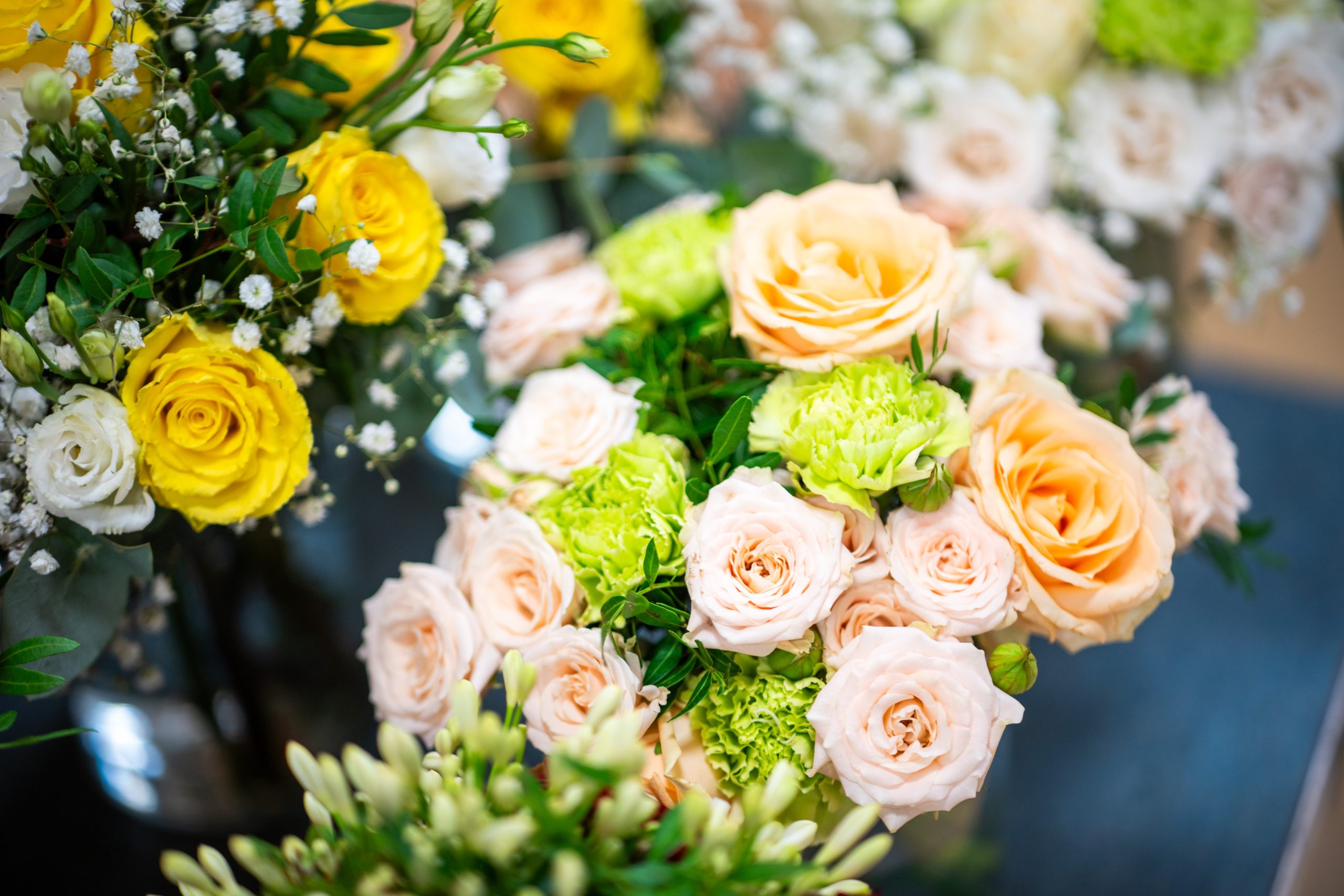 Za izdelavo šopkov si je 26-letni Žan Žolger pripravil kakšnih tisoč stebel cvetja in zelenja, prevladujejo vrtnice v različnih roza odtenkih, nekaj je tudi rdečih, pripravljene pa ima tudi druge vrste cvetja.