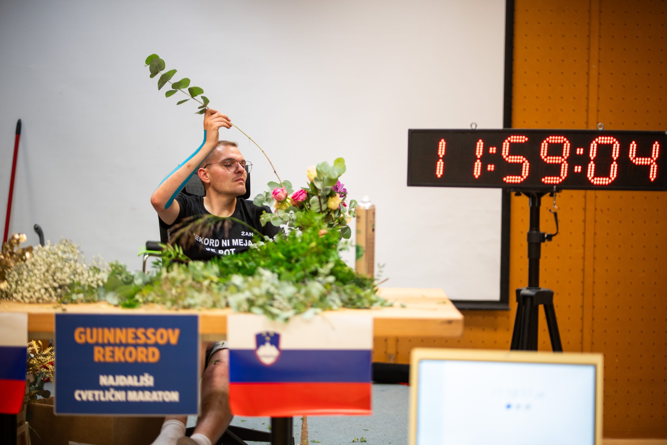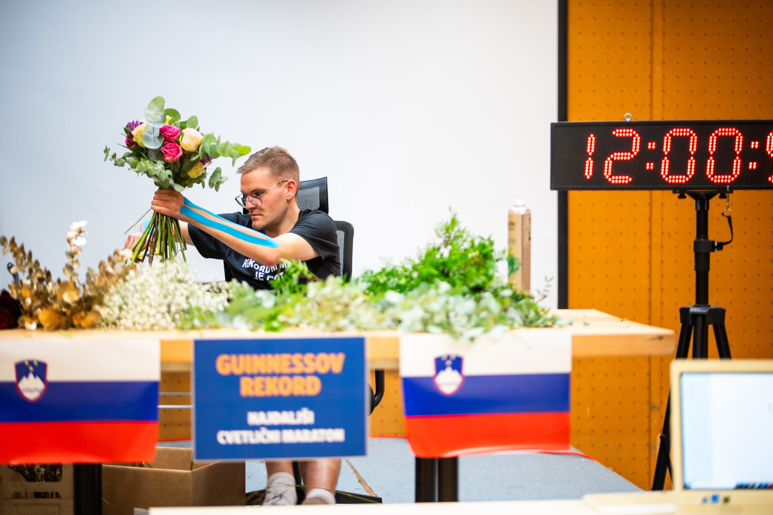 Po 12 urah je Žan še vedno poln motivacije in energije. Izdelal je že 75 šopkov, njegov cilj je cca 180 šopkov. Nekatere bo izdelal tudi po po glasbeni inspiraciji, zadnji šopek pa bo poseben, saj bo izdelan ob glasbeni spremljavi pesmi Final Countdown. Ta šopek bo na koncu namenjen tudi licitaciji.