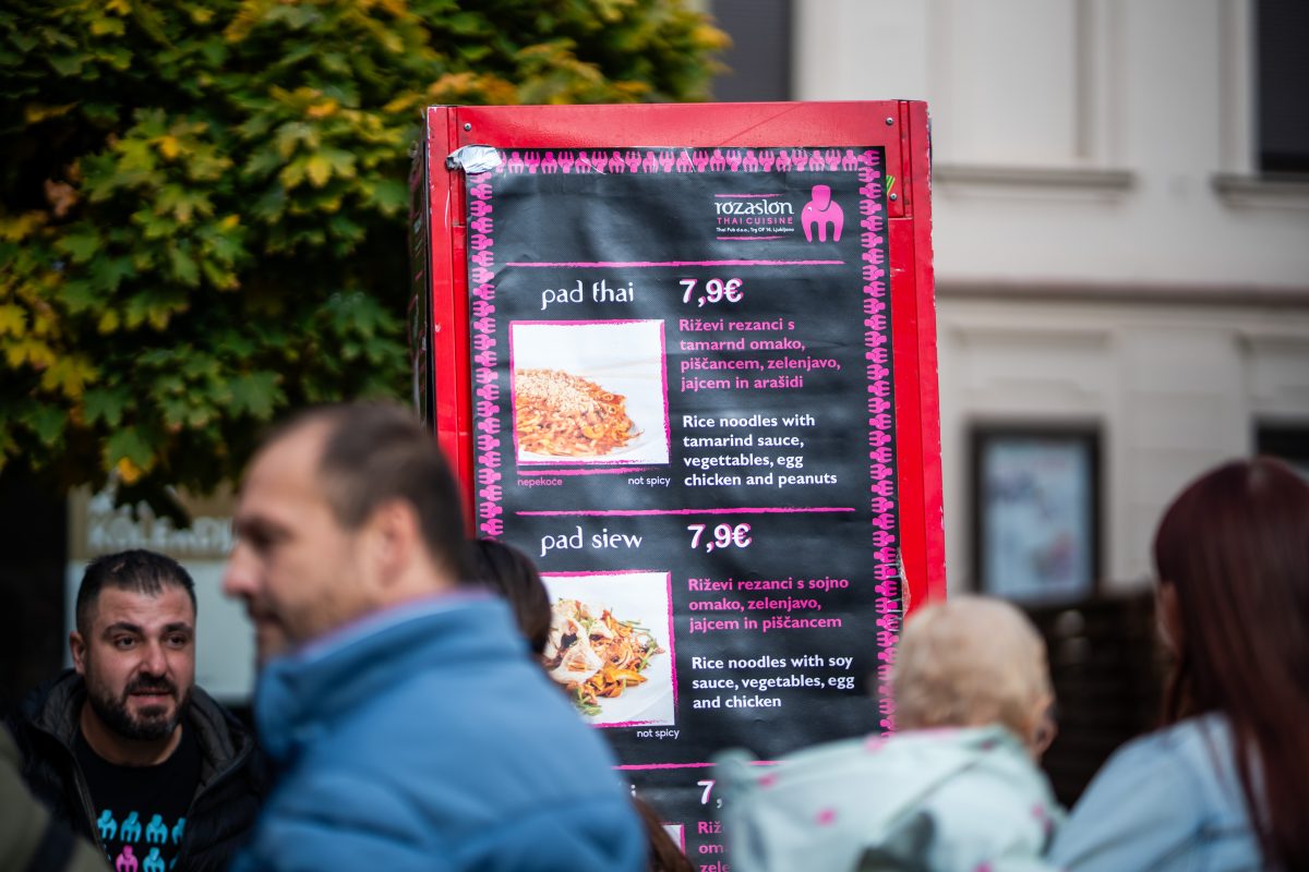 Obiskovalci so se potopili v barvit svet okusov. Na stojnicah so se vrstile tako klasične slovenske jedi kot tudi mednarodne specialitete – od grških gyrosov, indijskih curryjev, kitajskih rezancev, pa vse do slovenskih štrukljev, žlikrofov in tradicionalnega šmorna.