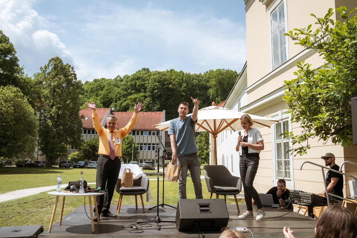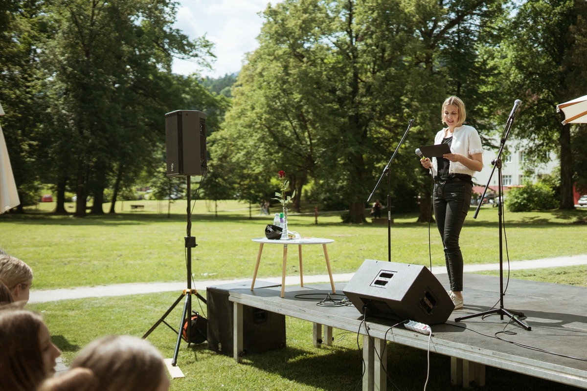 Zaključek sezone so praznovali na grajskem dvorišču Koroške osrednje knjižnice. Prireditev sta z izjemnim nastopom popestrila dr. Igor Saksida in Rok Terkaj – Trkaj, ki sta predstavila uspešnico Mladinske knjige Kla kla klasika (2017) v sveži, raperski preobleki.