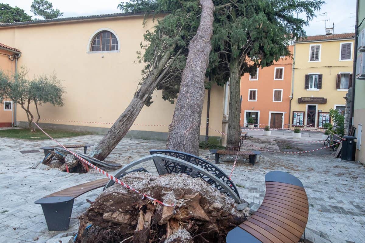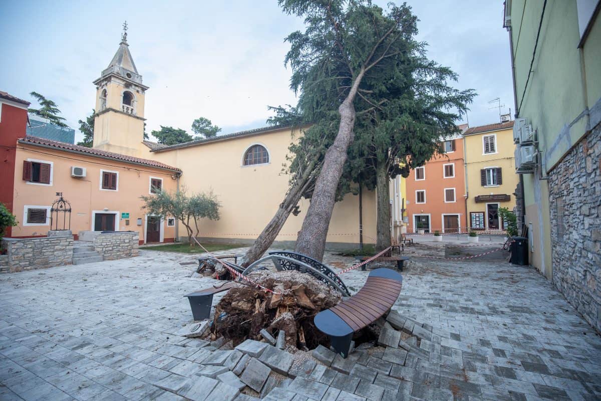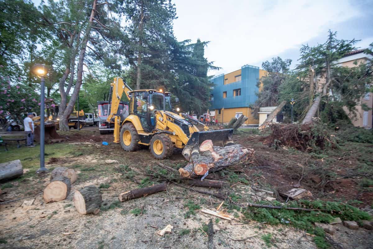 Po njegovih besedah so gasilci tako v kampu Sirena kot v središču mesta odstranili vsa tista drevesa, ki so predstavljala nevarnost za ljudi. V mestu so drevesa padla na tri stavbe in na manjšo cerkev iz 15. stoletja, ki je del kulturne dediščine. Pri sanaciji pomagajo tudi zasebna podjetja s svojo gradbeno mehanizacijo.