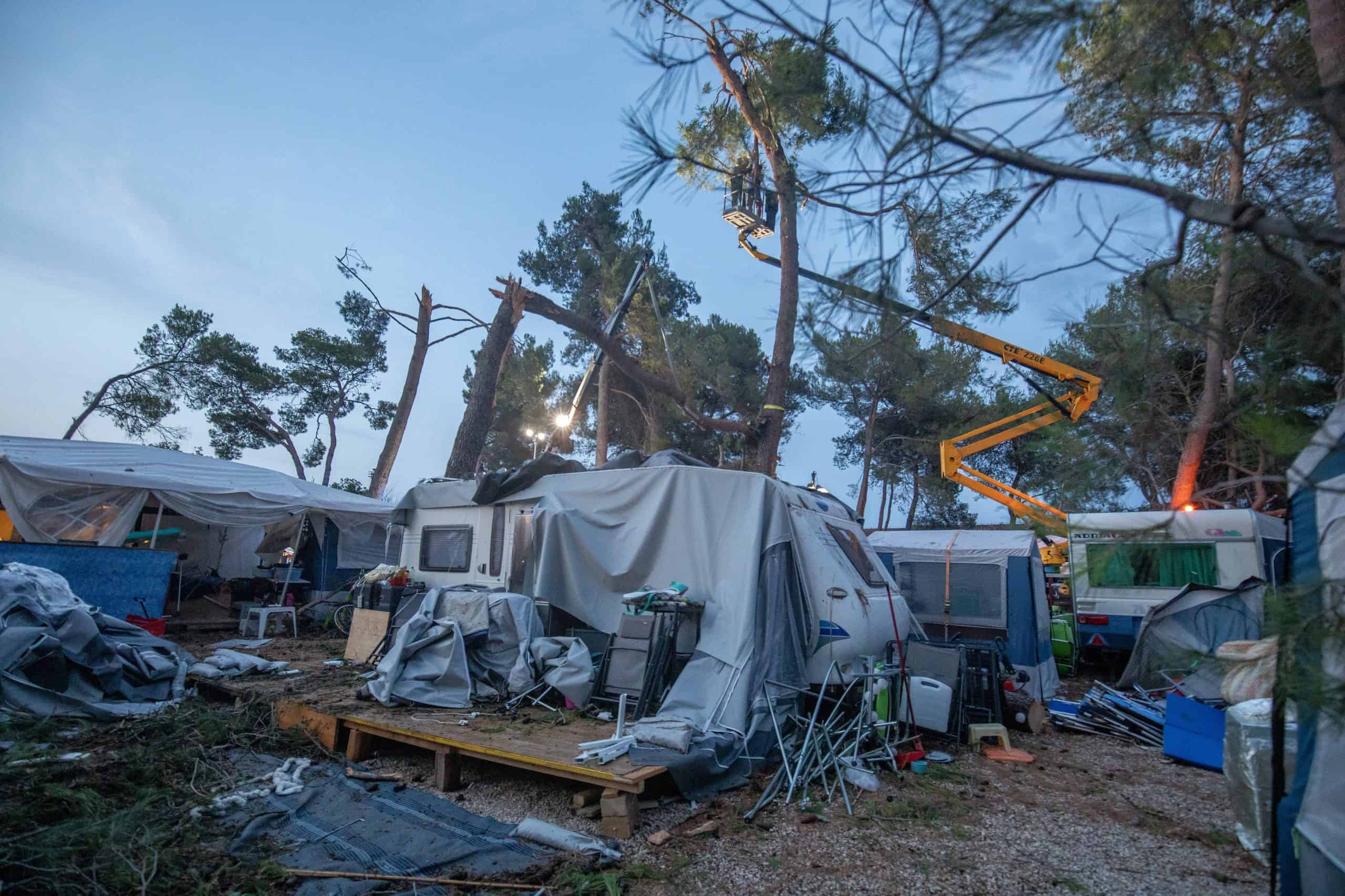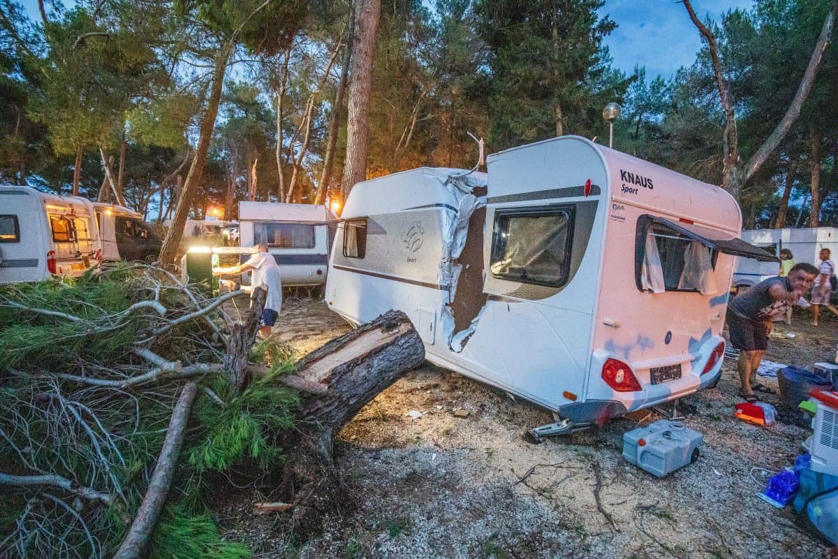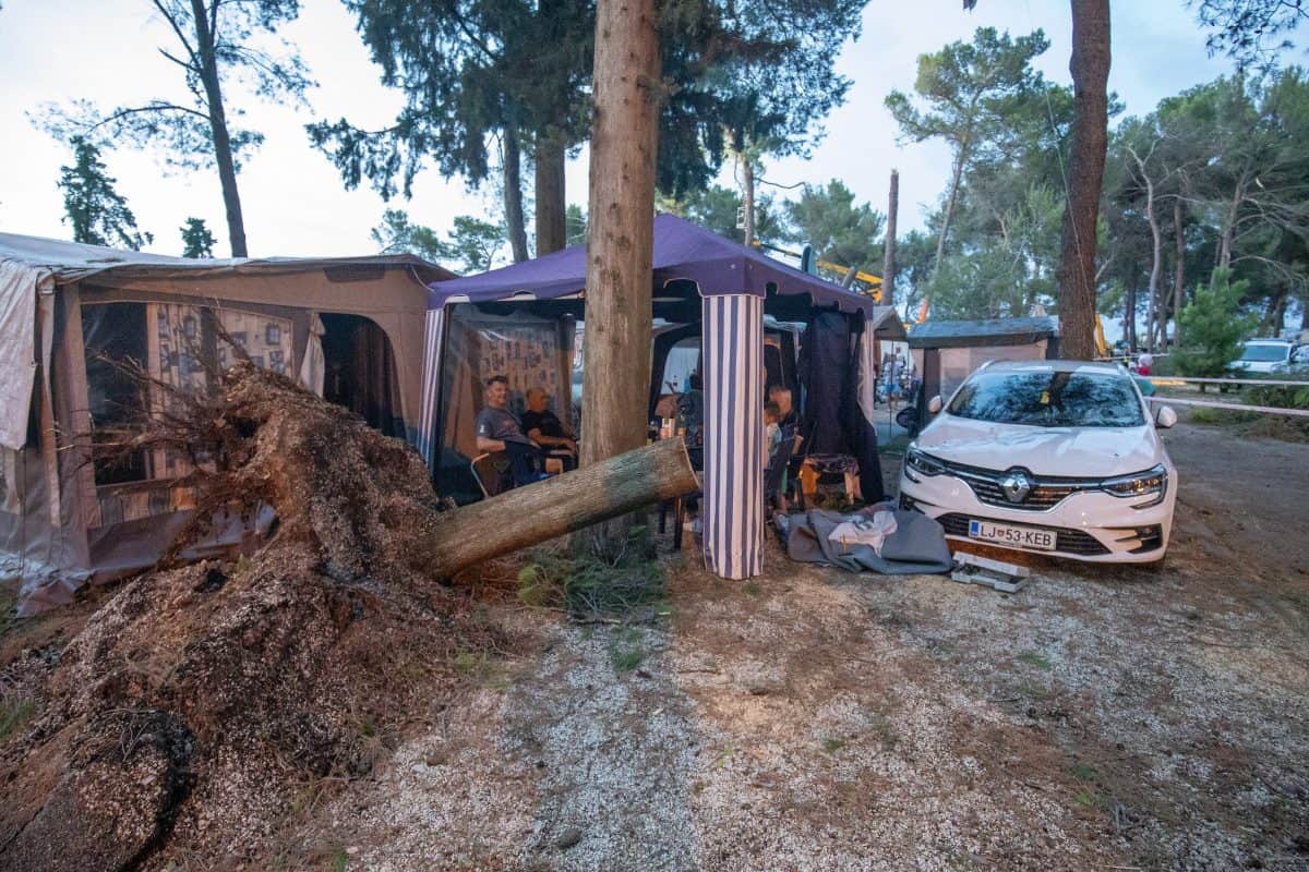 Kot je dejal, je močan veter v kampu izruval na desetine dreves, večinoma borovcev, ki so padla na počitniške prikolice, šotore in avtomobile ter povzročila precejšnjo škodo. Na terenu je trenutno 150 gasilcev, policistov in pripadnikov drugih pristojnih služb, razmere pa so pod nadzorom, je dodal.