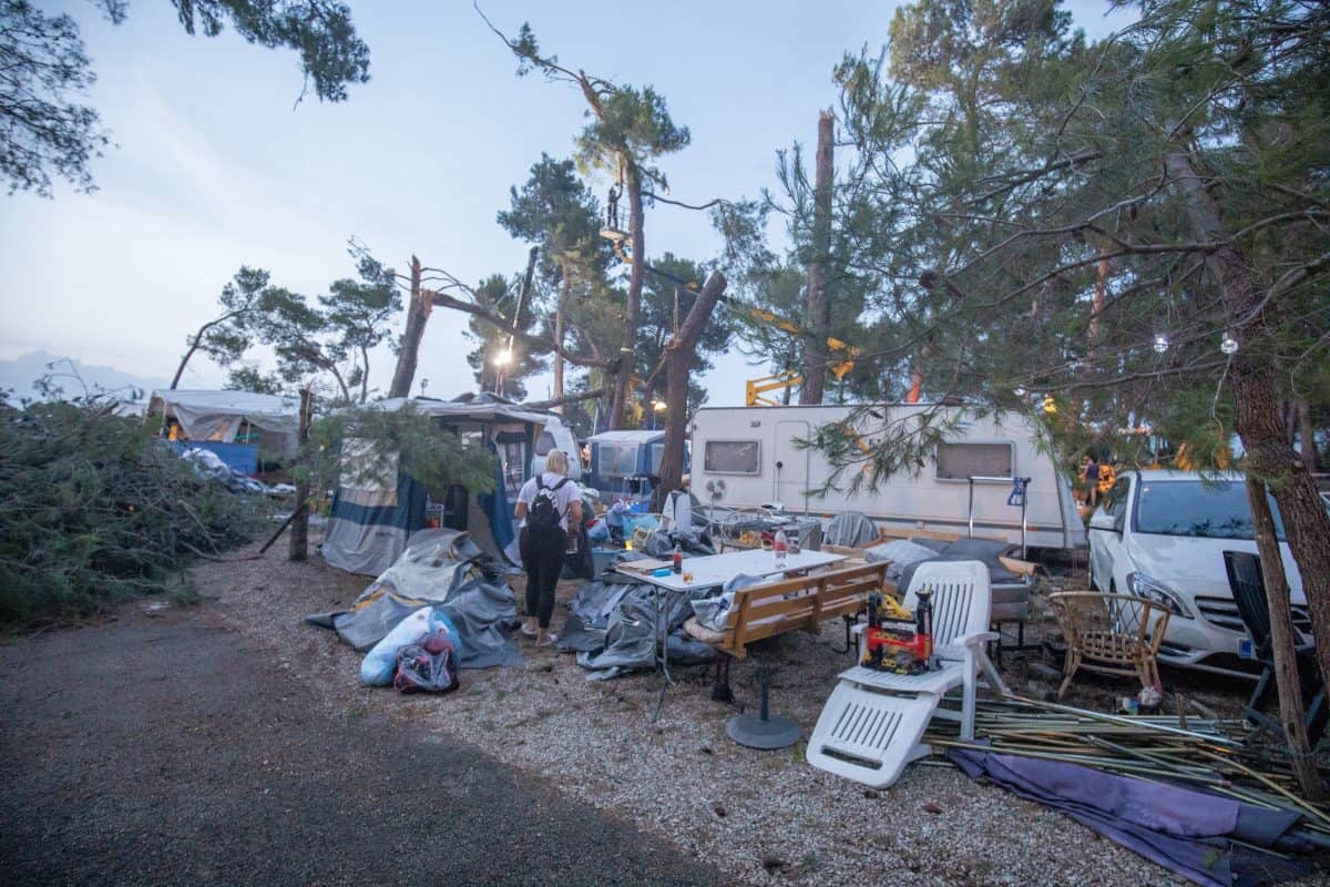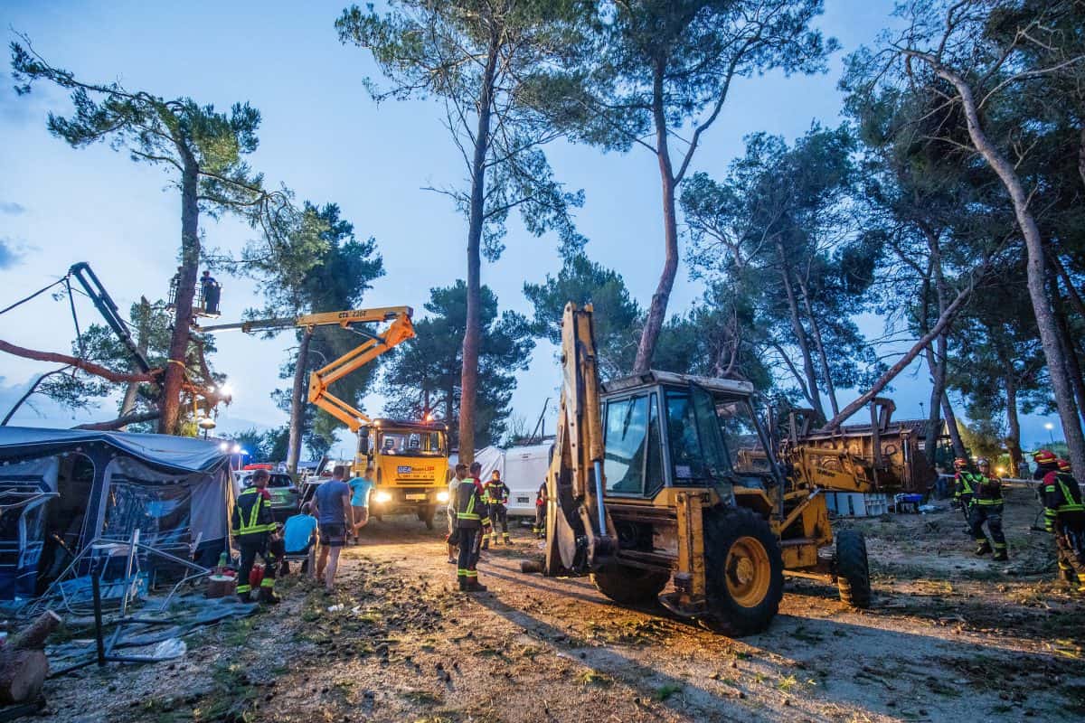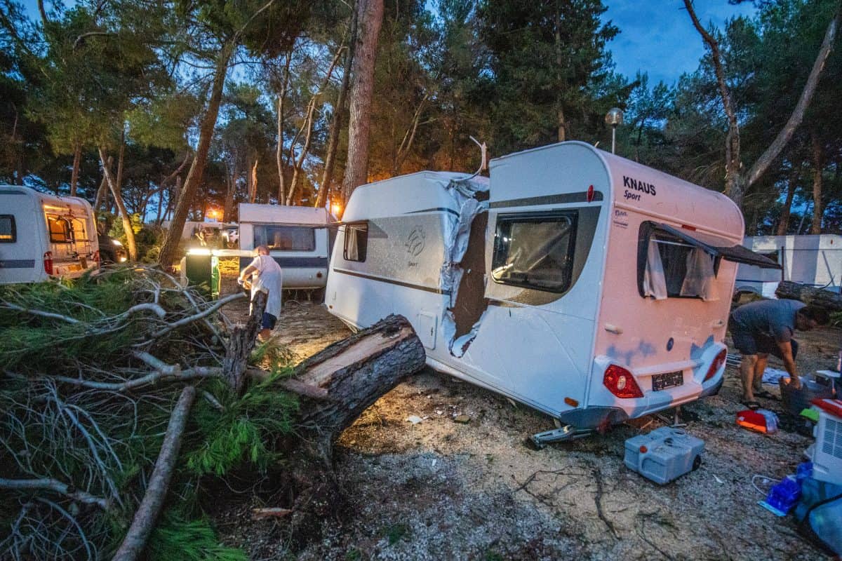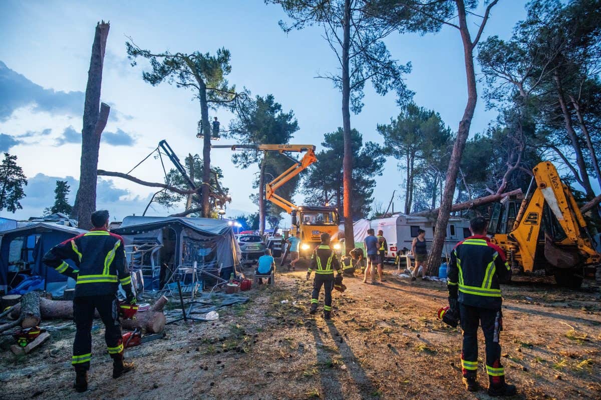 Kot je dejal, je močan veter v kampu izruval na desetine dreves, večinoma borovcev, ki so padla na počitniške prikolice, šotore in avtomobile ter povzročila precejšnjo škodo. Na terenu je trenutno 150 gasilcev, policistov in pripadnikov drugih pristojnih služb, razmere pa so pod nadzorom, je dodal.