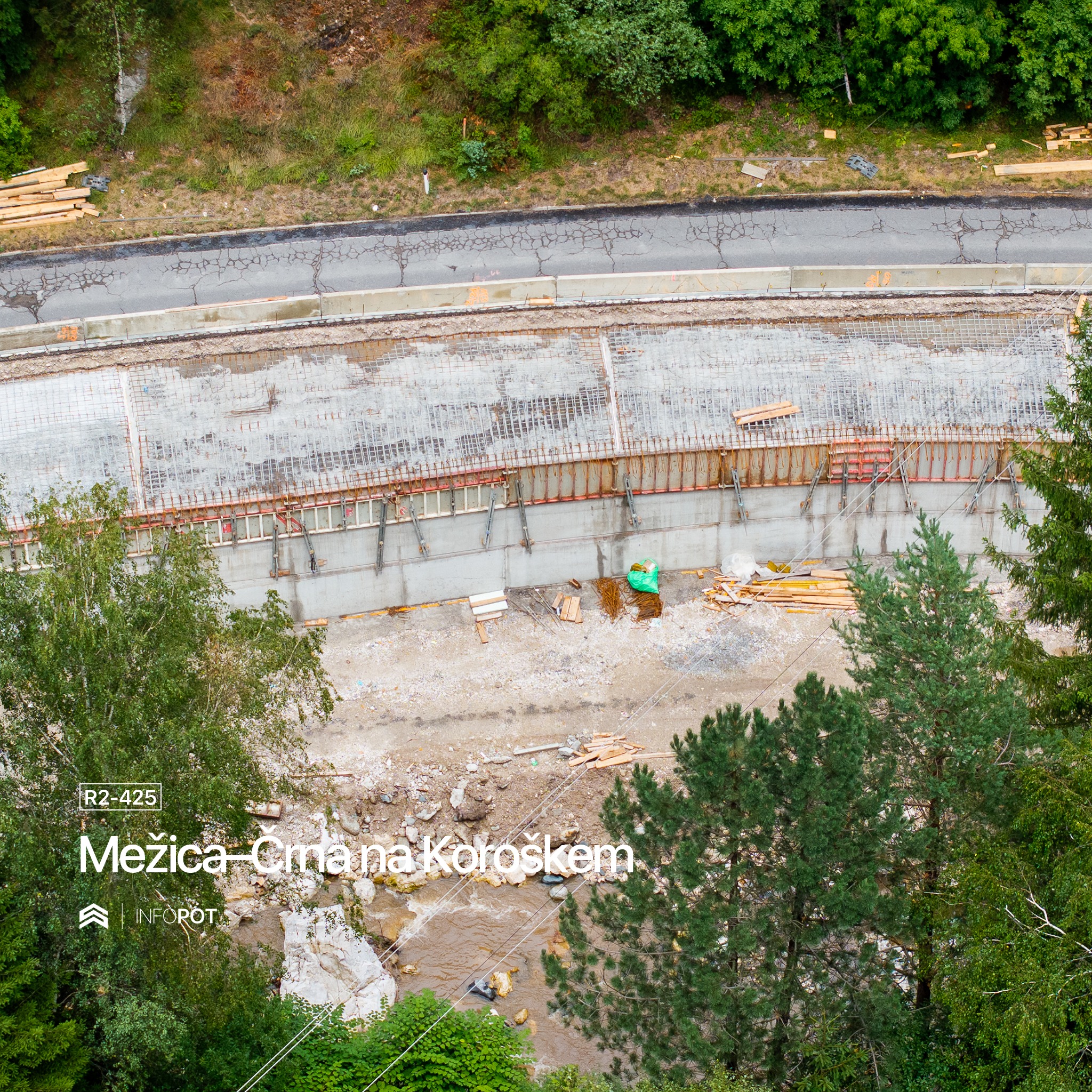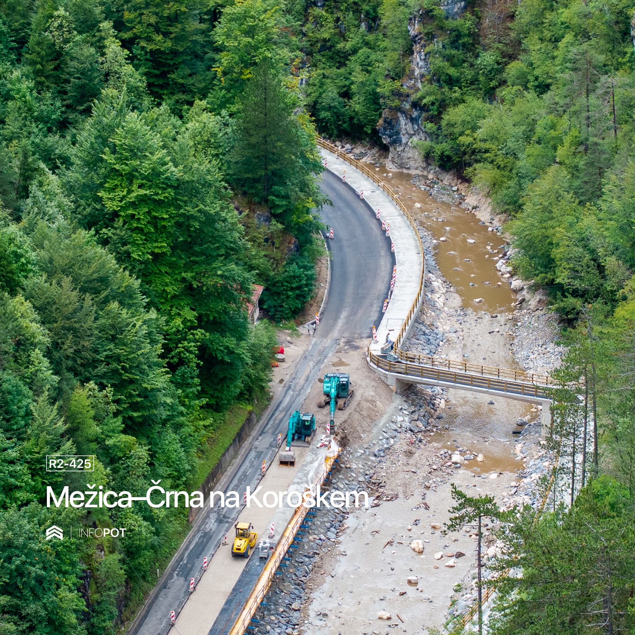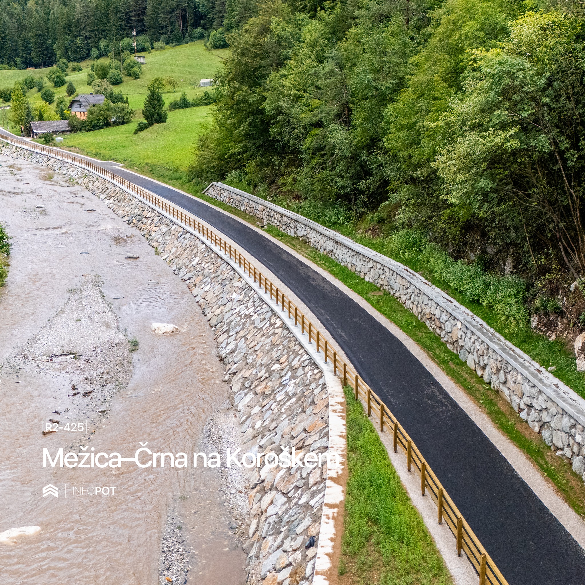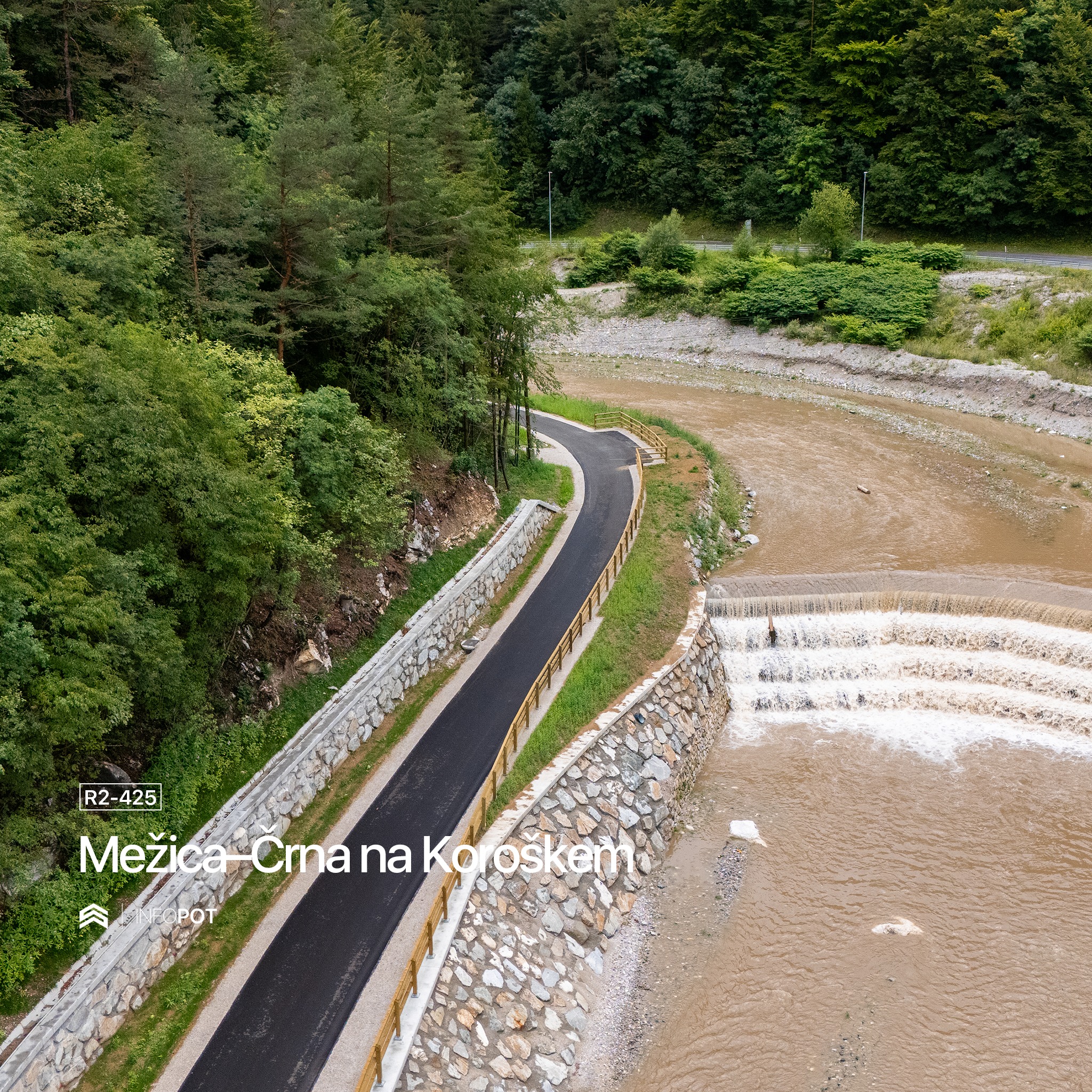 Projekt obsega rekonstrukcijo 5.850 metrov dolgega cestnega odseka, gradnjo nove kolesarske poti, ki bo večkrat prečkala reko Mežo, ter številne komunalne in vodnogospodarske ureditve. V okviru gradnje so bile že postavljene štiri brvi za kolesarje in pešce, zgrajeni oporni zidovi, zaščite brežin, zložbe ter ureditve reke Meže.