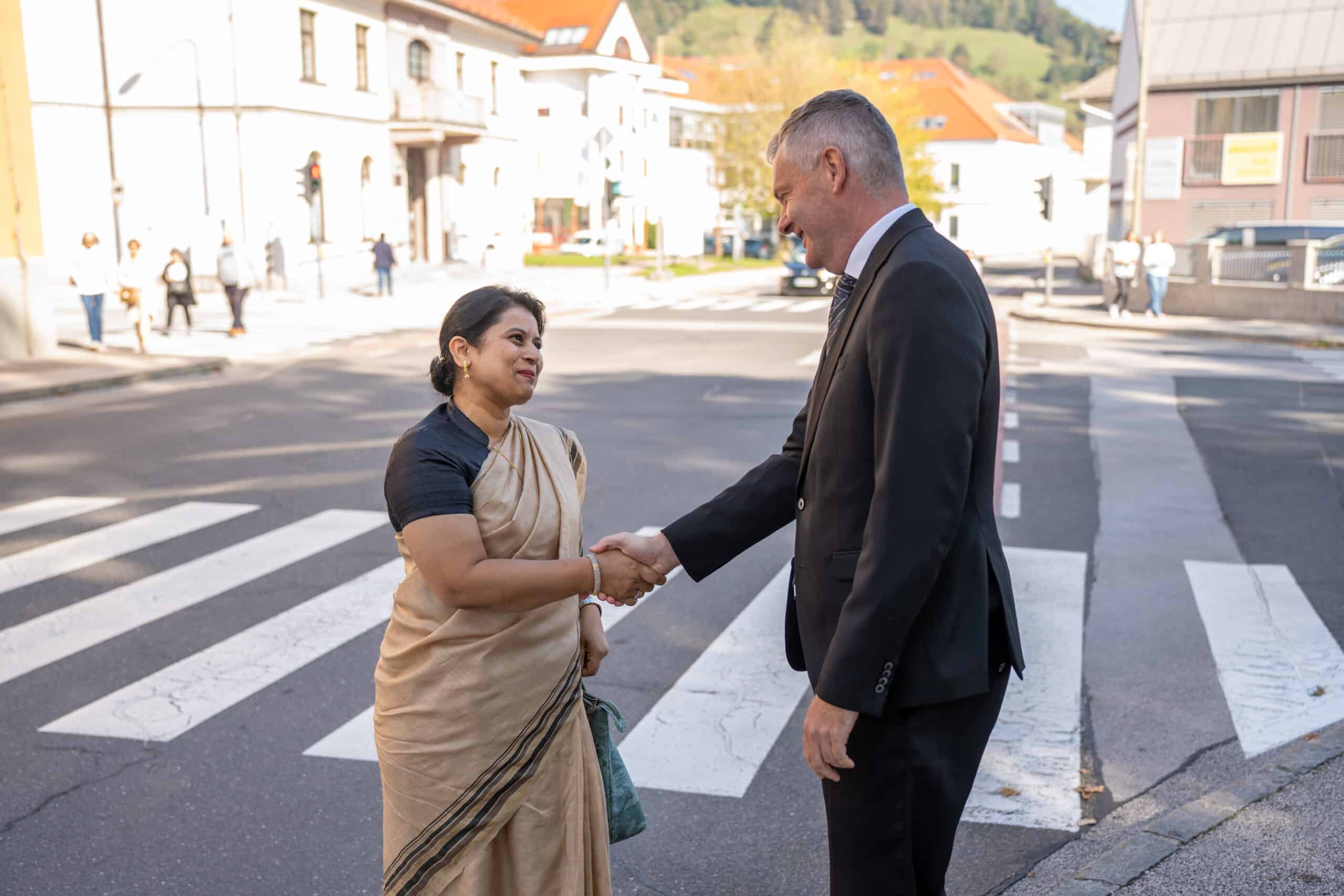 Veleposlanica Indije v Sloveniji Namrata S. Kumar je med obiskom v Slovenj Gradcu povedala, da je mesto Slovenj Gradec zelo posebno za indijsko veleposlaništvo. »Povezuje nas ideja miru,« je poudarila Namrata S. Kumar, ki se je zahvalila županu Tilnu Kluglerju za širjenje sporočil o miru v lokalni skupnosti.