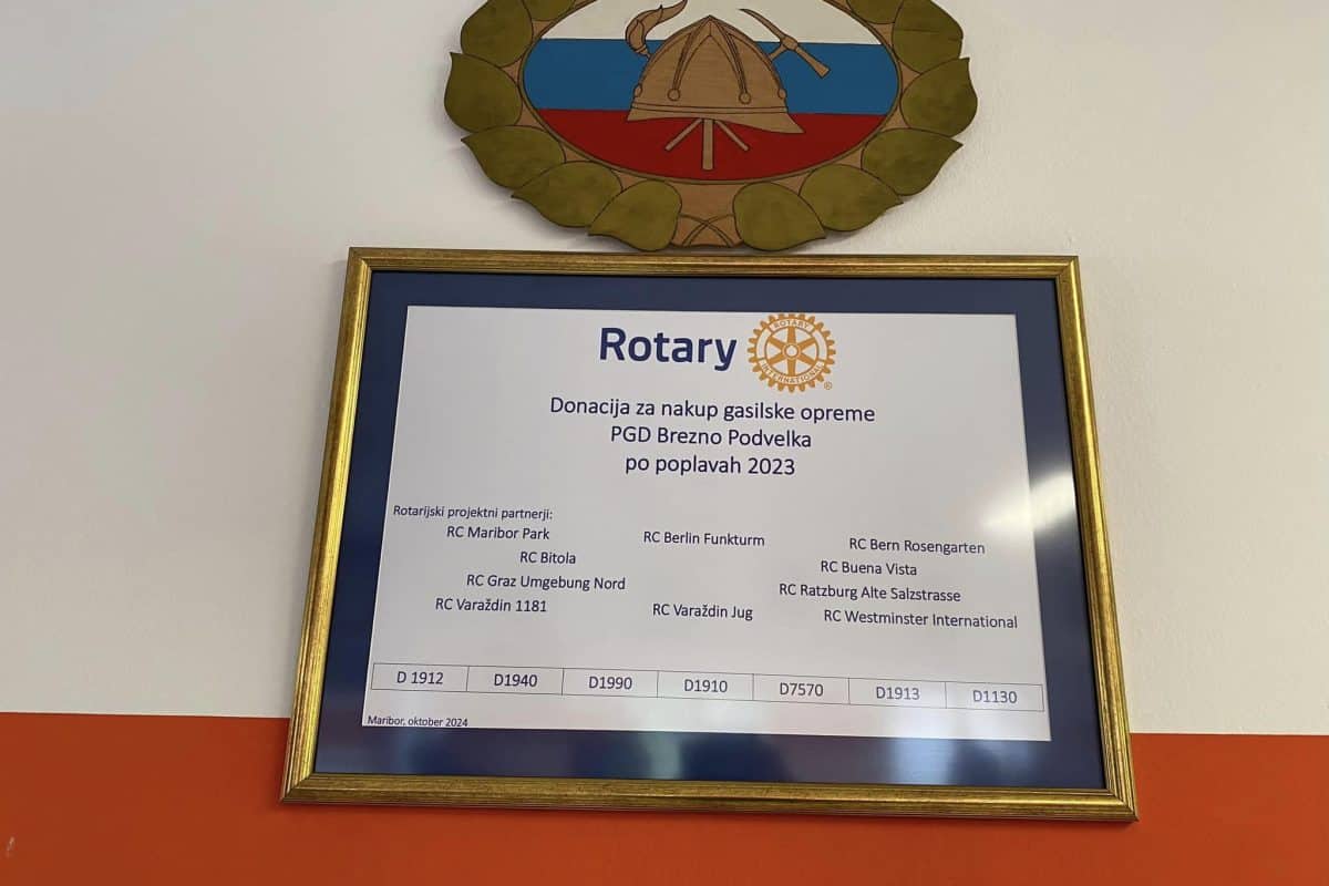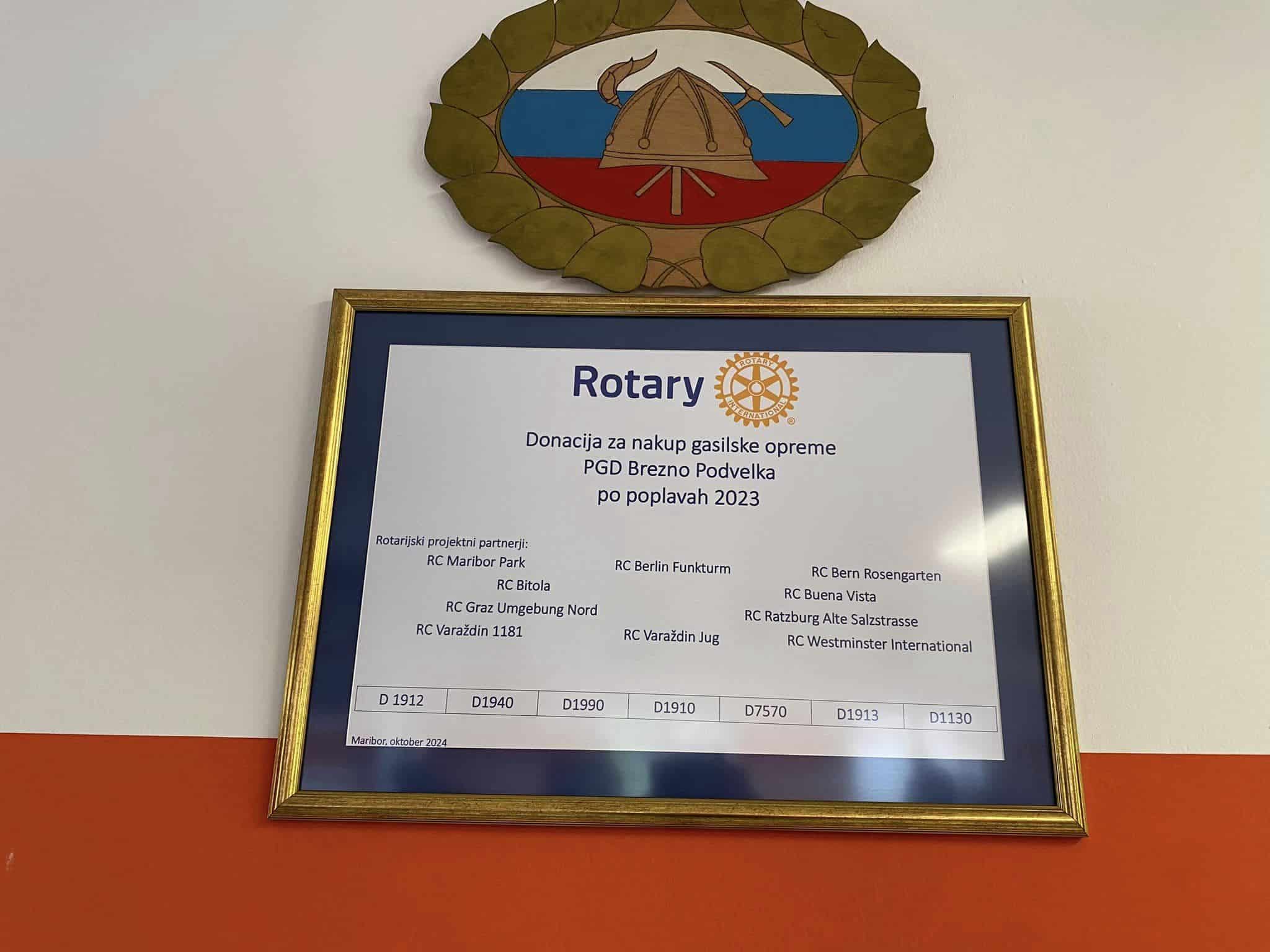 Rotary International je velikodušno doniral 8.000 € za nakup nujno potrebne gasilske opreme za gasilska društva. S pomočjo te donacije so društva pridobila nove gasilske maske in gasilske sesalce, ki bodo v prihodnje služili pri prečrpavanju vode iz objektov v primeru poplav.