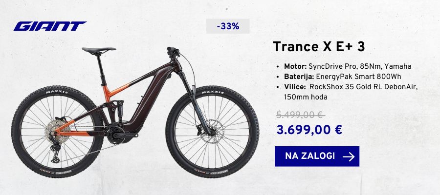 Giant Trance E+ električna kolesa postavljajo nove standarde v svetu gorskega kolesarjenja. Navdušujejo z napredno tehnologijo, izjemno zmogljivostjo in vrhunskim udobjem, kar jih naredi popolno izbiro za vse, ki želijo brezskrbno premagovati tudi najzahtevnejše koroške hribe. Z električno pomočjo pri poganjanju omogočajo daljše ture z manj napora ter več užitka na vsaki poti.