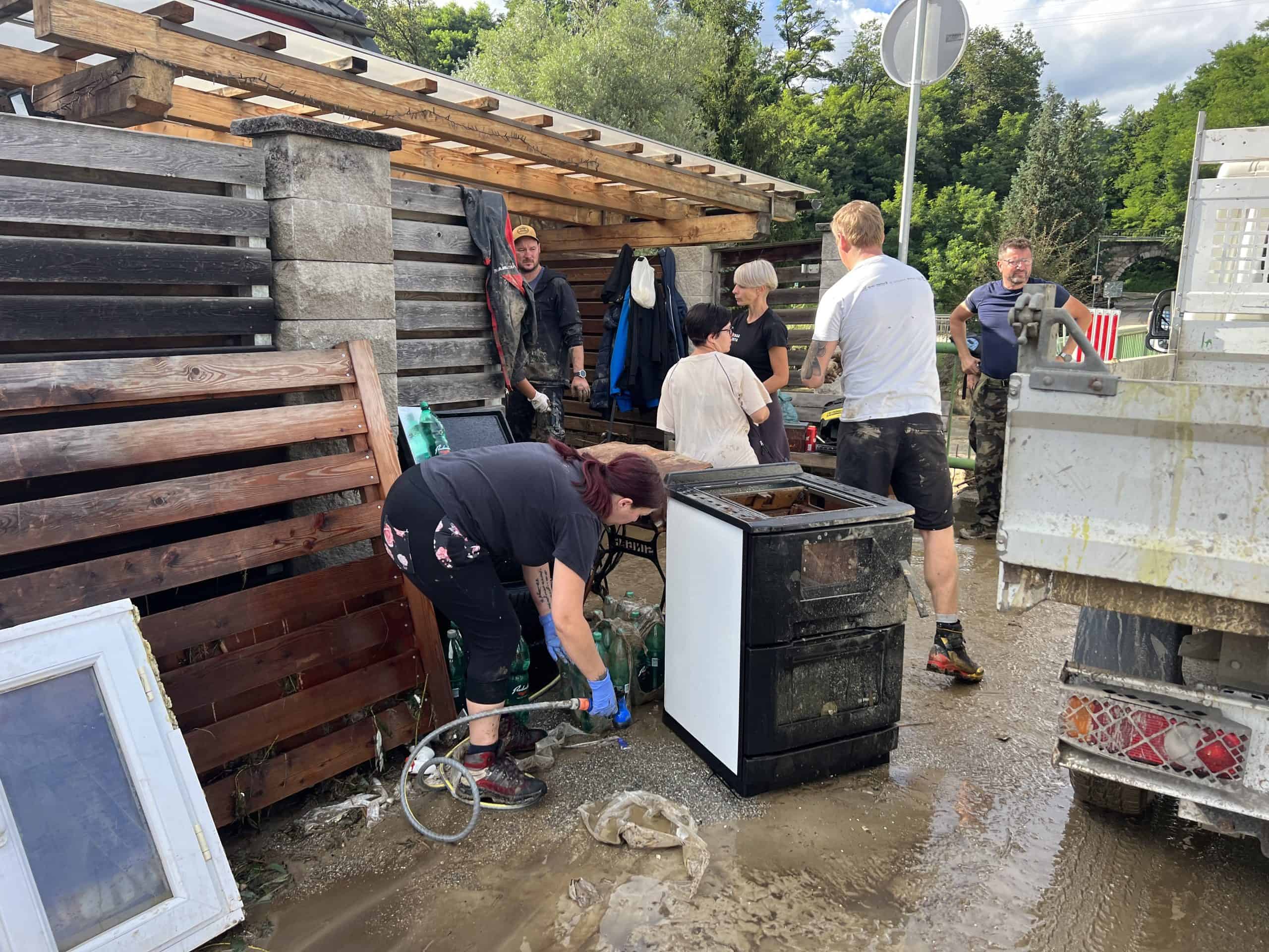 Lokali, kavarne, pisarne, hiše, trgovine, kleti, ... vse je bilo pod vodo. Praktično na vsakem koncu je ogromno prostovoljcev, ki so prišli na pomoč ljudem, ki jo potrebujejo. Lepo je bilo videti, kljub grozi, ki nas je doletela, pozitivno energijo ljudi, ki so se trudili in čistili blato in odstranjevali uničeno opremo iz hiš. "Spali nismo že dva dni, pa ne zaradi izmučenosti, pač pa zaradi straha, da se vse skupaj ponovi, ves čas smo gledali skozi okno, če je voda zopet prestopila bregove in nam bo zopet zalila hišo," je dejal Jan, ki se je na hitro vrnil iz dopusta, da je prišel reševati svojo hišo.