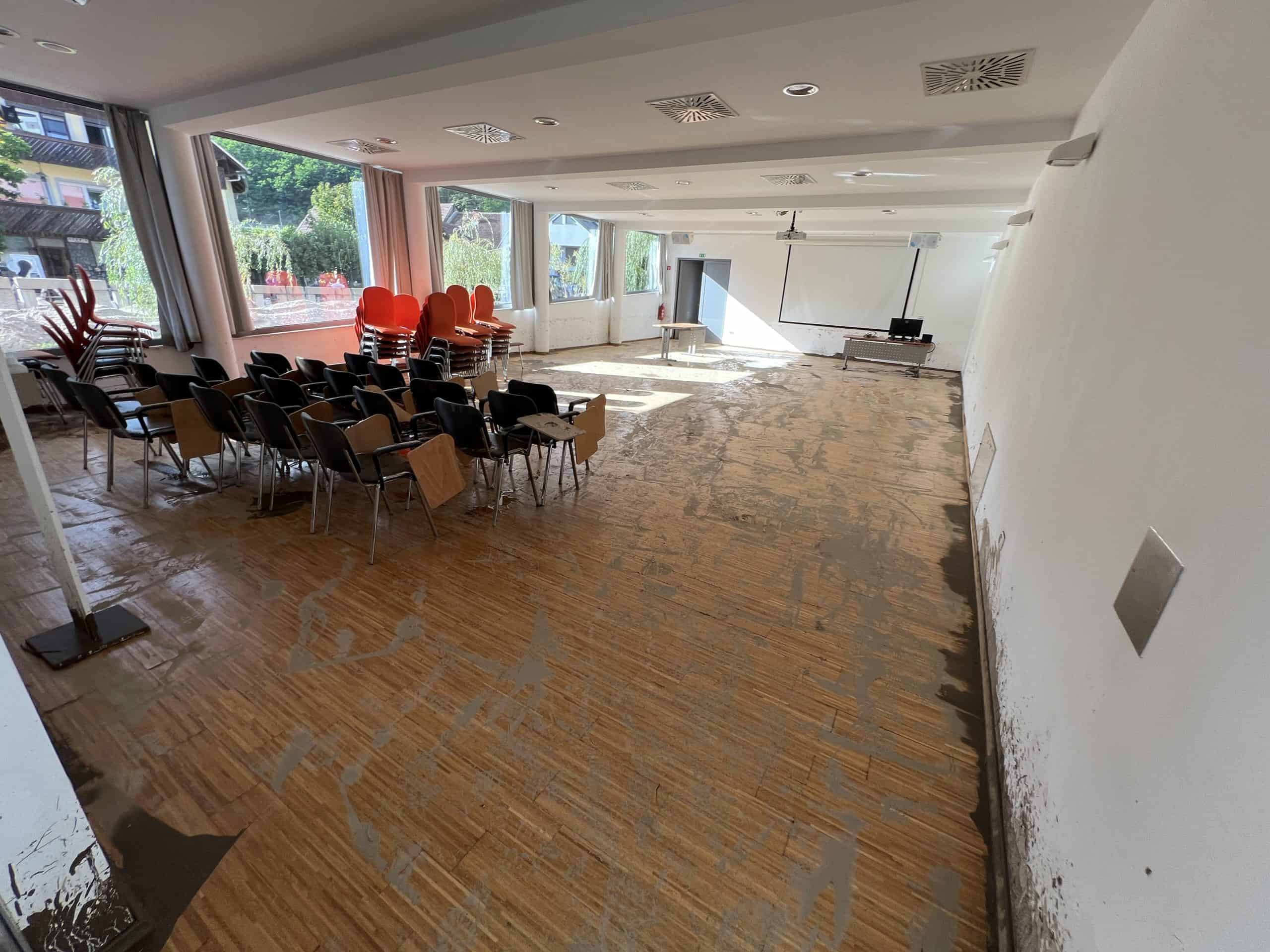 Poplavljeno je bilo celotno prtličje Kulturnega centra, mala dvorana, toalete, bar,... k sreči pa voda ni dosegla velike dvorane, saj je na začetku nekoliko dvignjena. Trenutno je voda še v kletnih in skladiščnih prostorih - tam jo trenutno izčrpavajo.