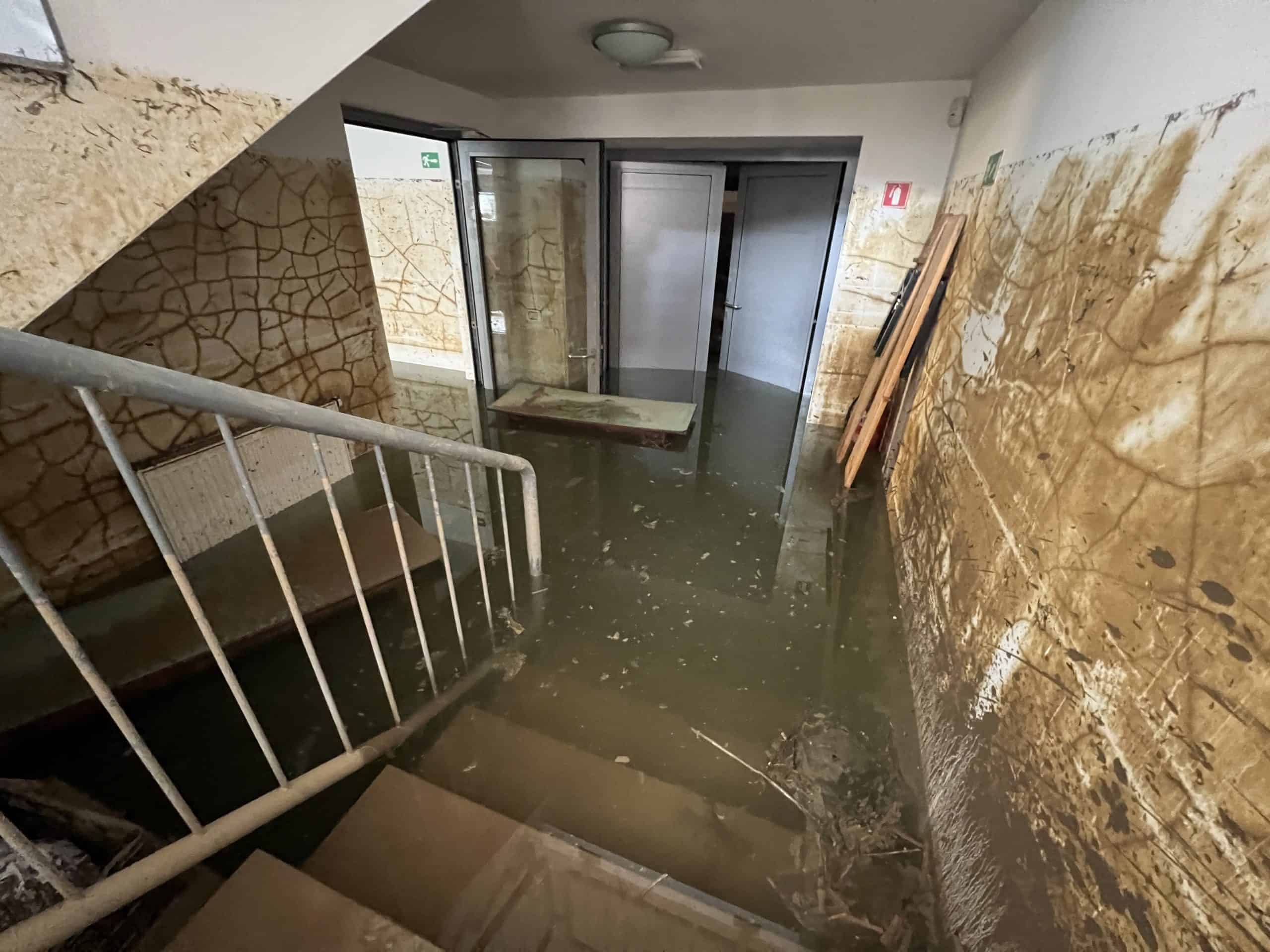 Voda je poplavila tudi Kulturni center Ravne. Škoda, ki je nastala, je ogromna, točne ocene še ni, saj vodo iz kletnih prostorov še izčrpavajo.