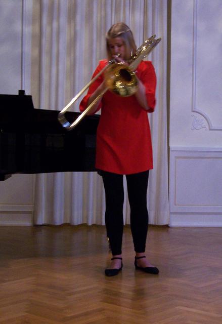 tokrat s pozavno. Leta 2014, po samo treh letih igranja je začela obiskovati
