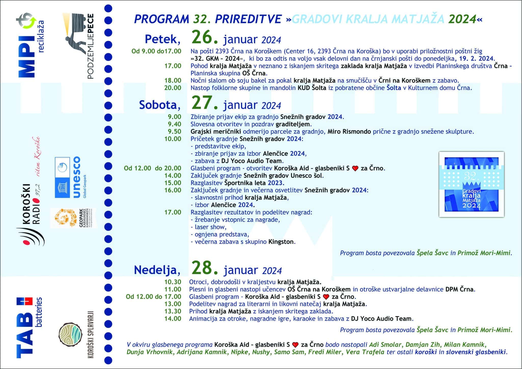 V okviru dogajanja se bo odvijal tudi pester spremljevalni program. Med drugim bomo razglasili tudi Športnika leta 2023, potekal bo izbor Alenčice, ognjena predstava, laser show, svečani prihod kralja Matjaža, podelitev nagrad najboljšim ekipam, glasbeni nastopi …). Zvečer pa bodo za najboljšo zabavo poskrbeli odlični Kingstoni.