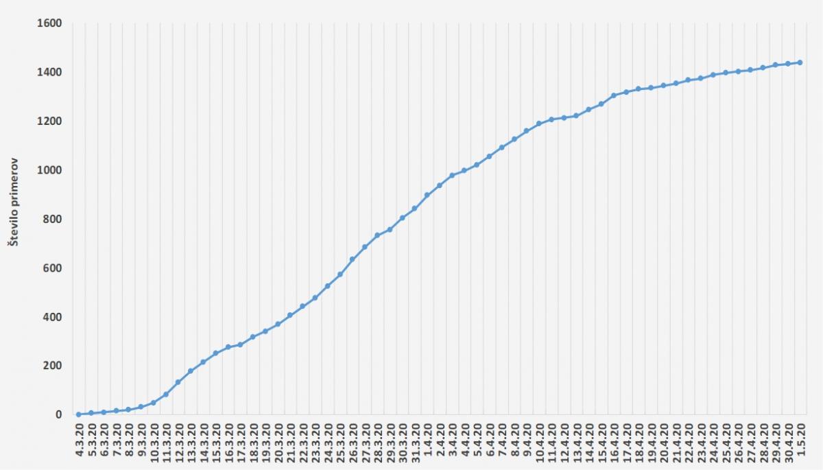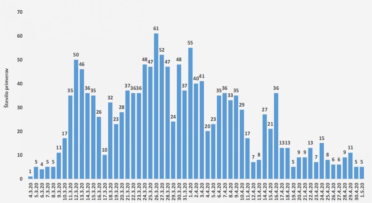 Do 1. 5. 2020 do 24. ure je bilo opravljenih 56.353 testiranj, od tega je bilo 1.449 pozitivnih testov.
