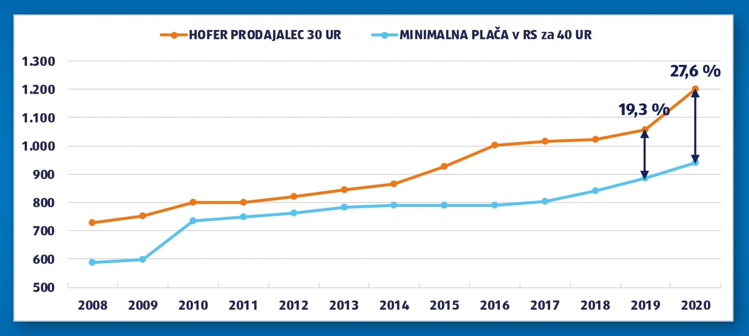 Zaposleni v prodaji pri HOFERju so že tradicionalno prejemali panožno nadpovprečno plačilo, januar 2020 pa jim v povprečju prinaša kar za 18 % višje plačilo. To je najvišji enkratni dvig plačila v zgodovini podjetja.