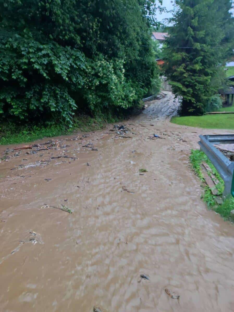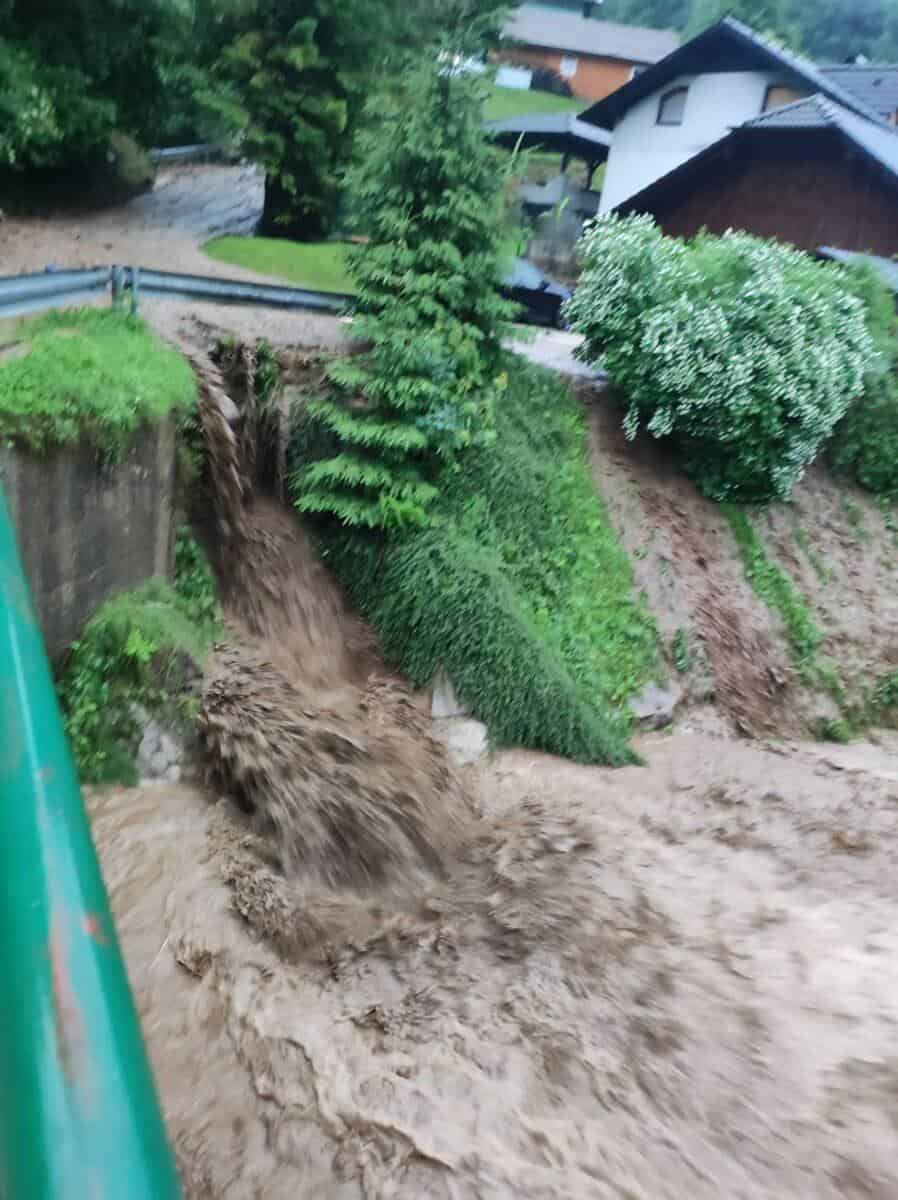 V občini Dravograd je meteorna voda zalila ulico v Otiškem Vrhu. Posredovali so gasilci PGD Šentjanž pri Dravogradu, ki so vodo prečrpali.