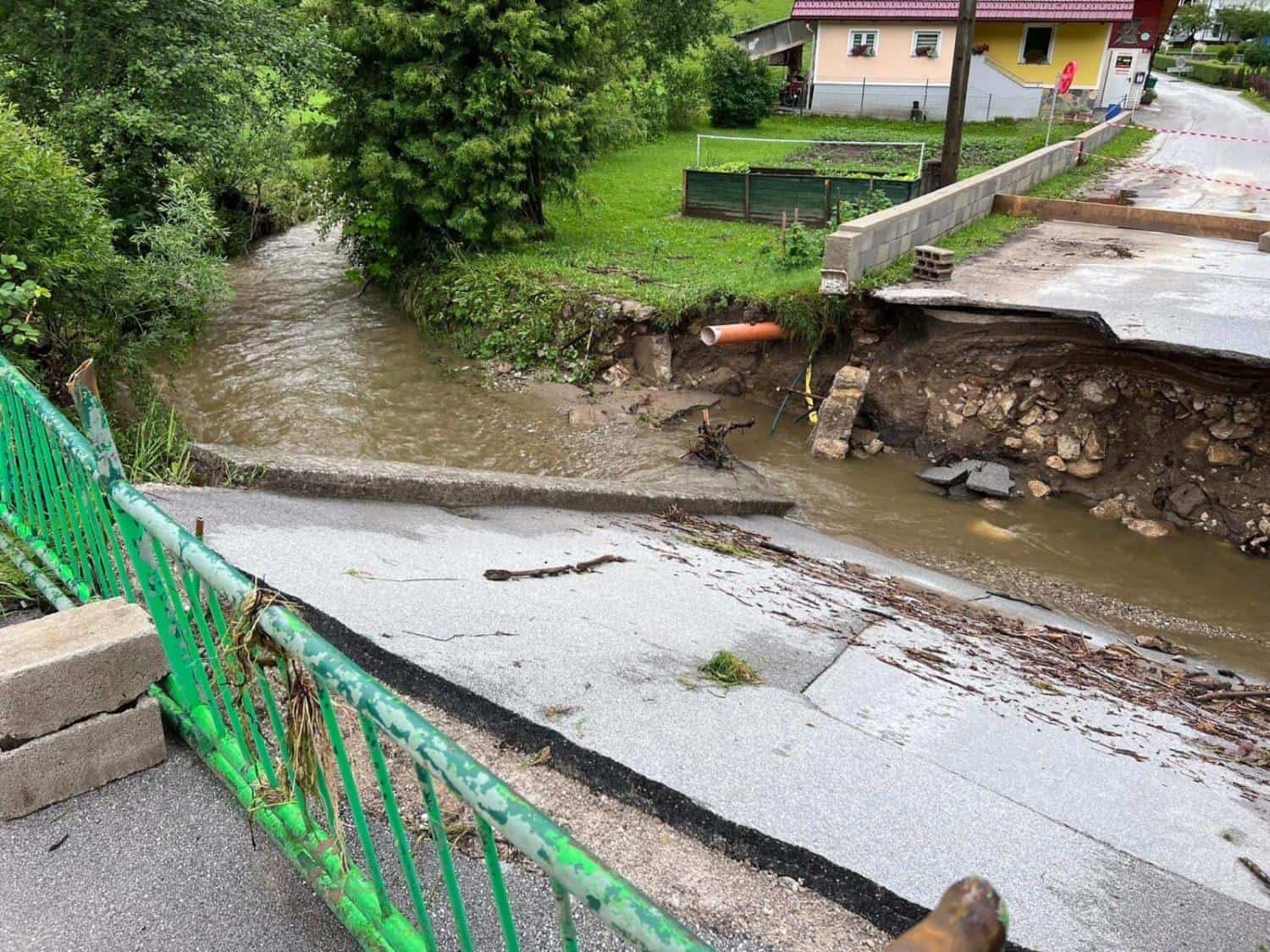 V občini Mislinja je neurje z močnim vetrom in nalivi poplavilo več stanovanjskih in poslovnih objektov, poškodovalo več lokalnih cest, narasla voda pa je odnesla nekaj mostov. Narasla reka Paka je v Gornjem Doliču uničila most lokalne ceste Gornji Dolič-Kozjak.